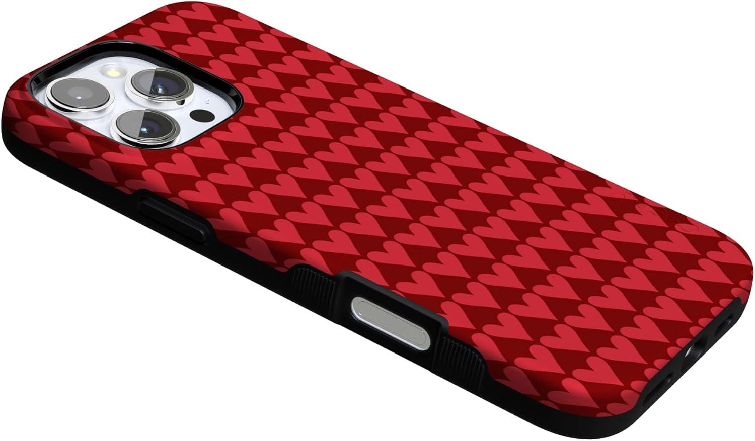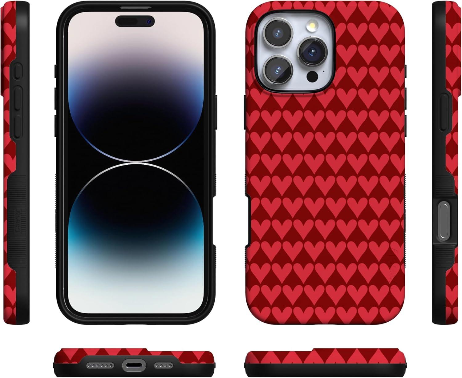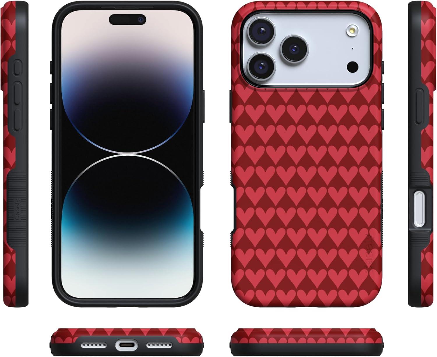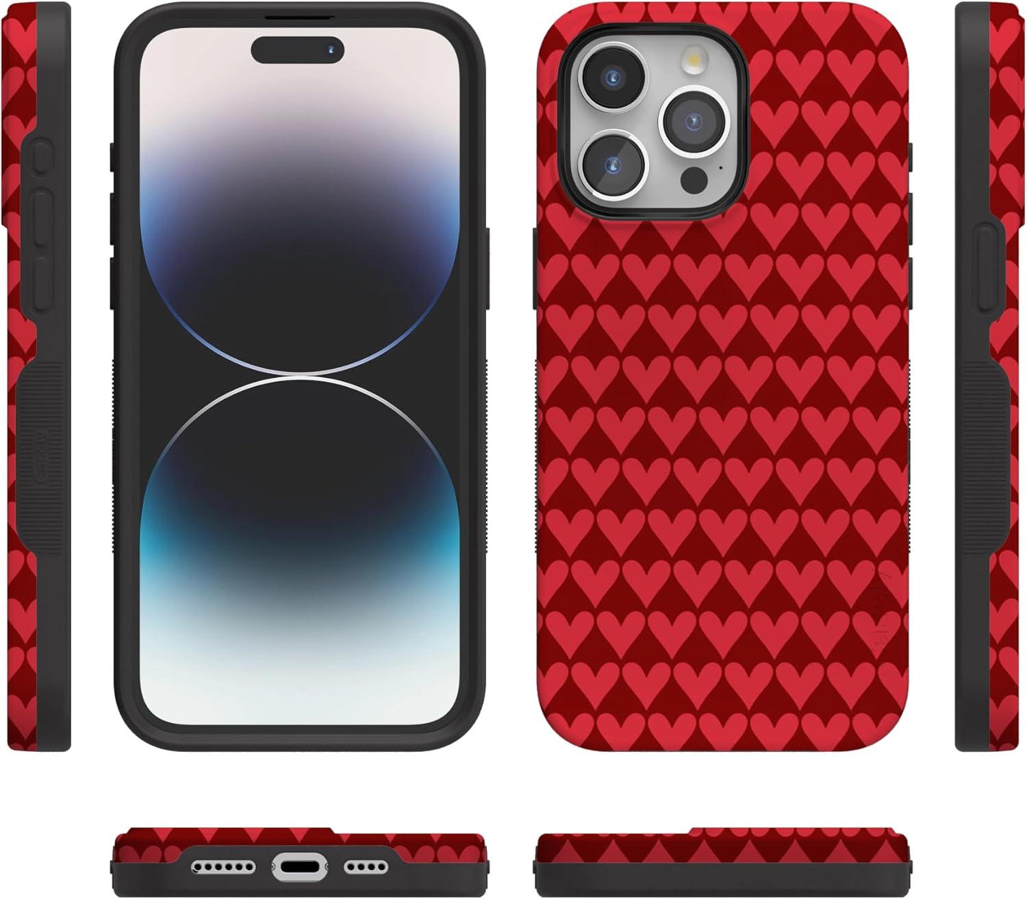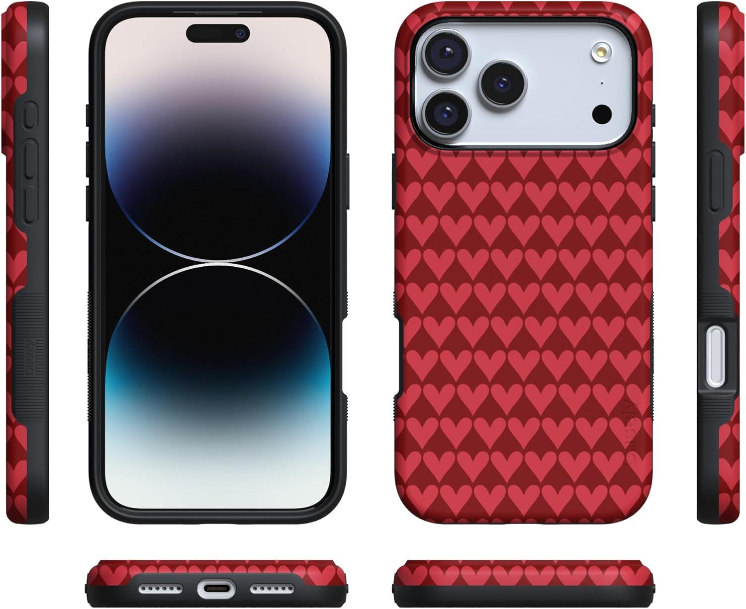 Casely iPhone 15 Pro Case | Heart Noir | Tiny Hearts | Bold Protective Design | MagSafe Compatible Design(Crazy in Love | Red Hearts)