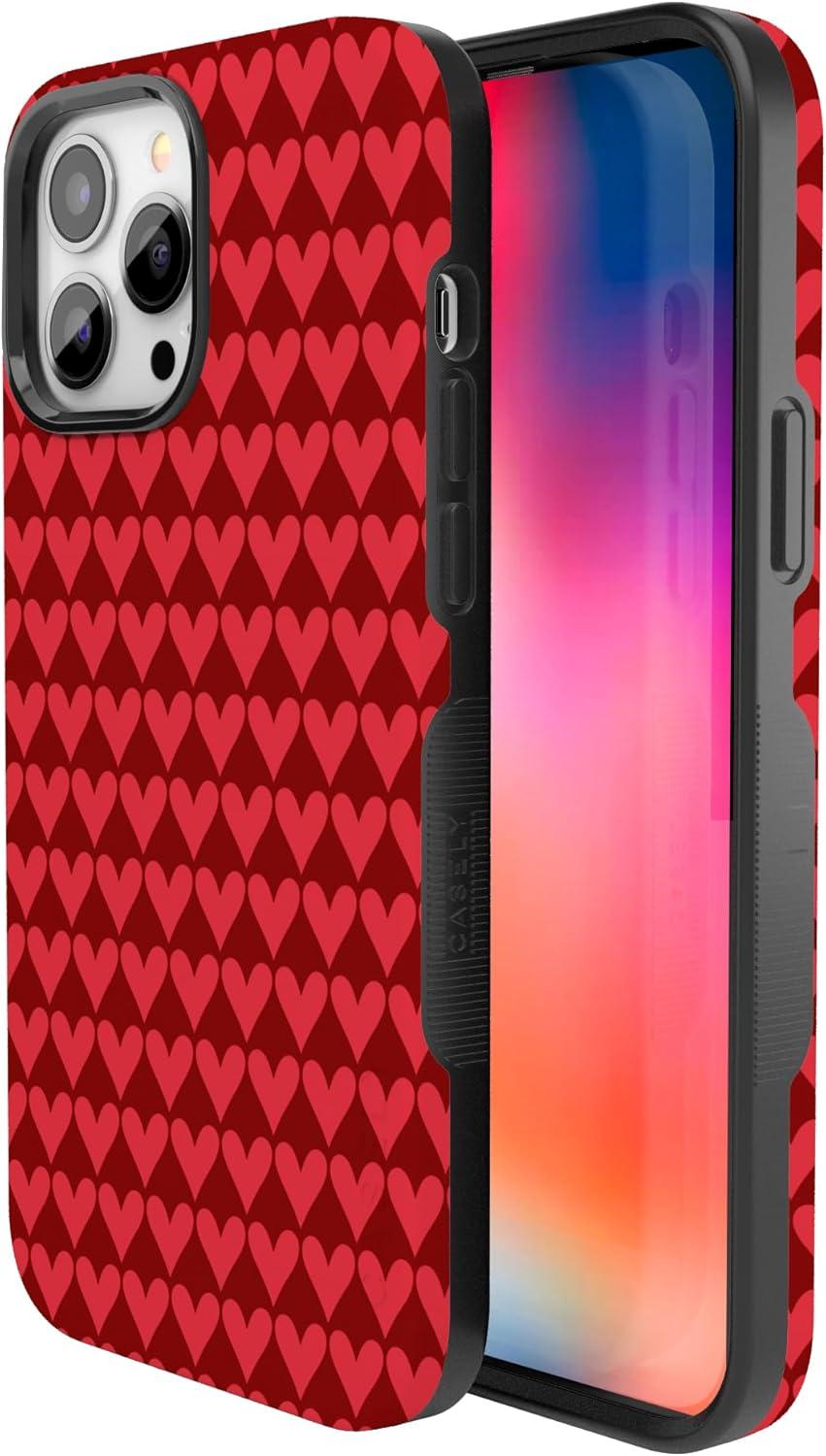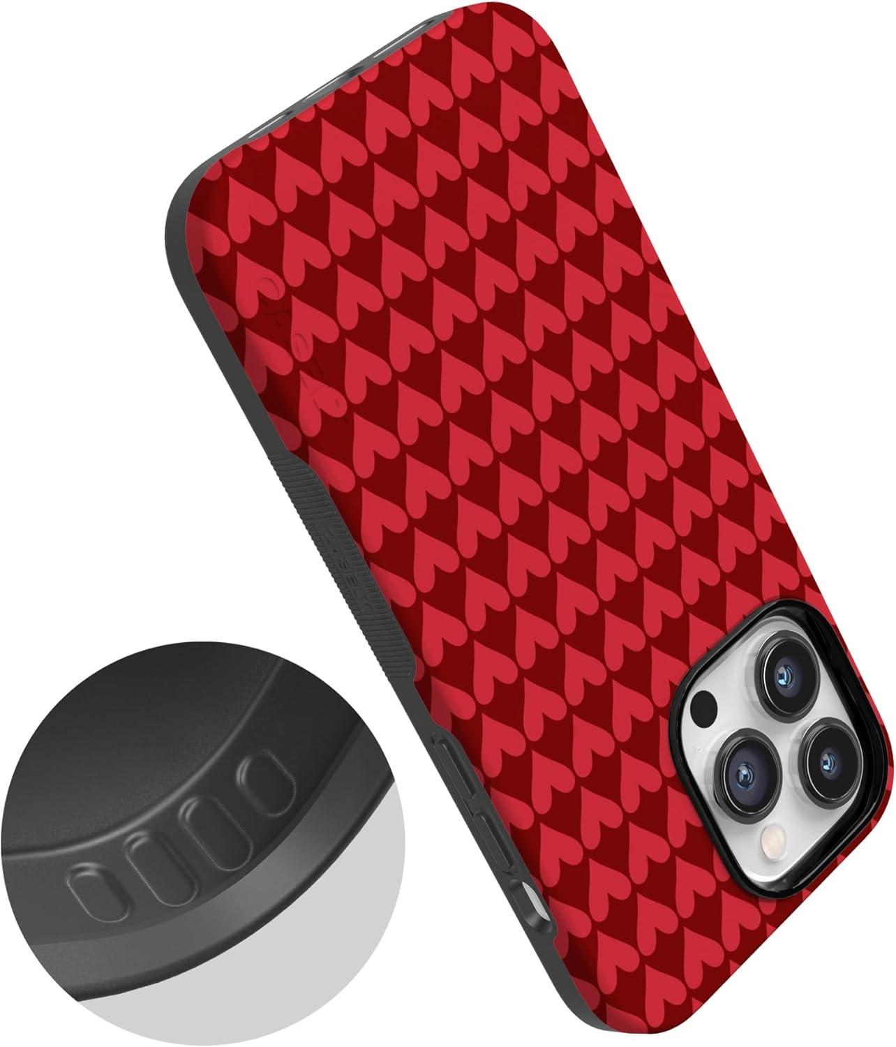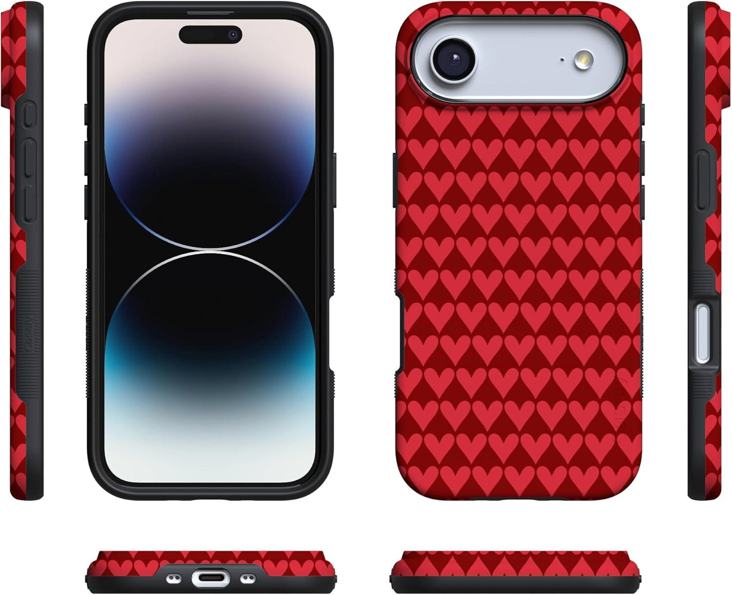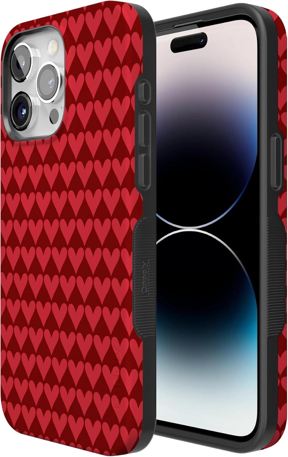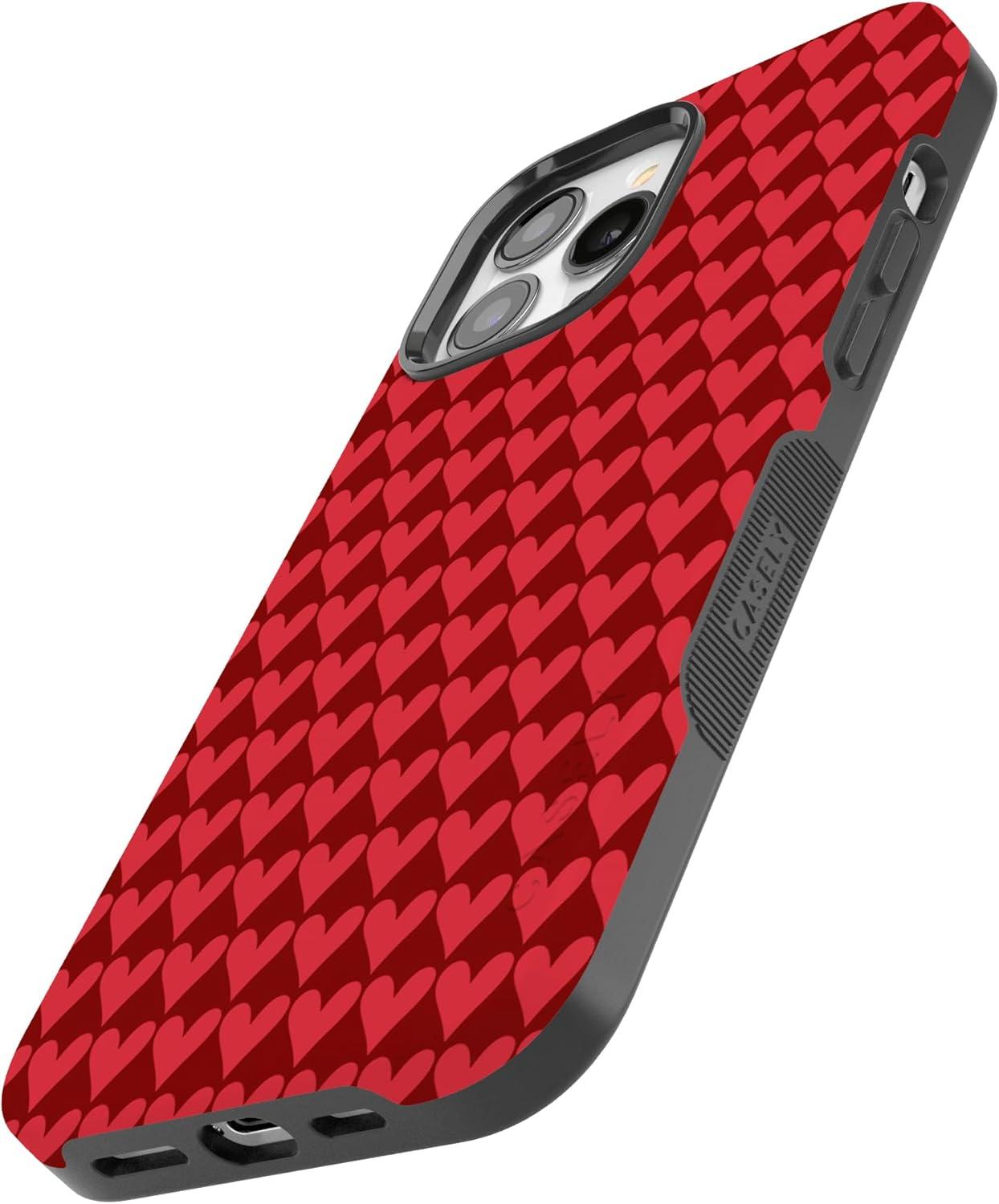 Casely iPhone 15 Pro Case | Heart Noir | Tiny Hearts | Bold Protective Design | MagSafe Compatible Design(Crazy in Love | Red Hearts)