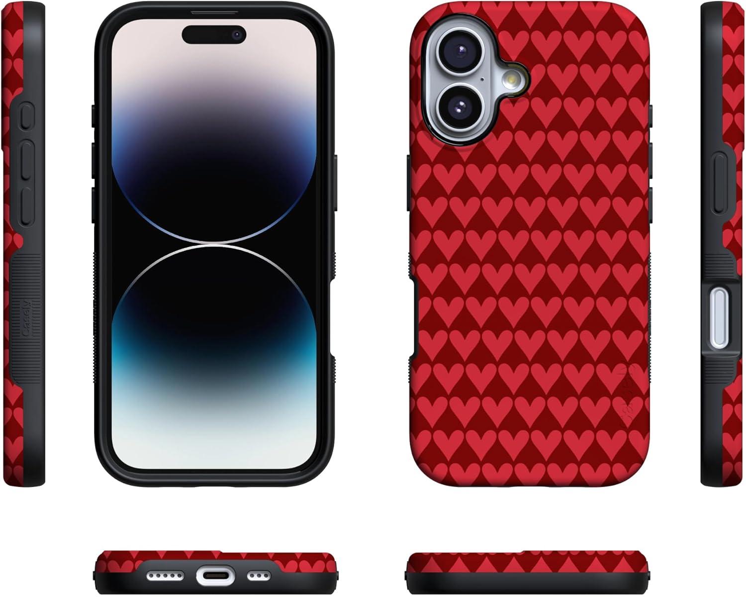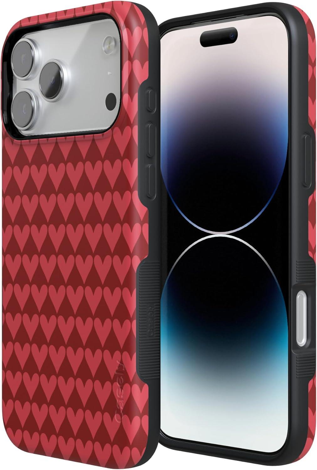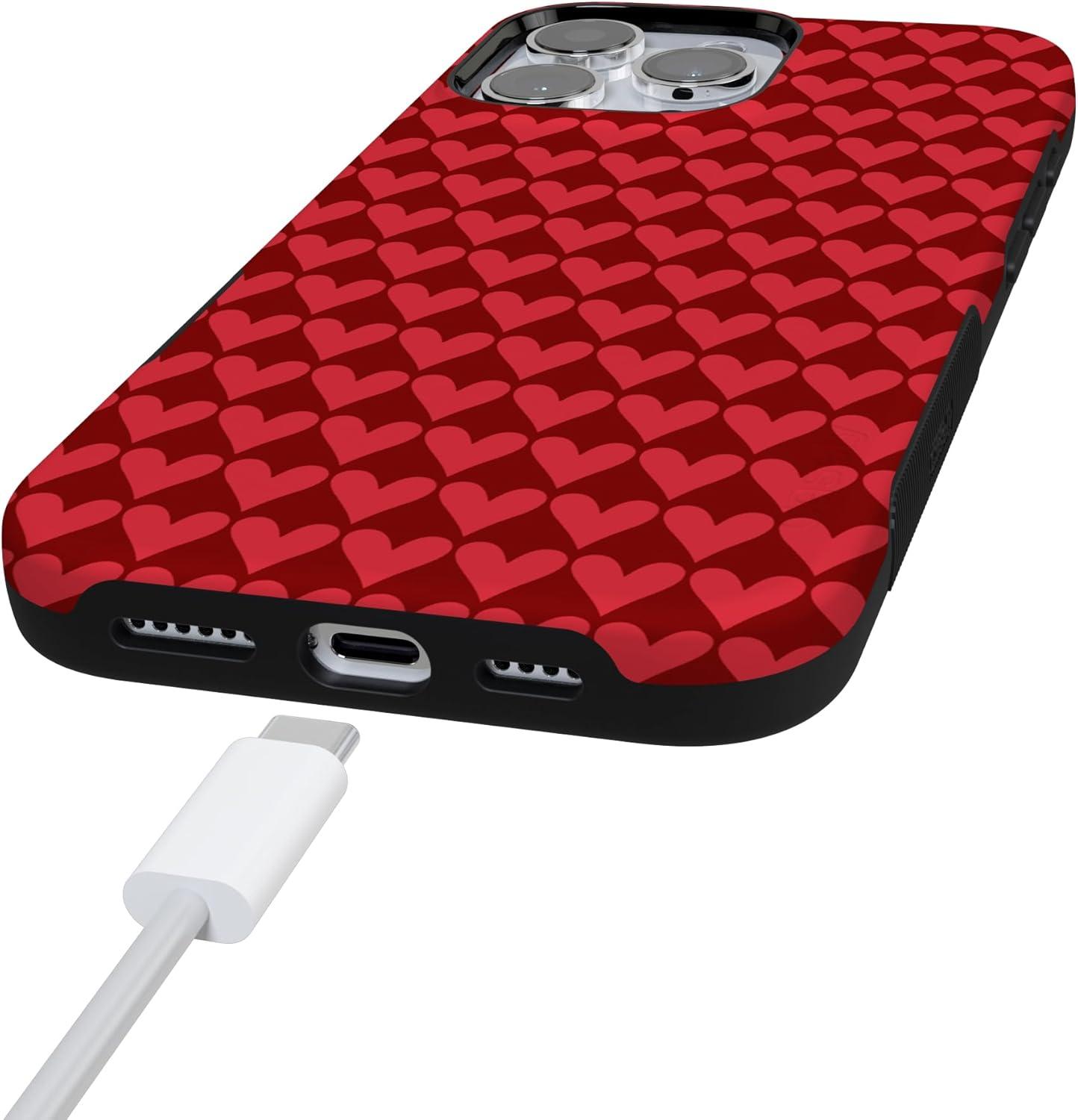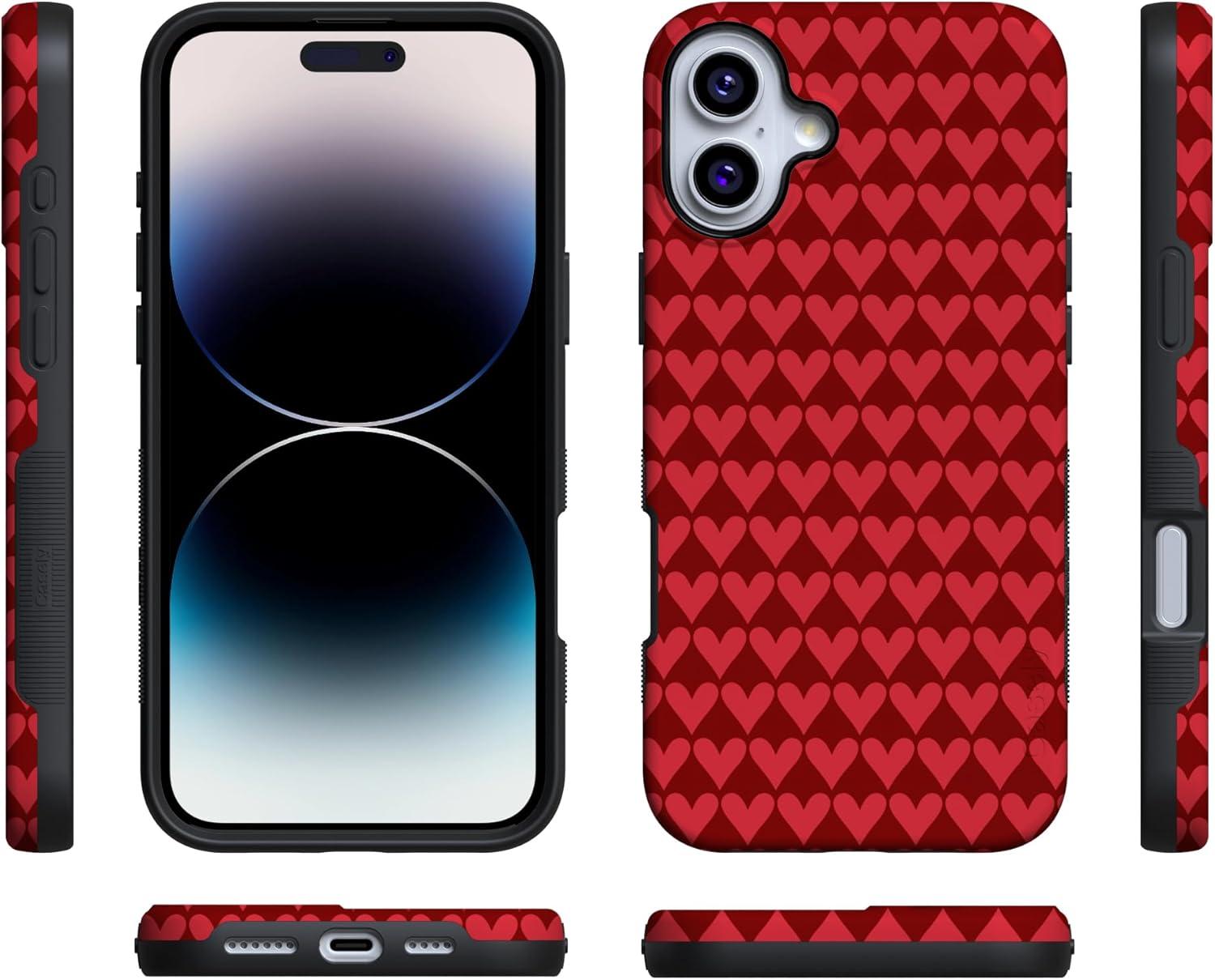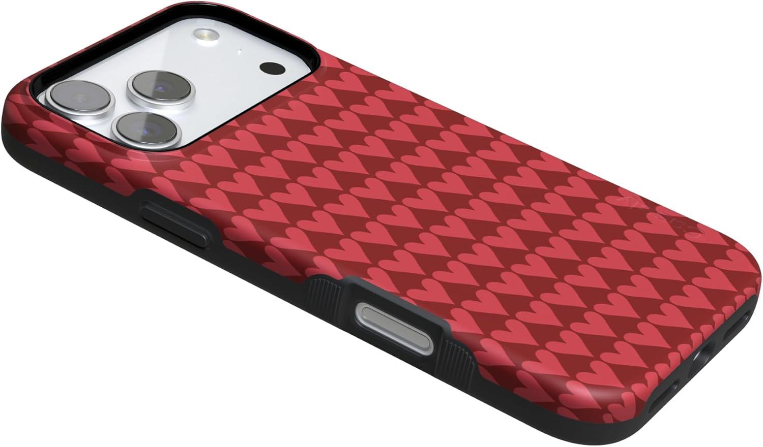 Casely iPhone 15 Pro Case | Heart Noir | Tiny Hearts | Bold Protective Design | MagSafe Compatible Design(Crazy in Love | Red Hearts)