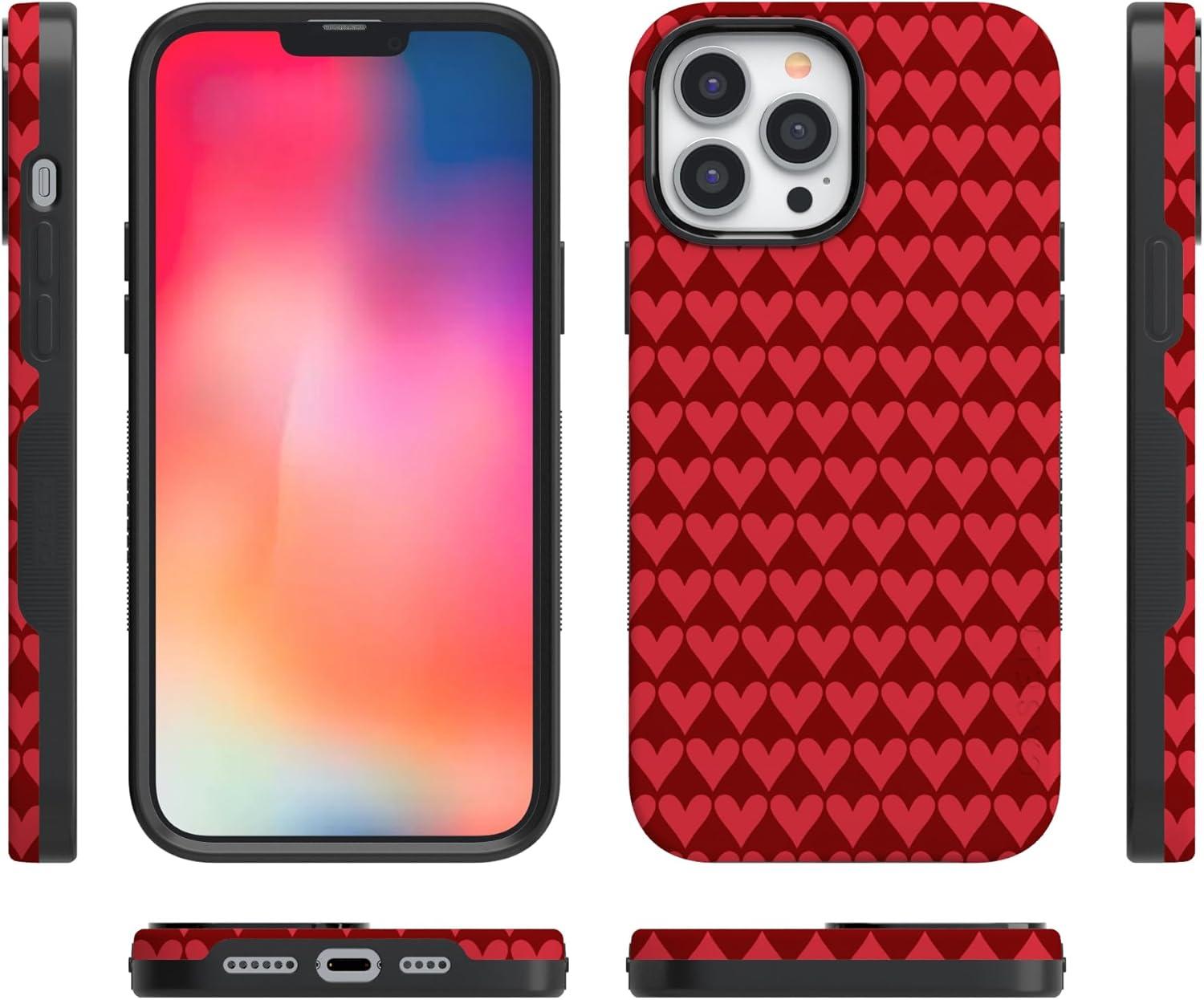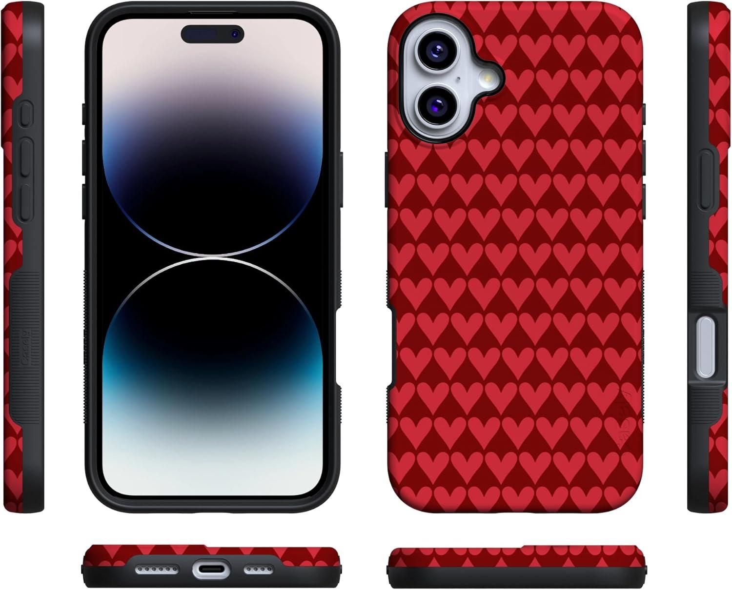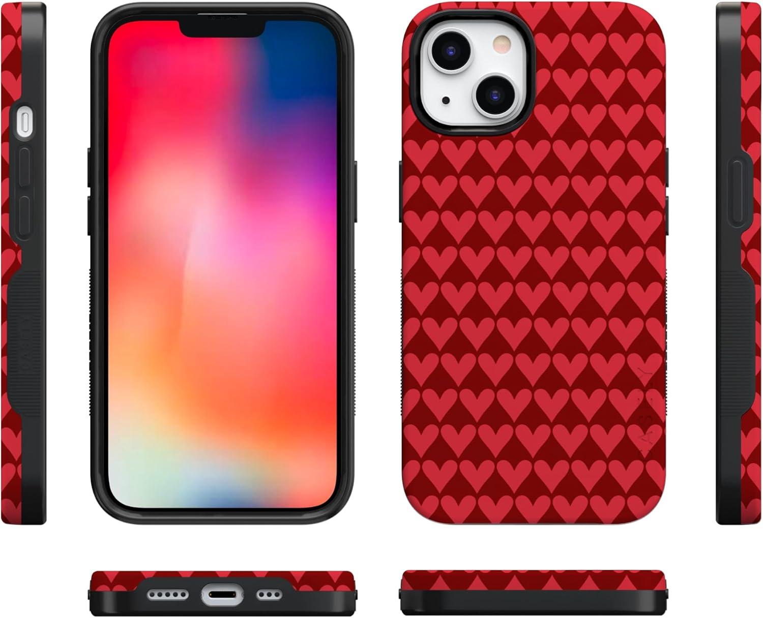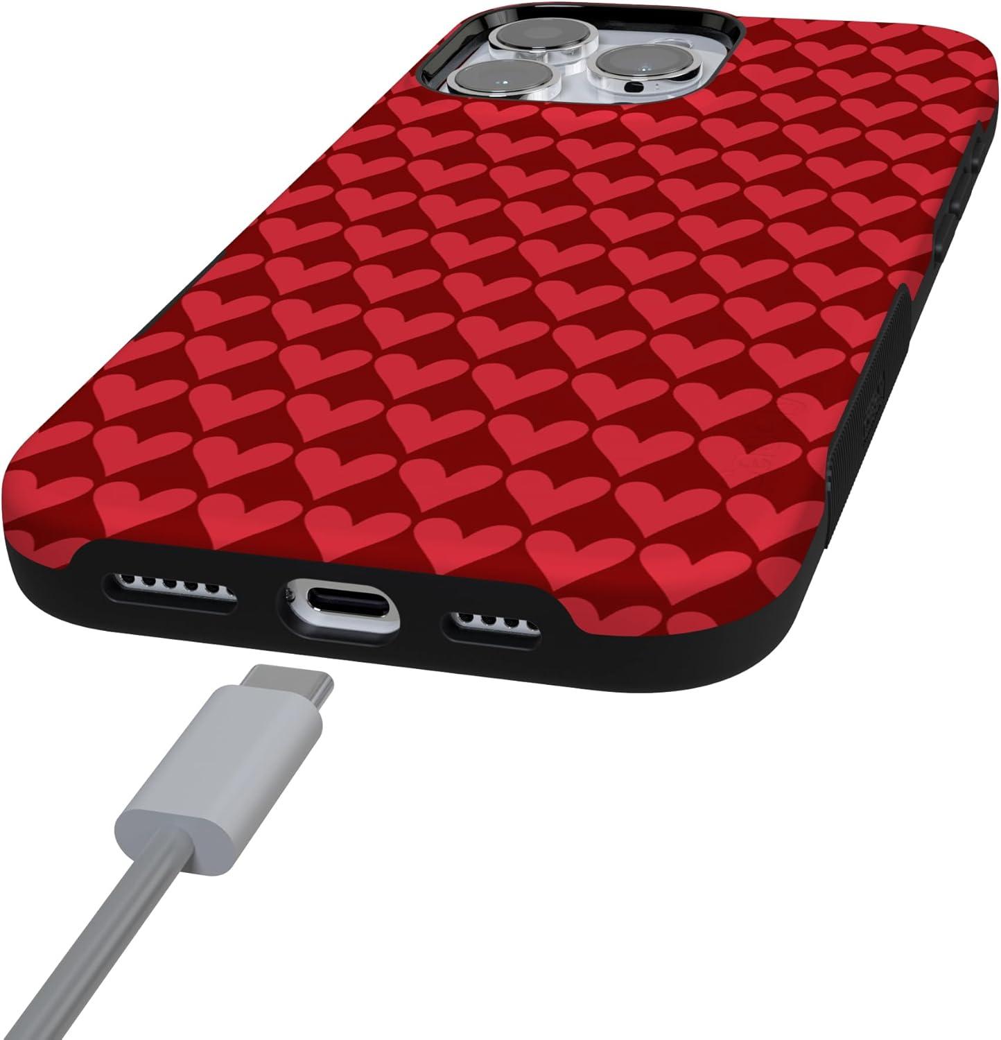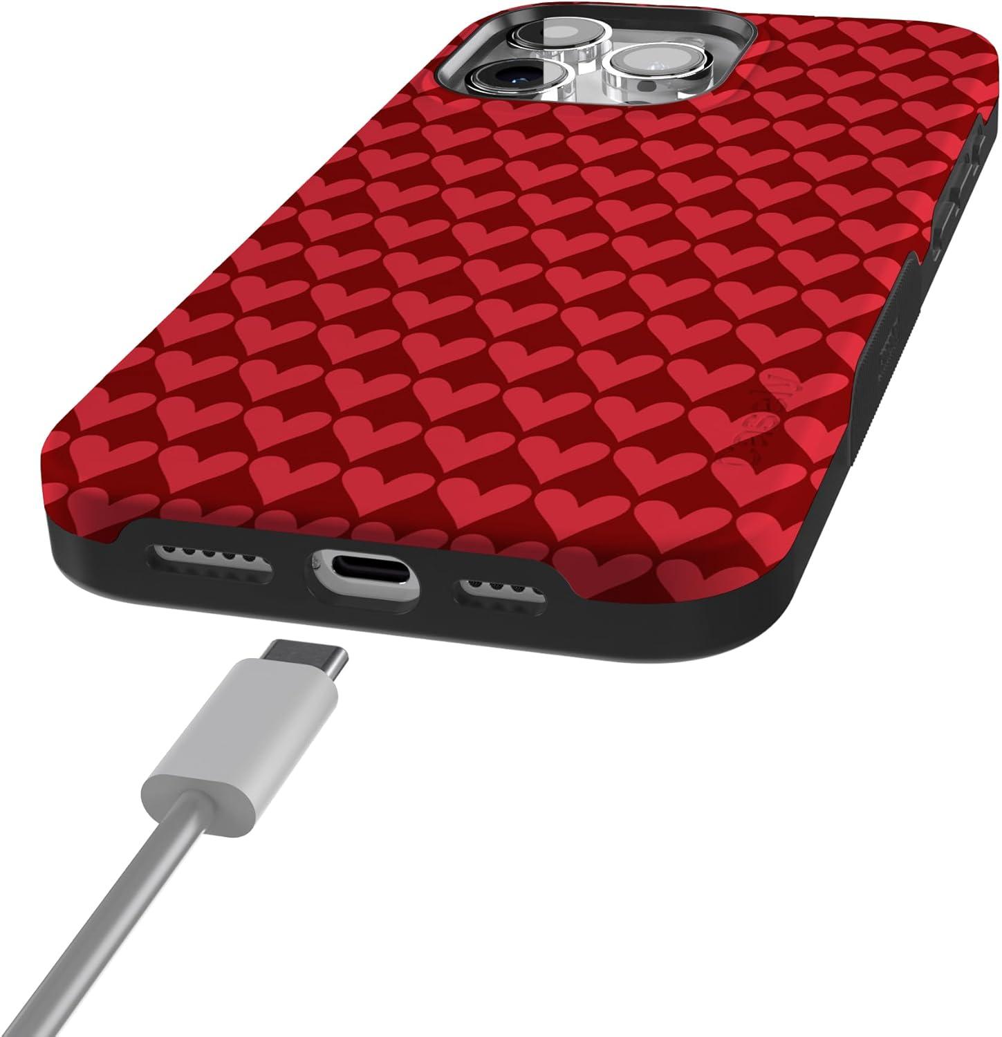 Casely iPhone 15 Pro Case | Heart Noir | Tiny Hearts | Bold Protective Design | MagSafe Compatible Design(Crazy in Love | Red Hearts)