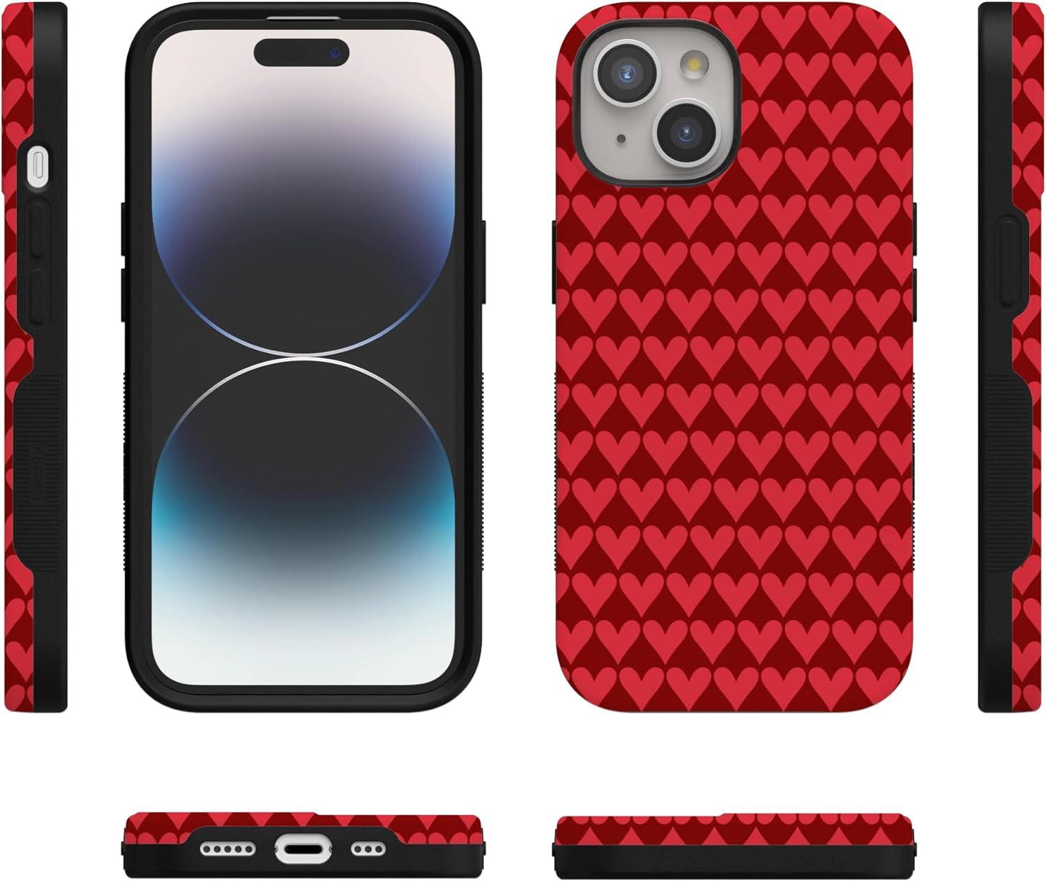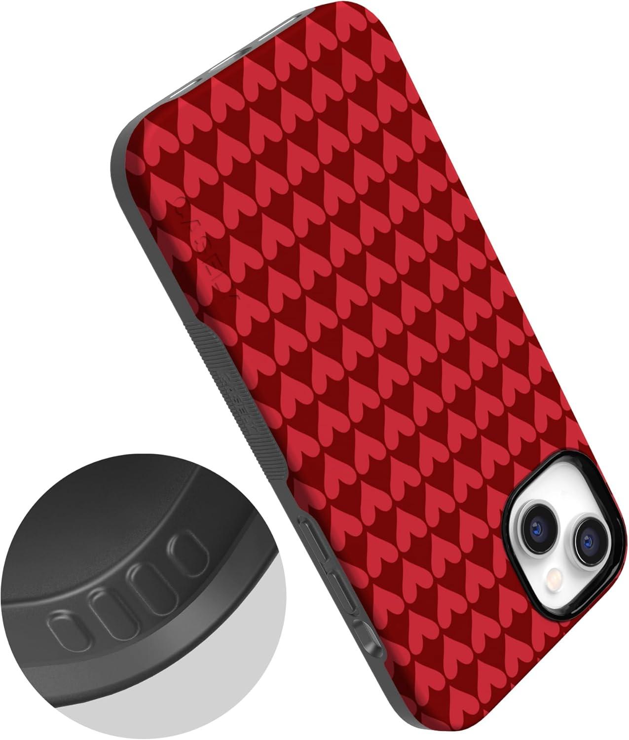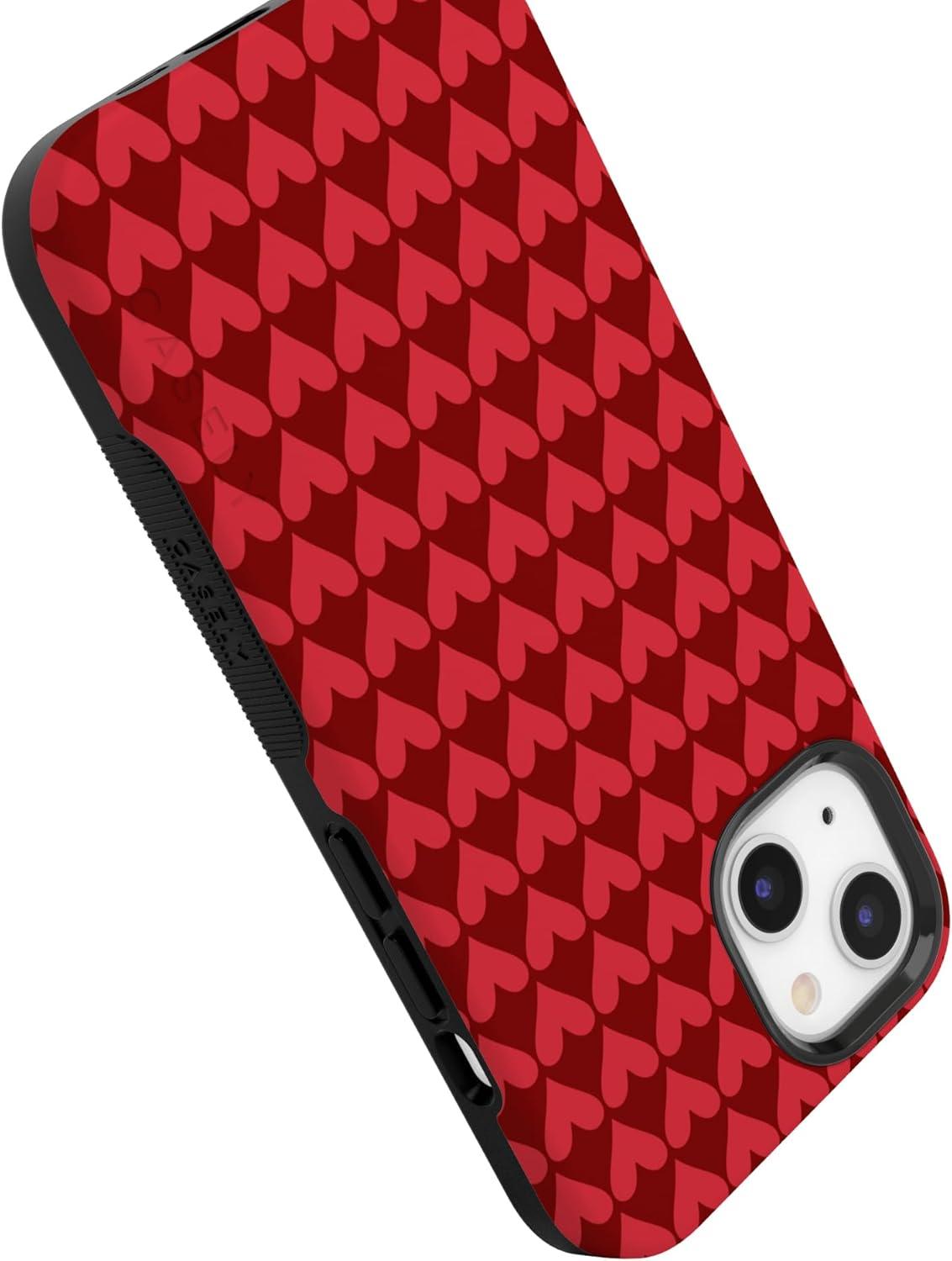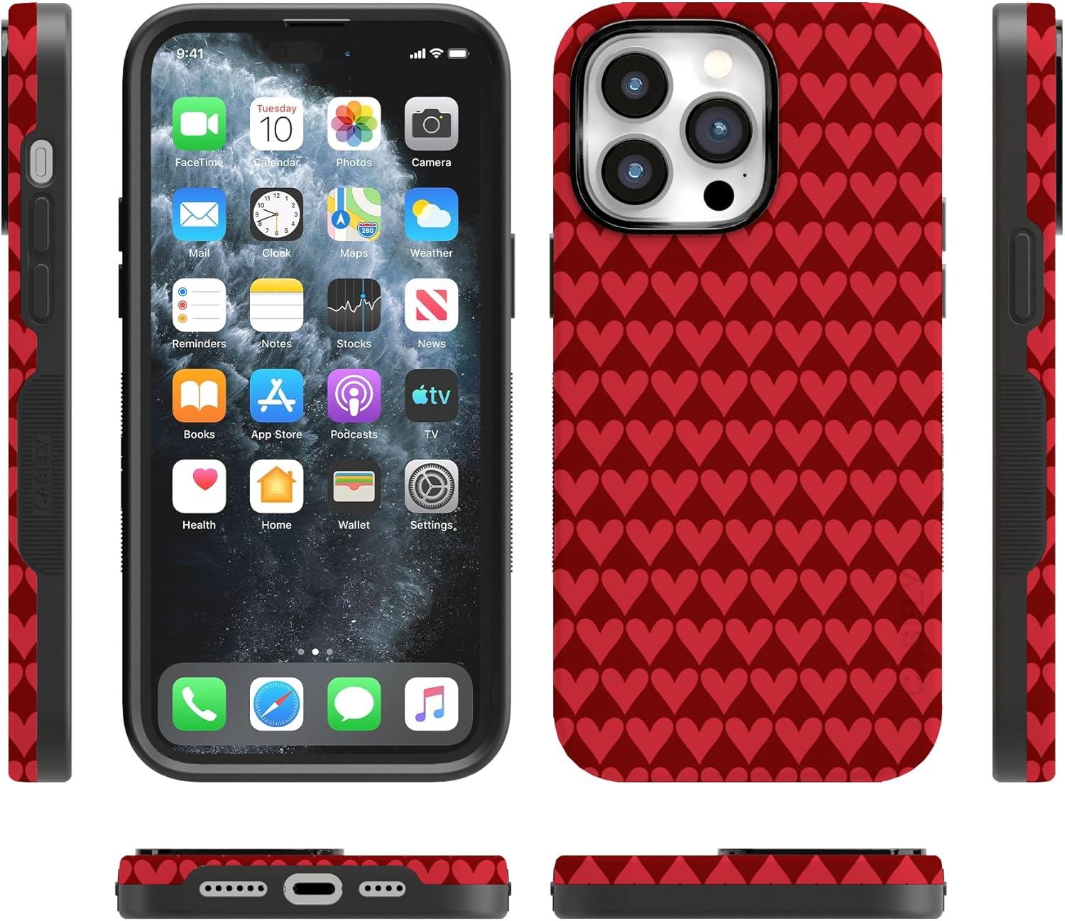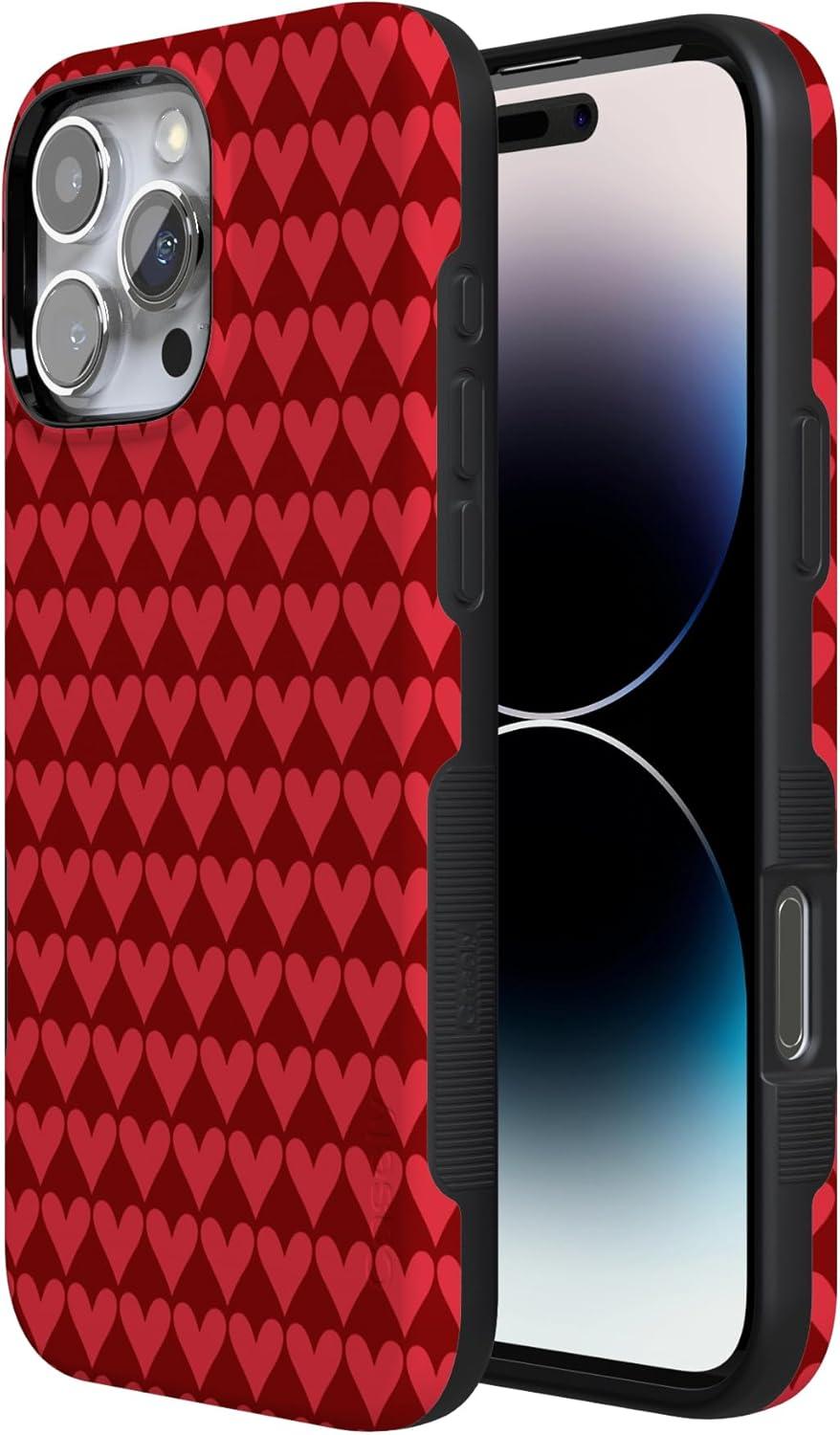 Casely iPhone 15 Pro Case | Heart Noir | Tiny Hearts | Bold Protective Design | MagSafe Compatible Design(Crazy in Love | Red Hearts)