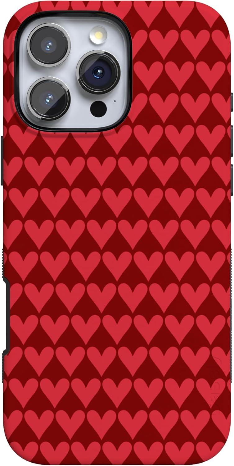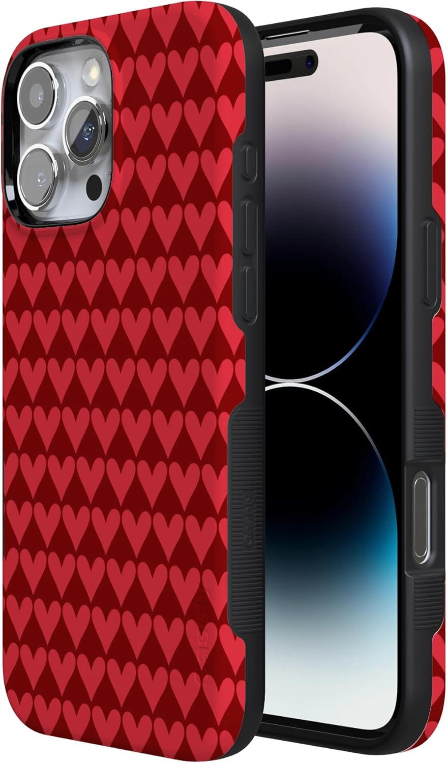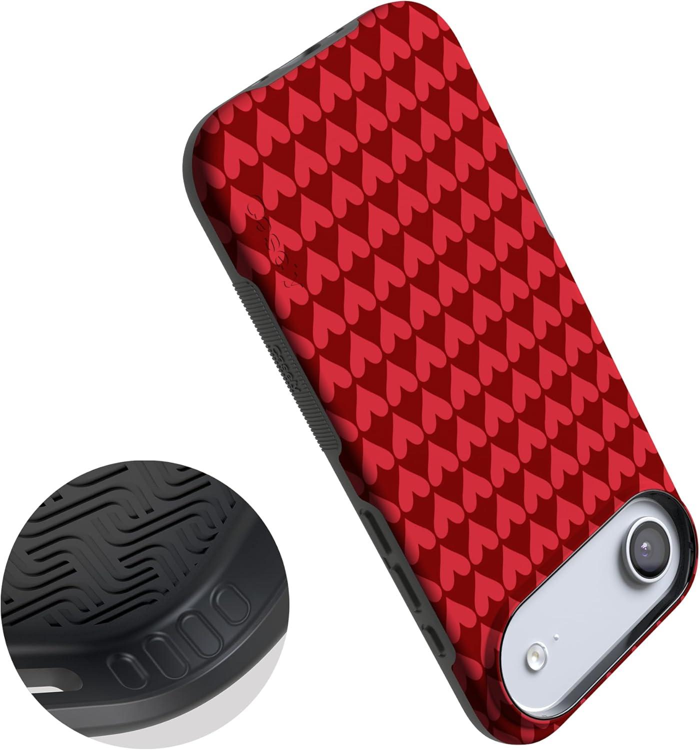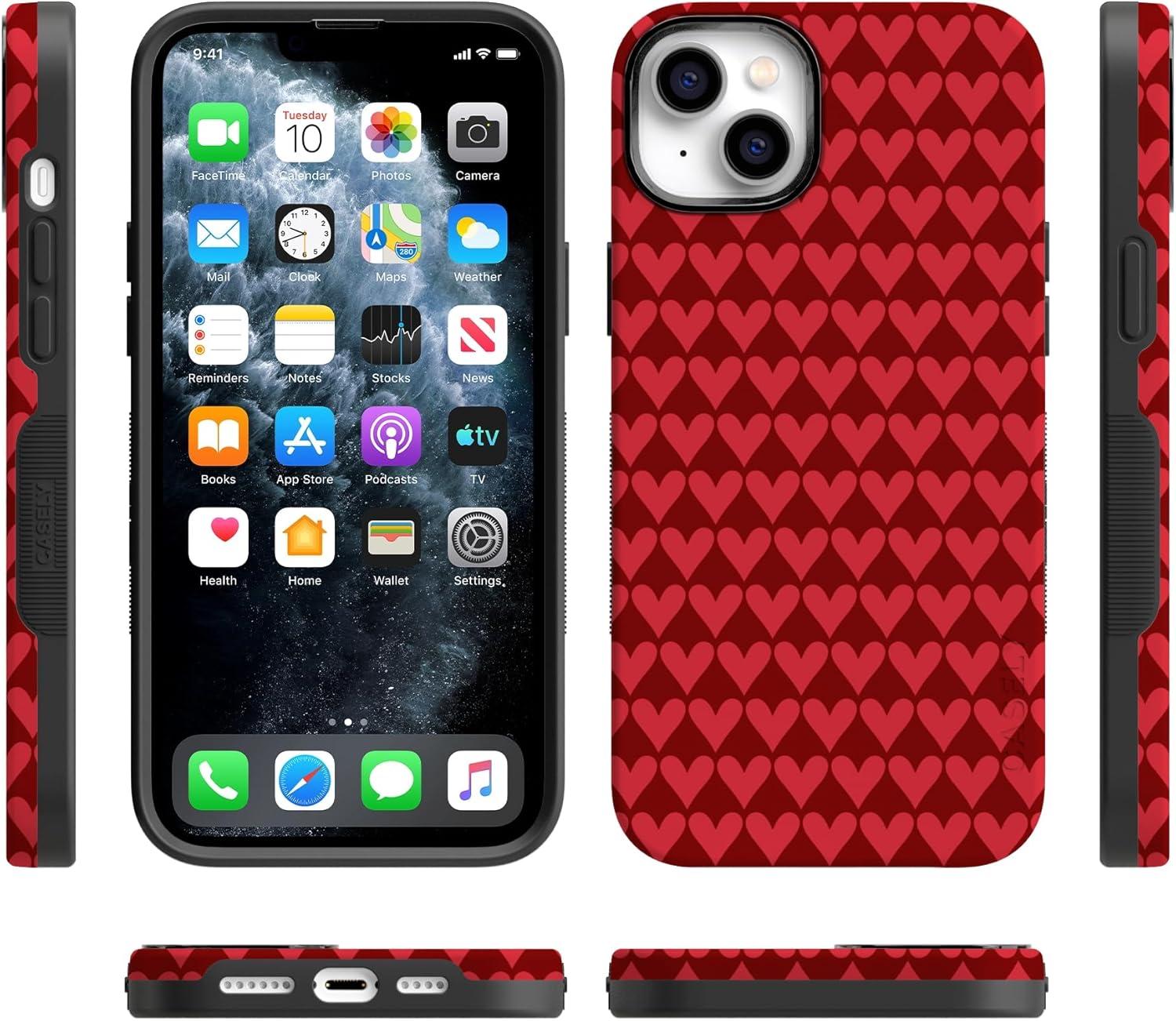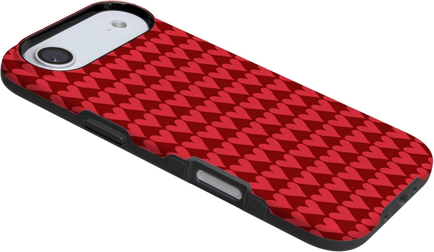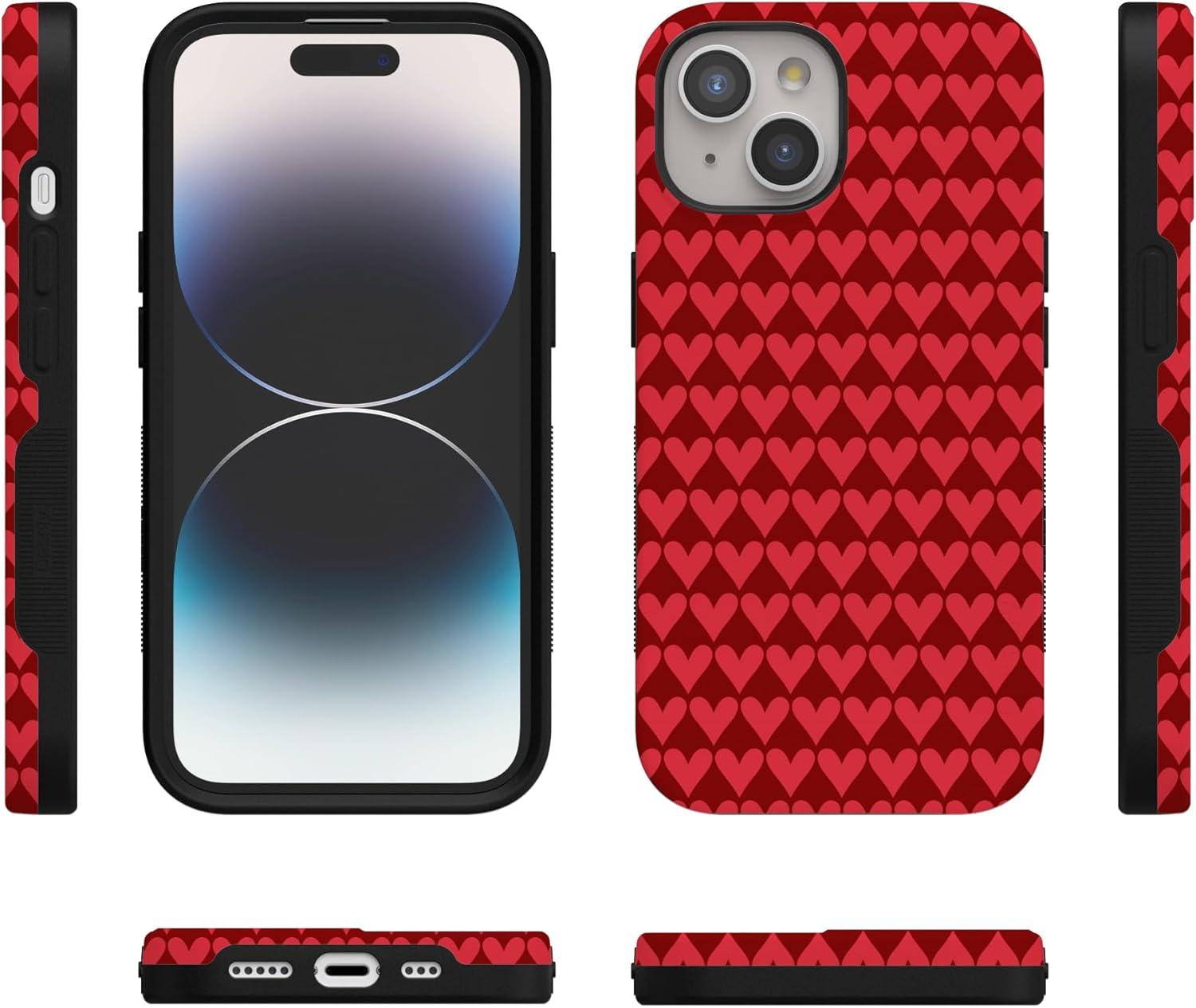 Casely iPhone 15 Pro Case | Heart Noir | Tiny Hearts | Bold Protective Design | MagSafe Compatible Design(Crazy in Love | Red Hearts)