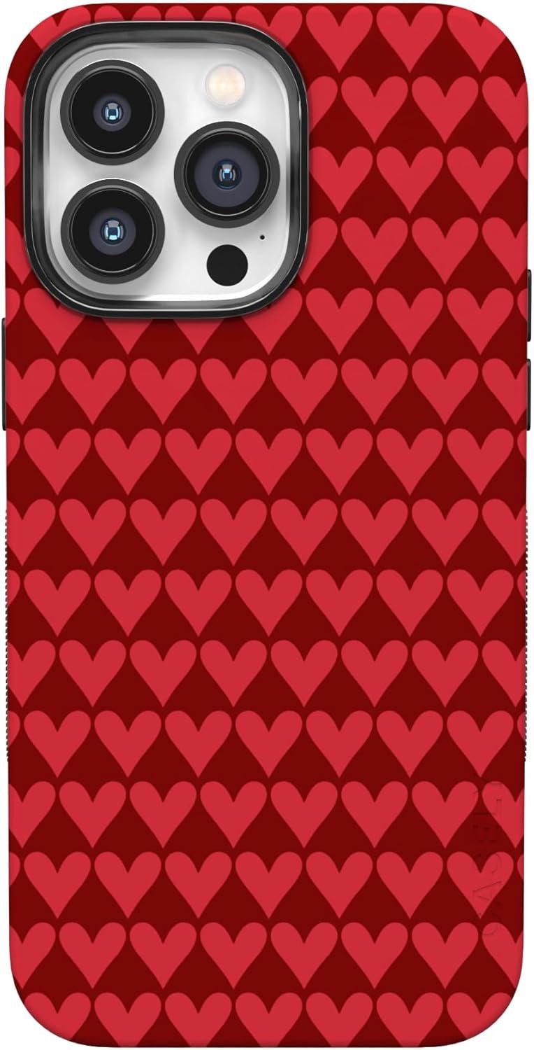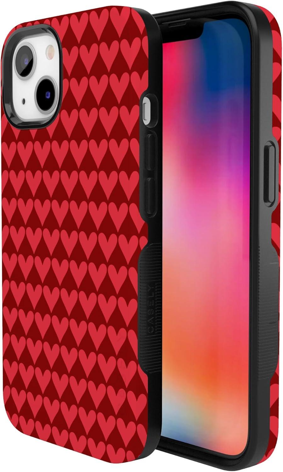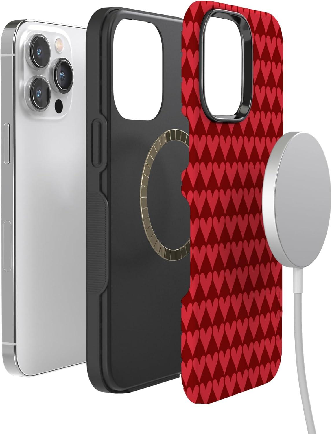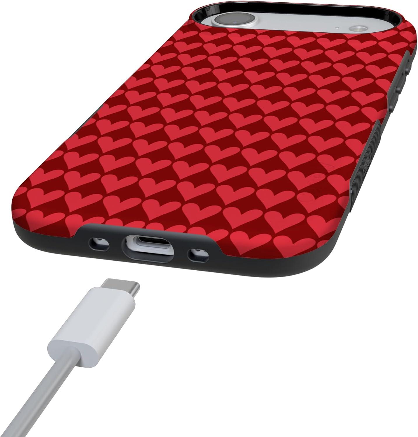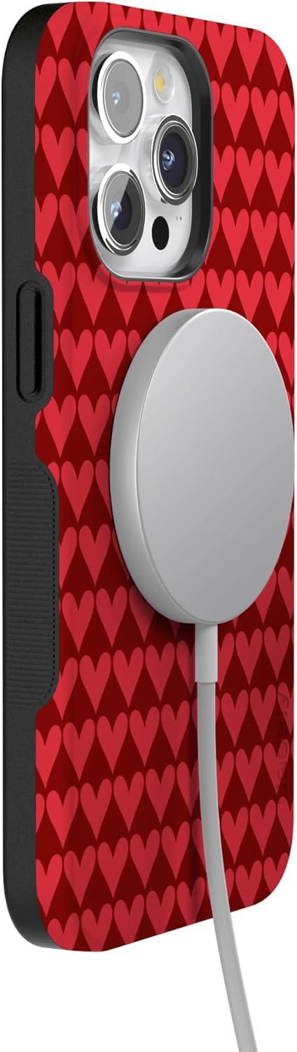 Casely iPhone 15 Pro Case | Heart Noir | Tiny Hearts | Bold Protective Design | MagSafe Compatible Design(Crazy in Love | Red Hearts)
