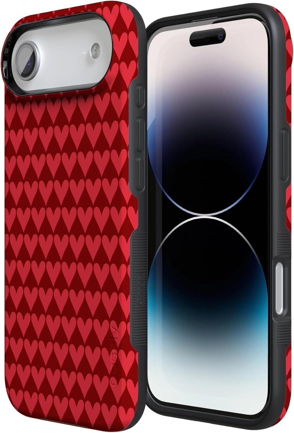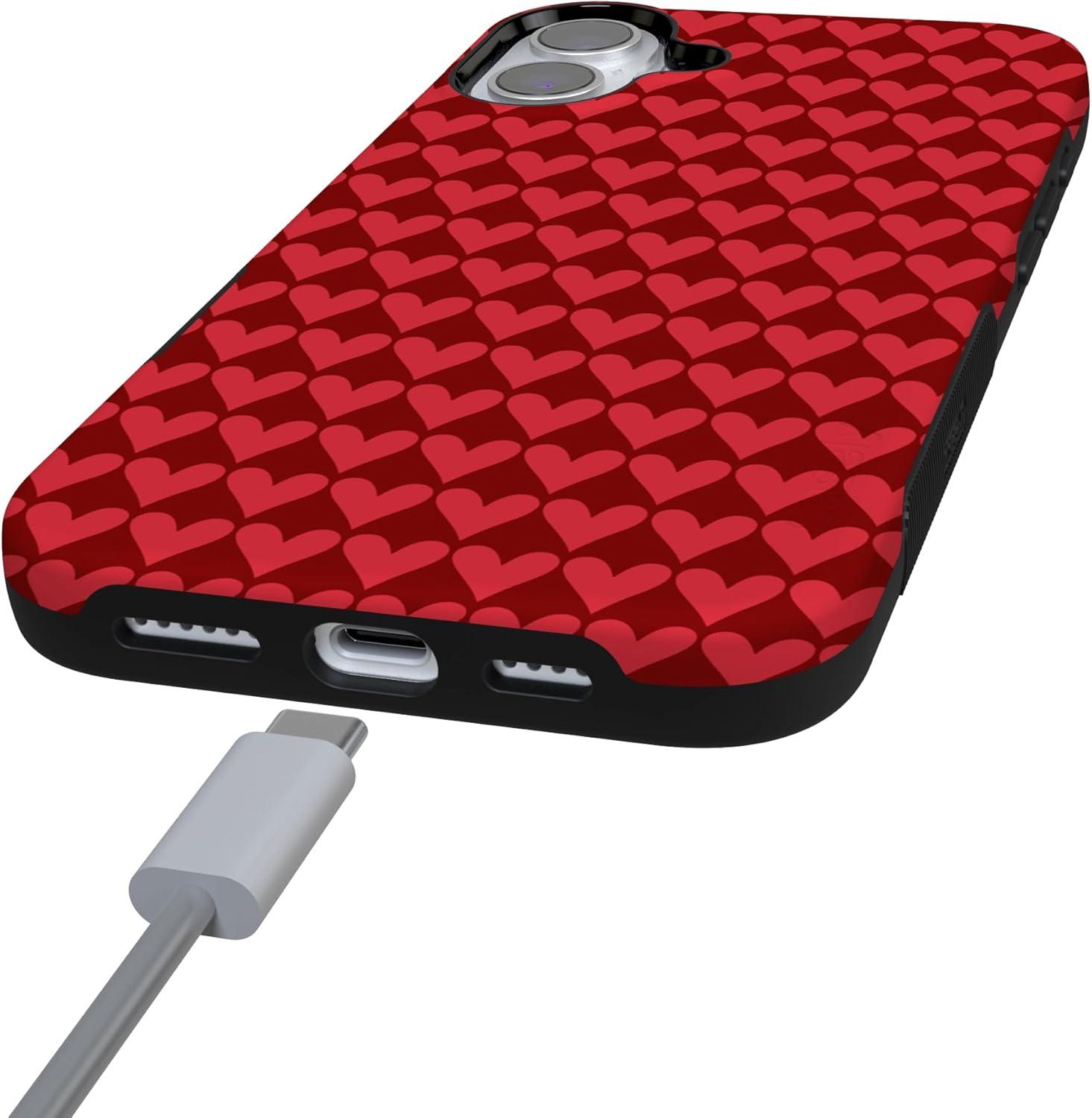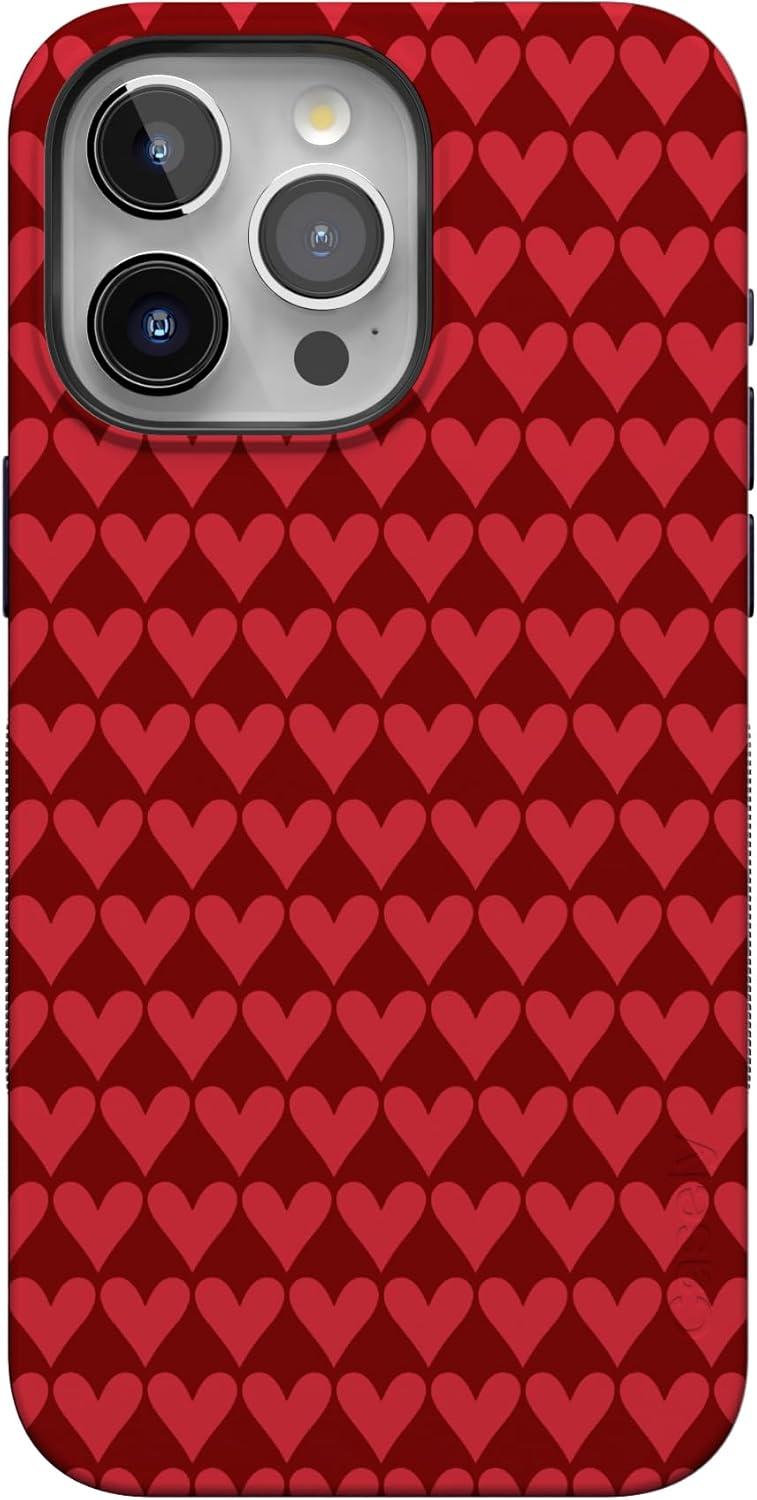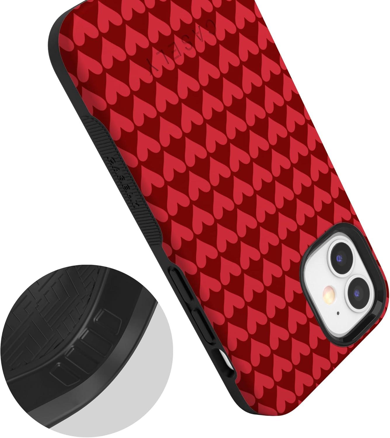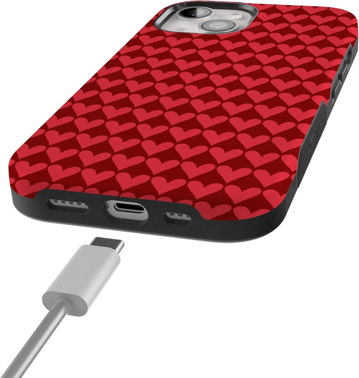 Casely iPhone 15 Pro Case | Heart Noir | Tiny Hearts | Bold Protective Design | MagSafe Compatible Design(Crazy in Love | Red Hearts)