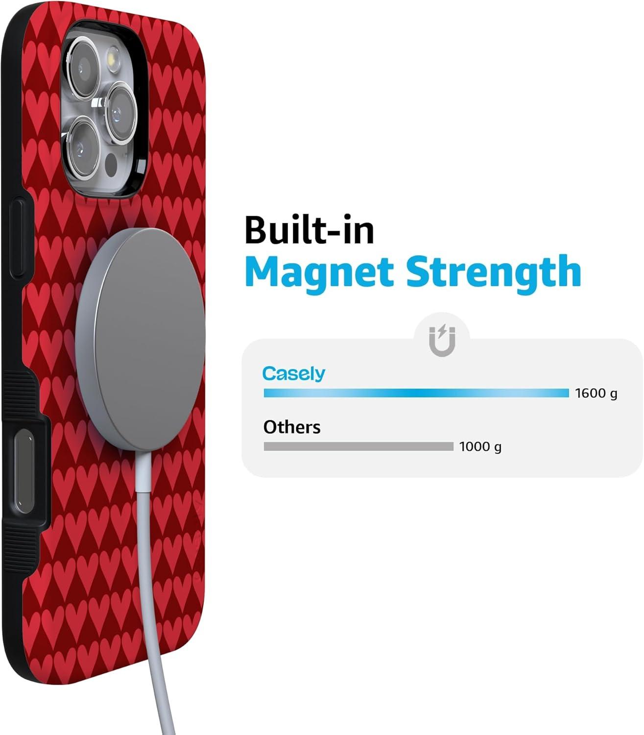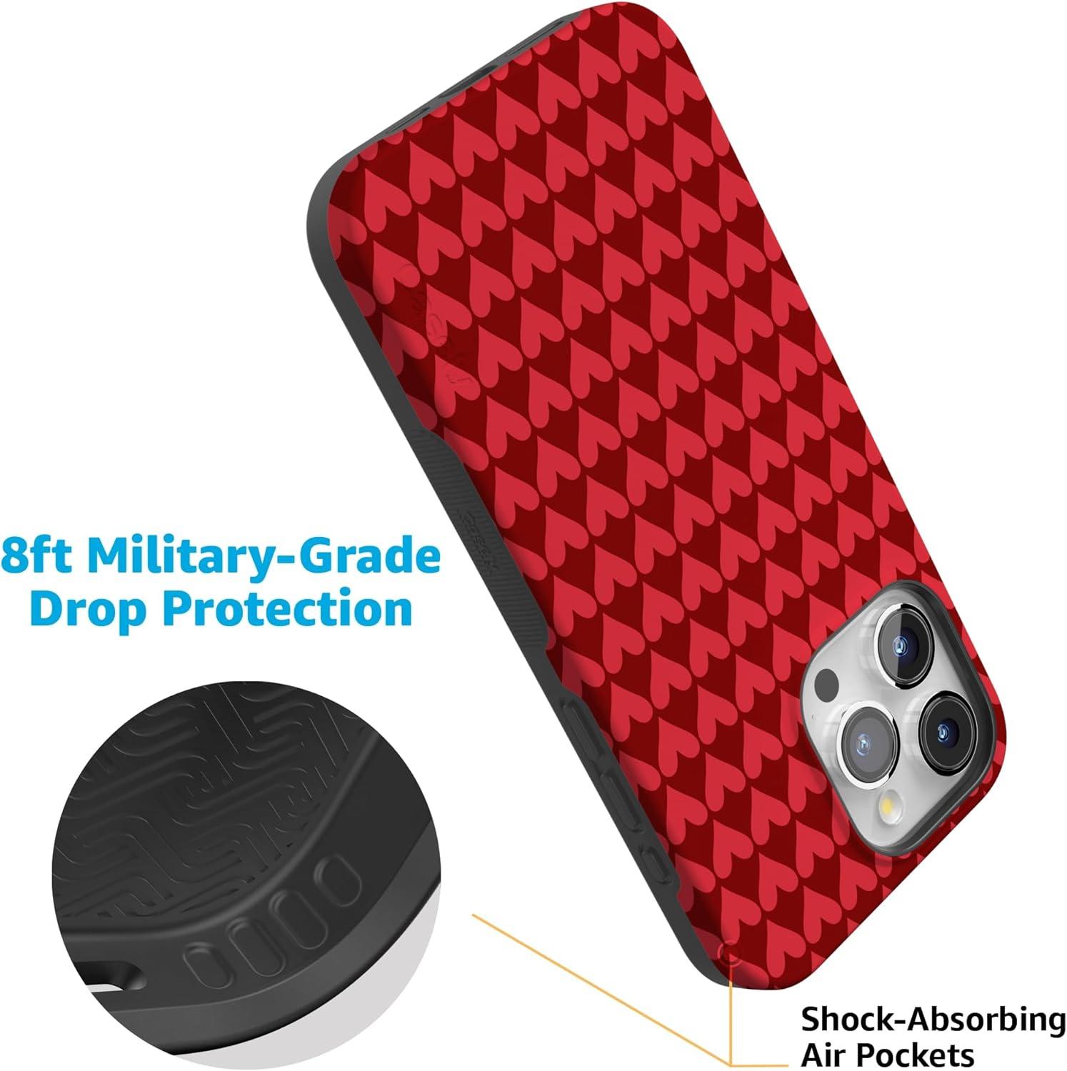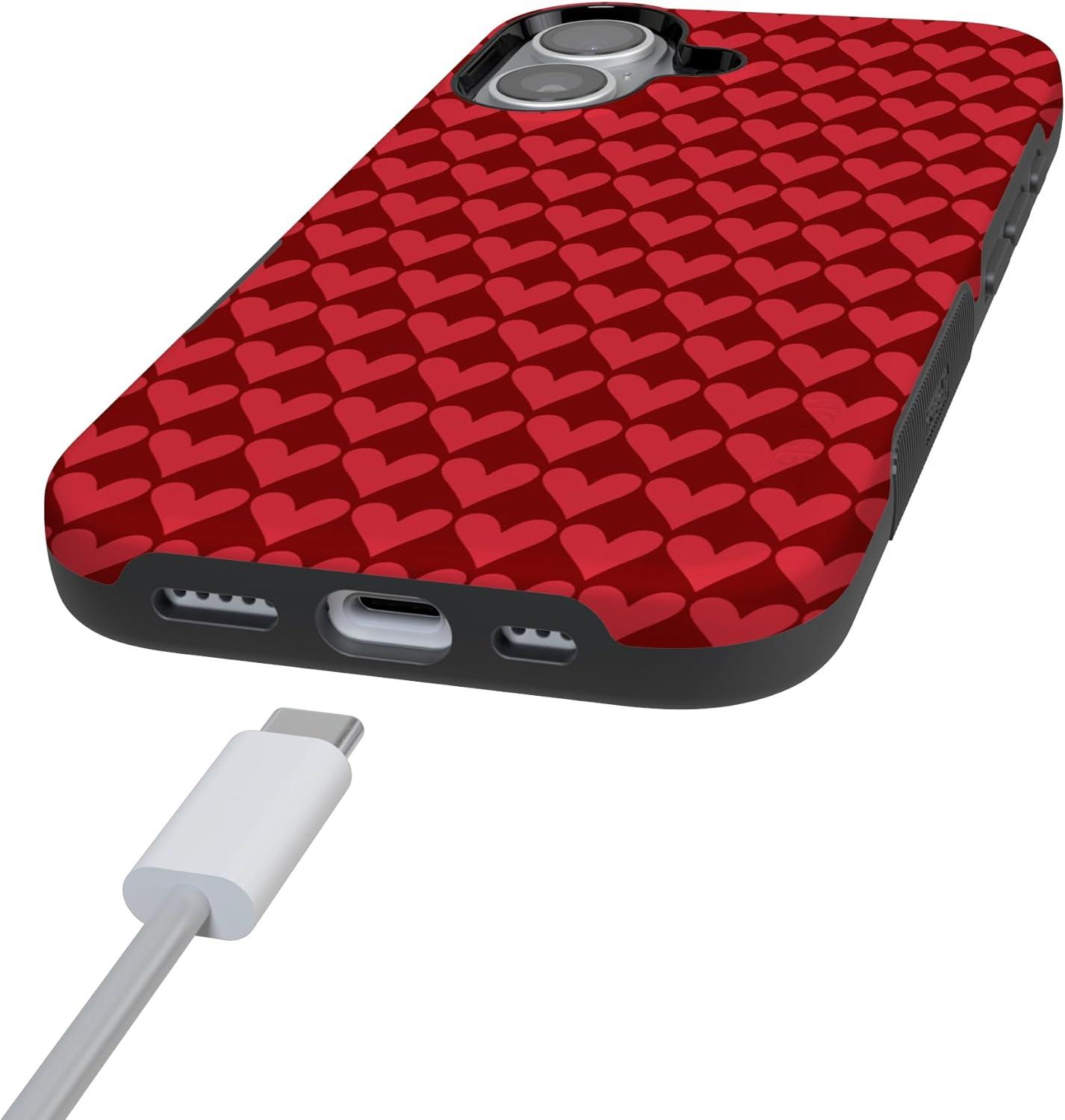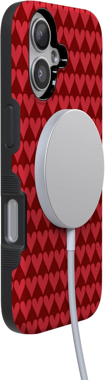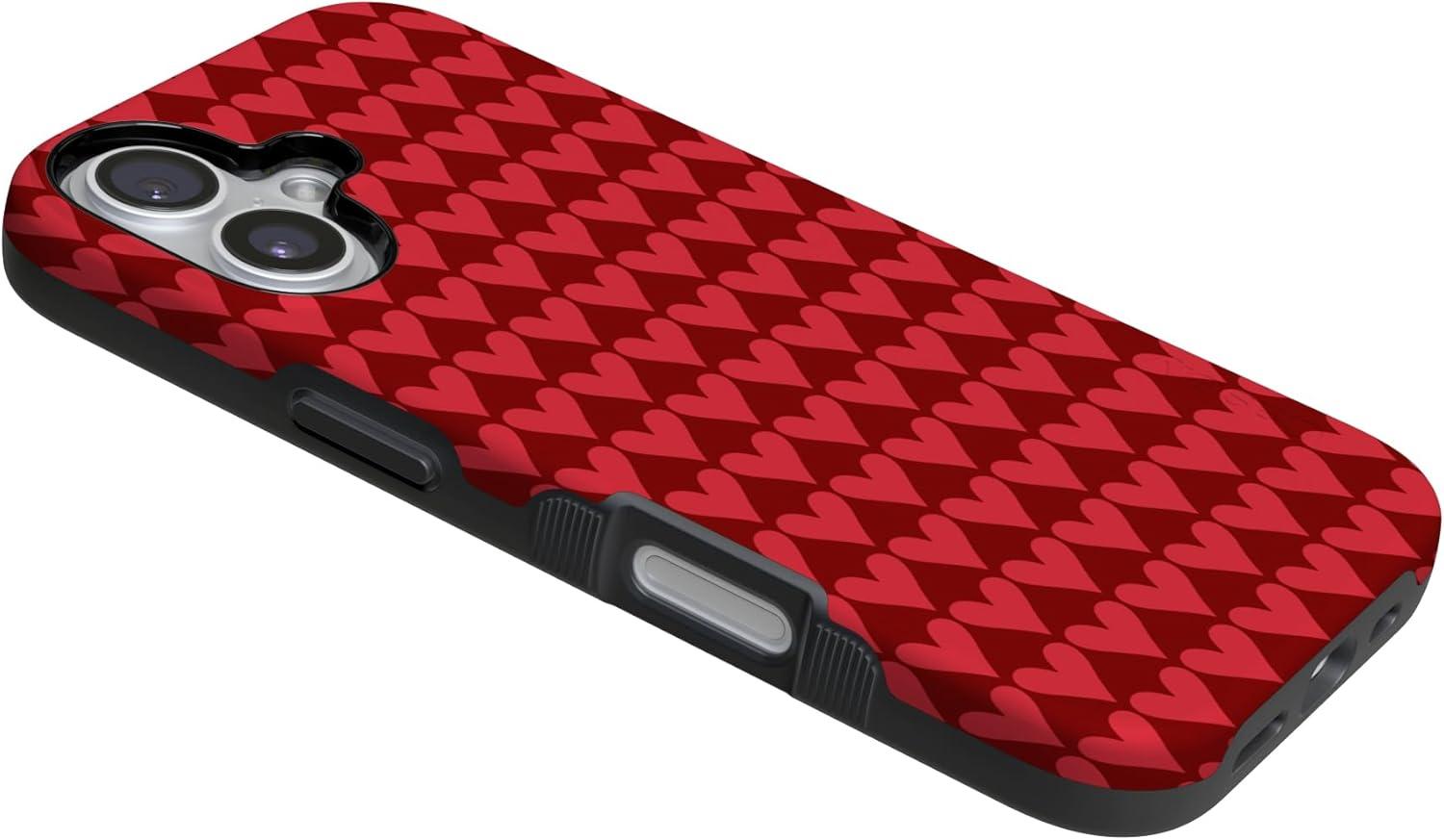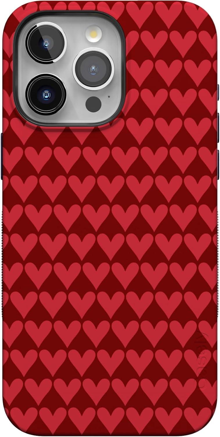 Casely iPhone 15 Pro Case | Heart Noir | Tiny Hearts | Bold Protective Design | MagSafe Compatible Design(Crazy in Love | Red Hearts)