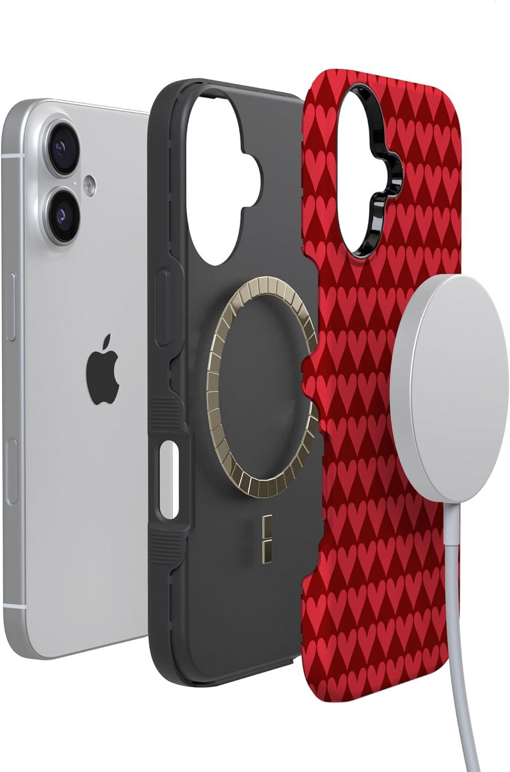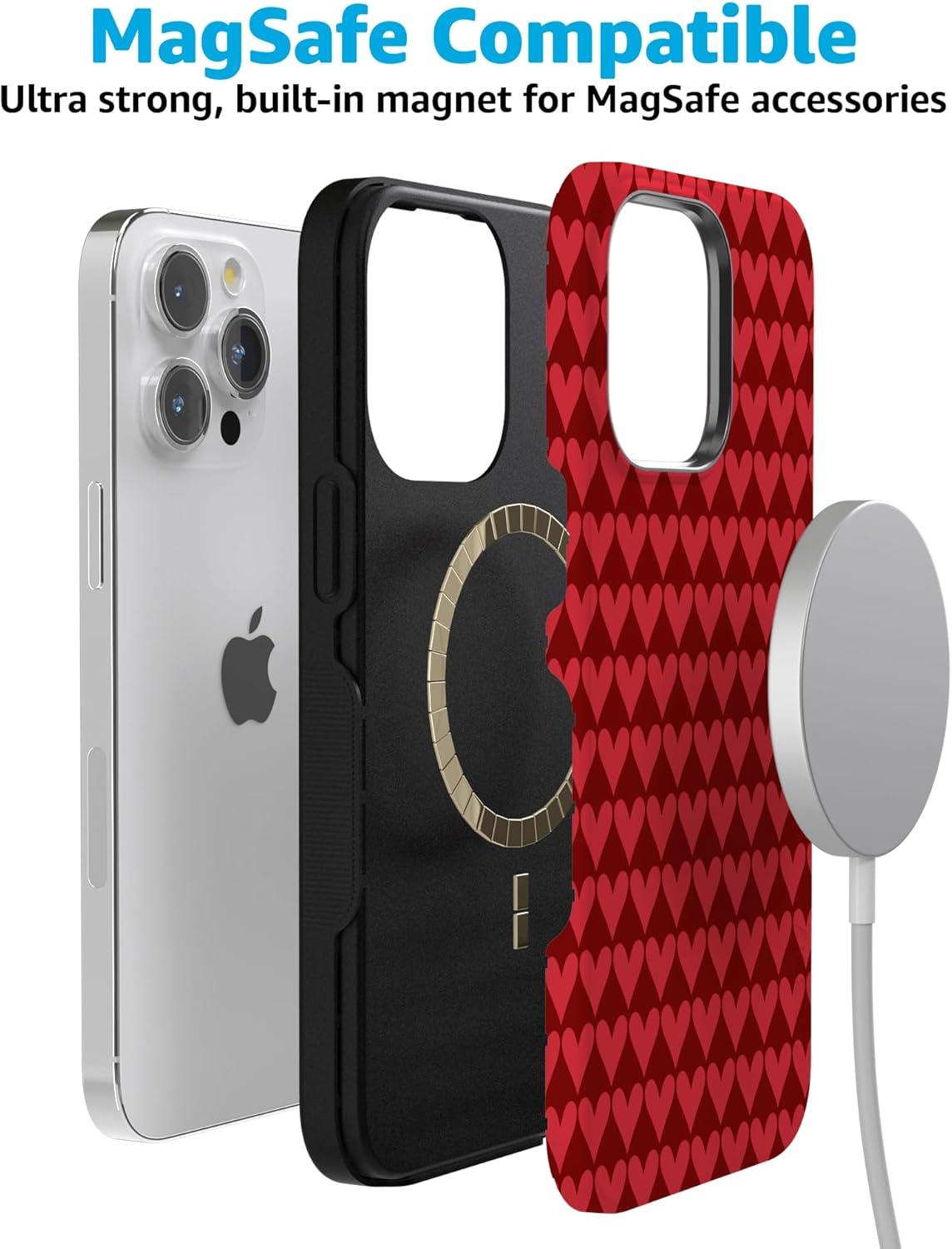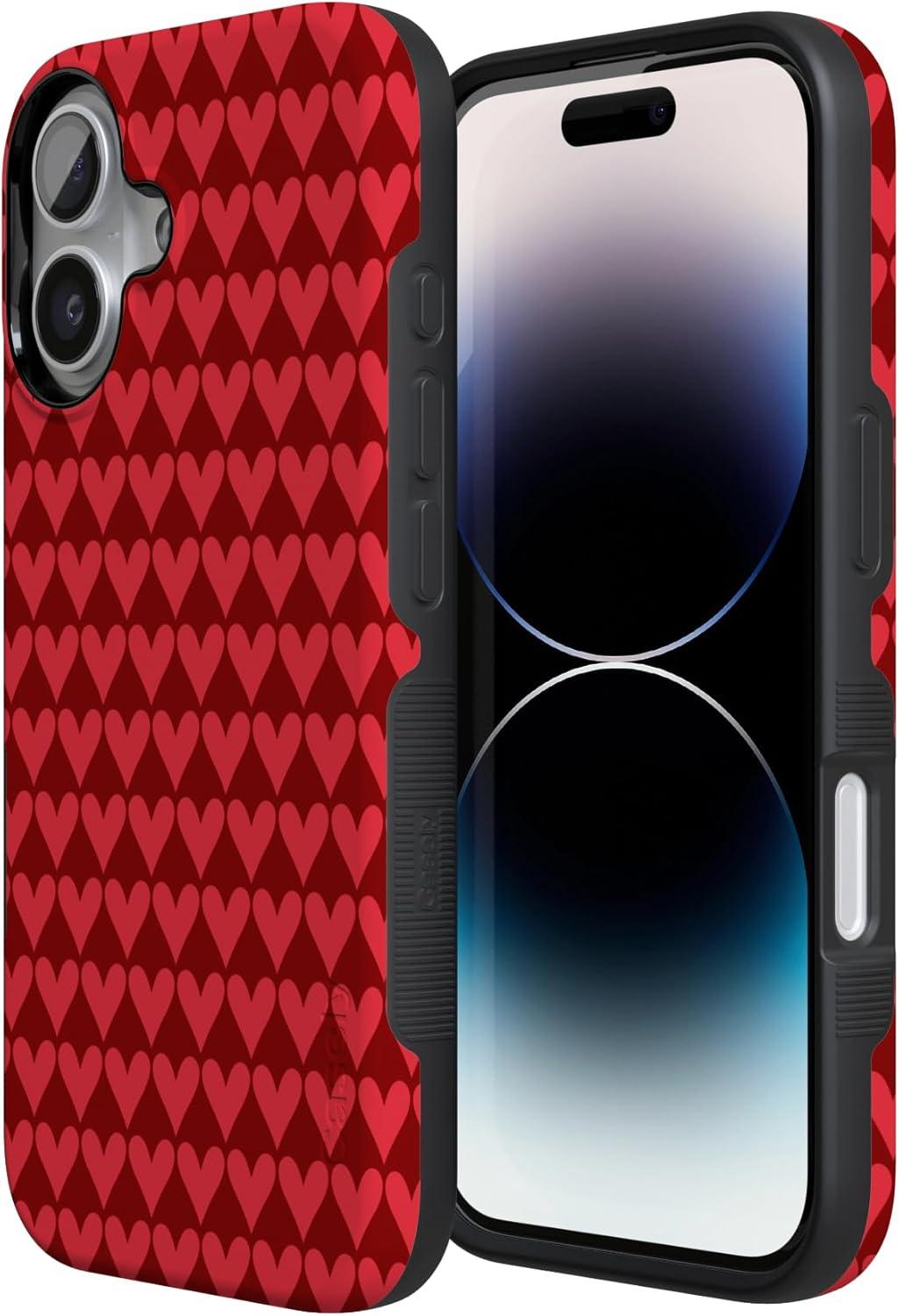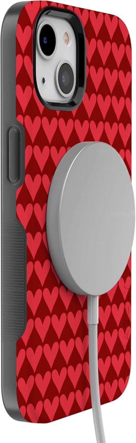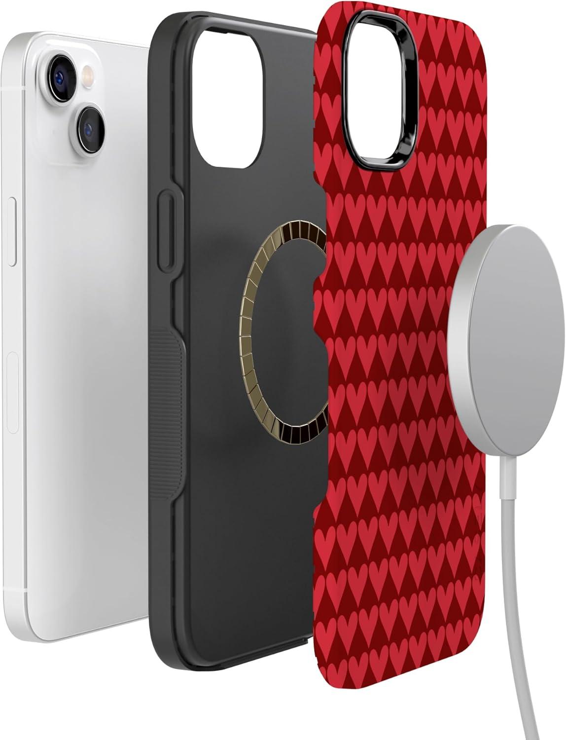 Casely iPhone 15 Pro Case | Heart Noir | Tiny Hearts | Bold Protective Design | MagSafe Compatible Design(Crazy in Love | Red Hearts)