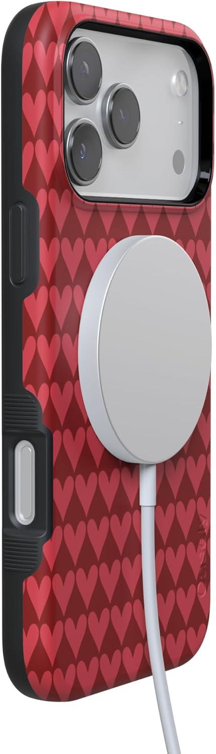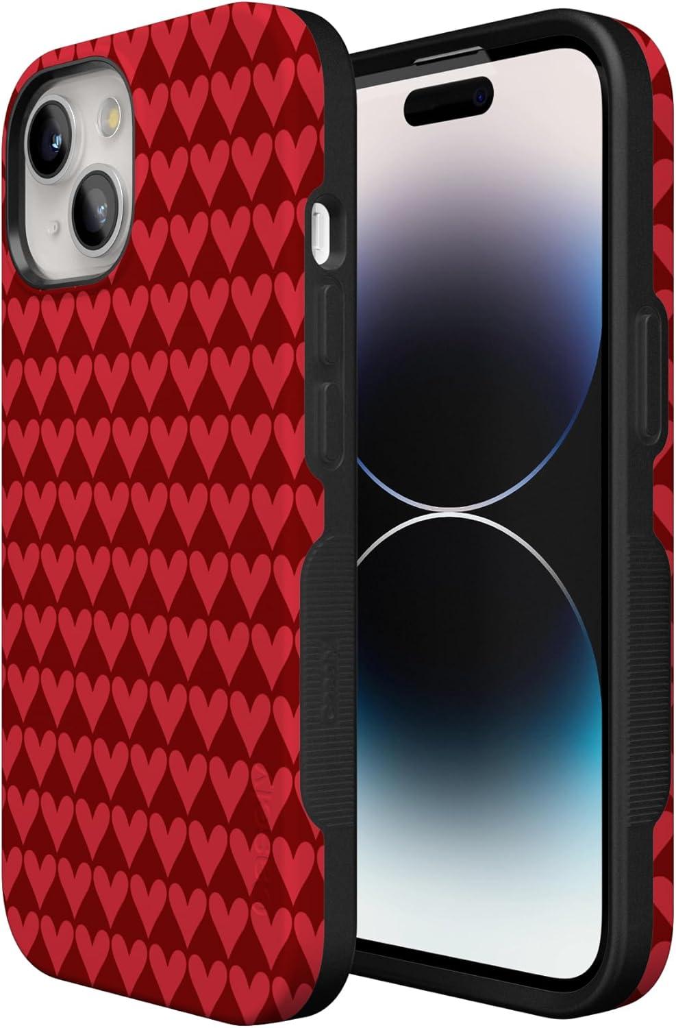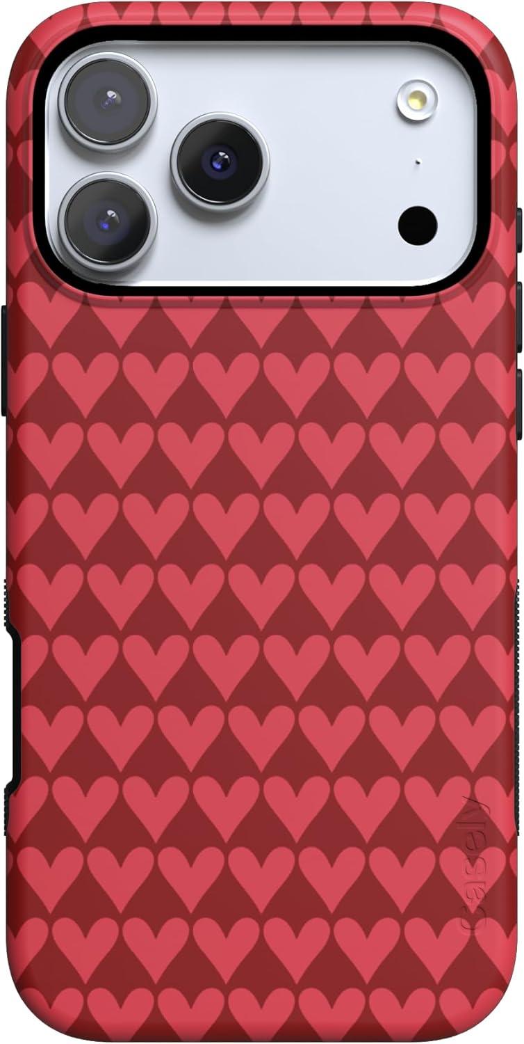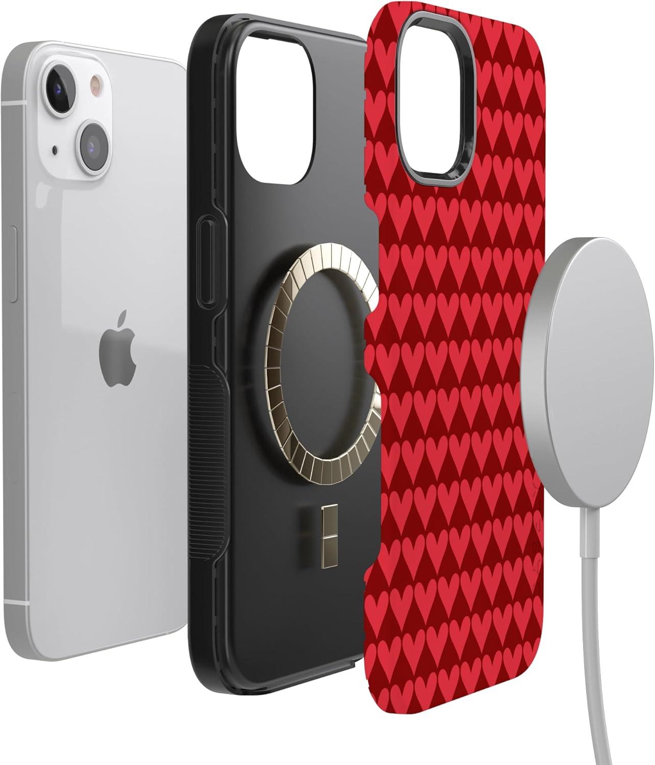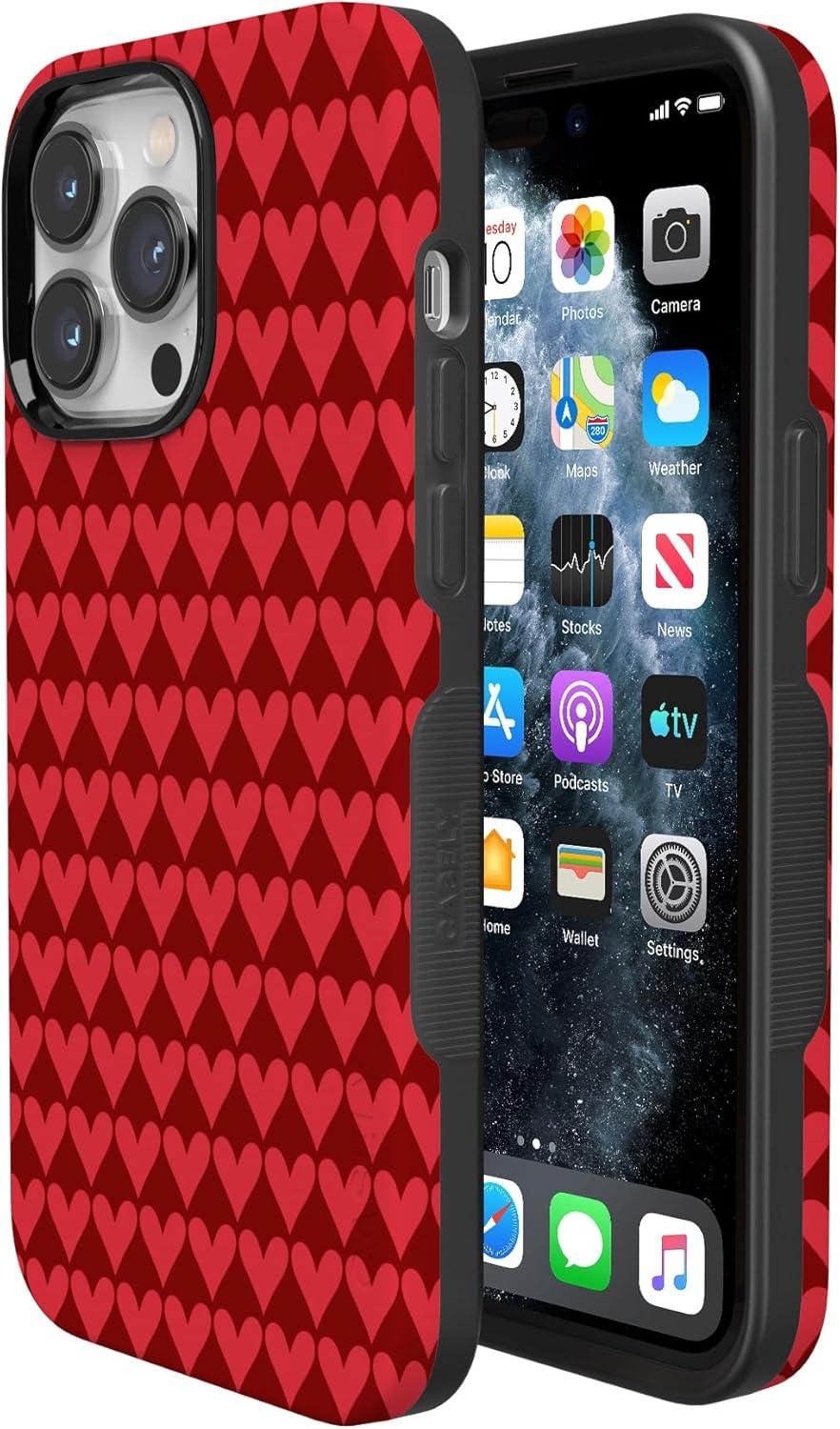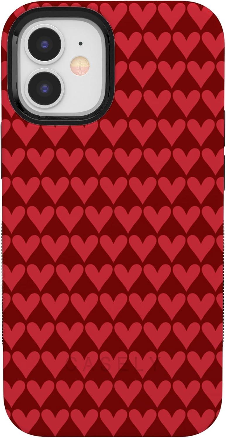 Casely iPhone 15 Pro Case | Heart Noir | Tiny Hearts | Bold Protective Design | MagSafe Compatible Design(Crazy in Love | Red Hearts)