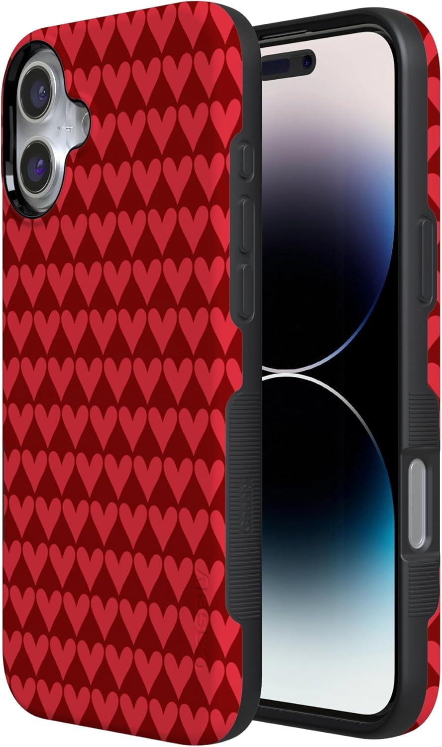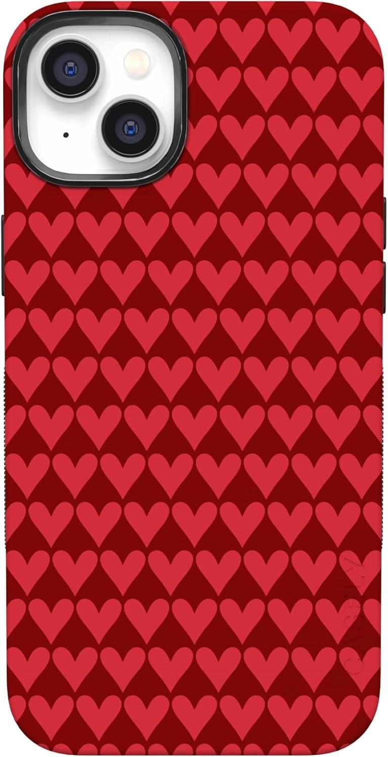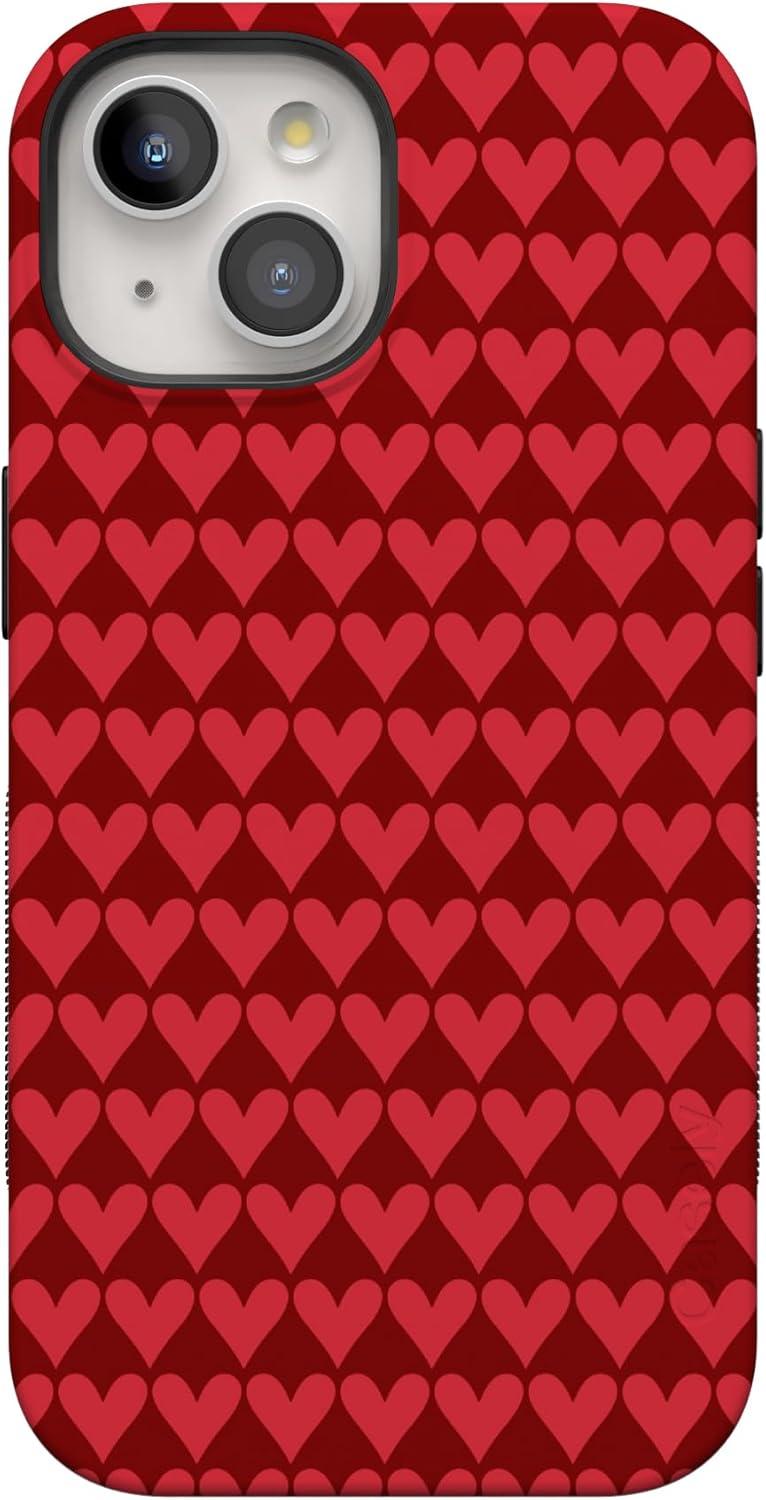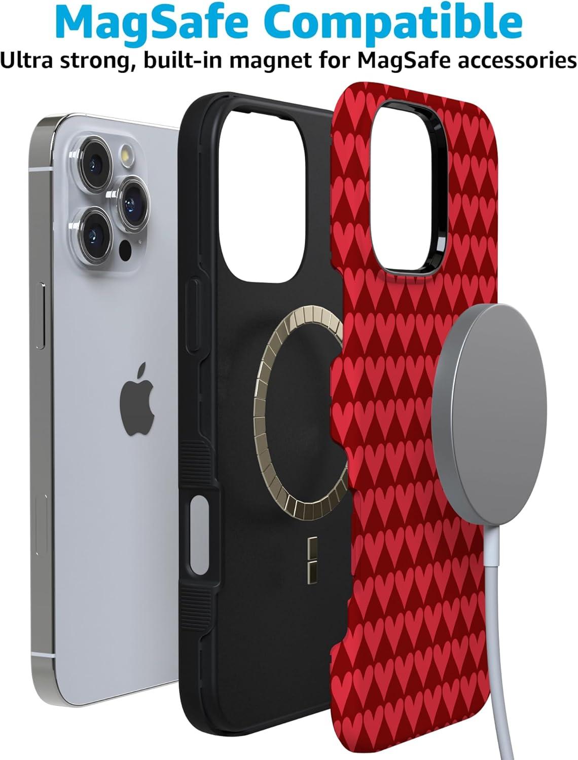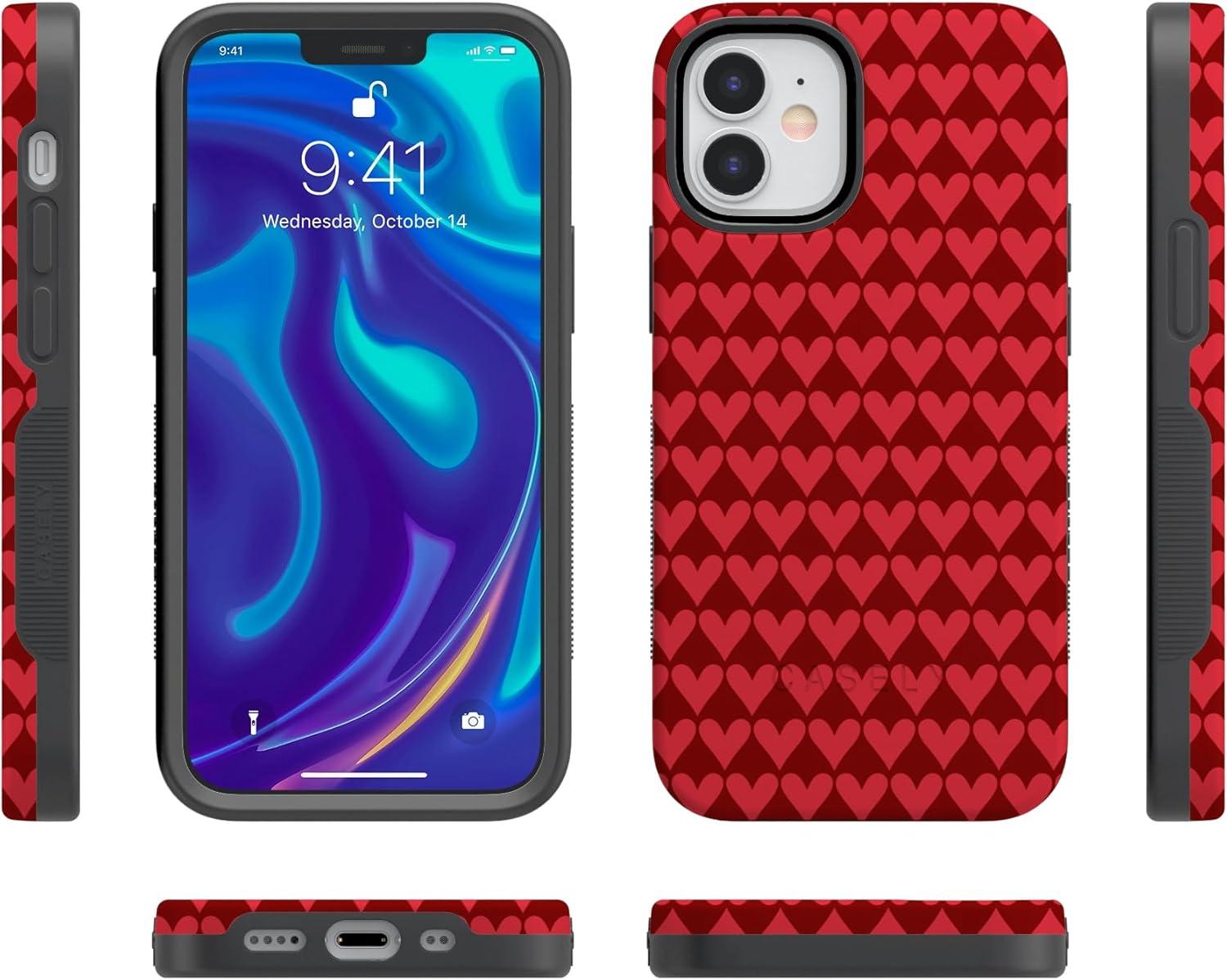Casely iPhone 15 Pro Case | Heart Noir | Tiny Hearts | Bold Protective Design | MagSafe Compatible Design(Crazy in Love | Red Hearts)