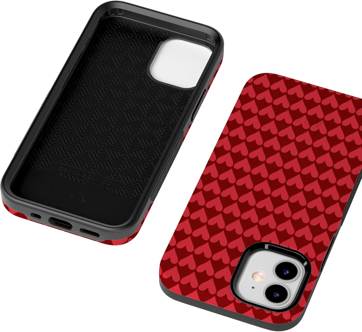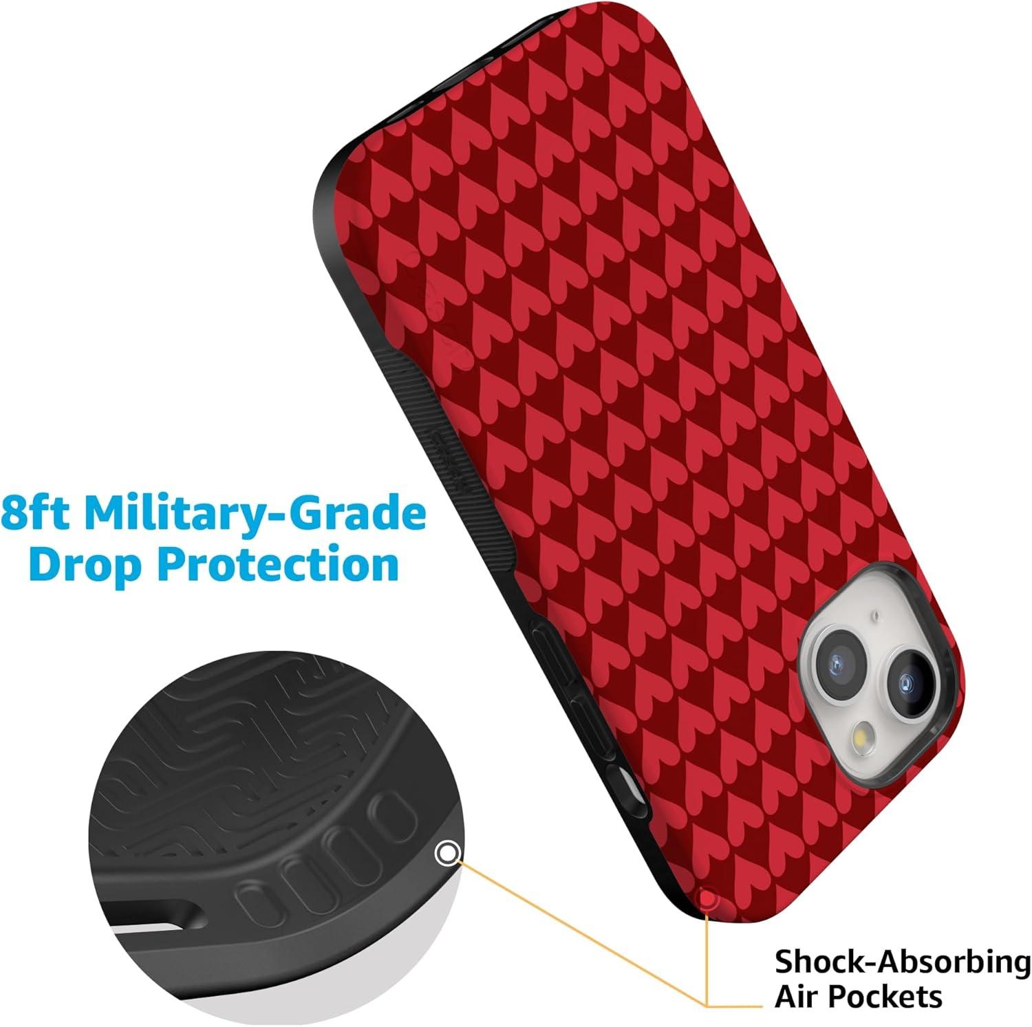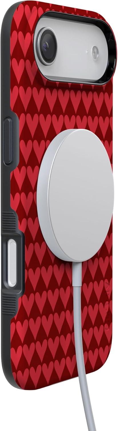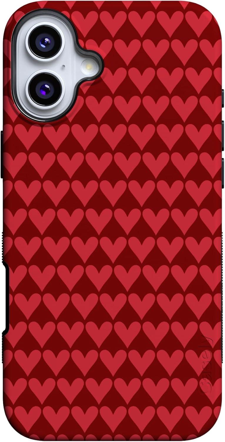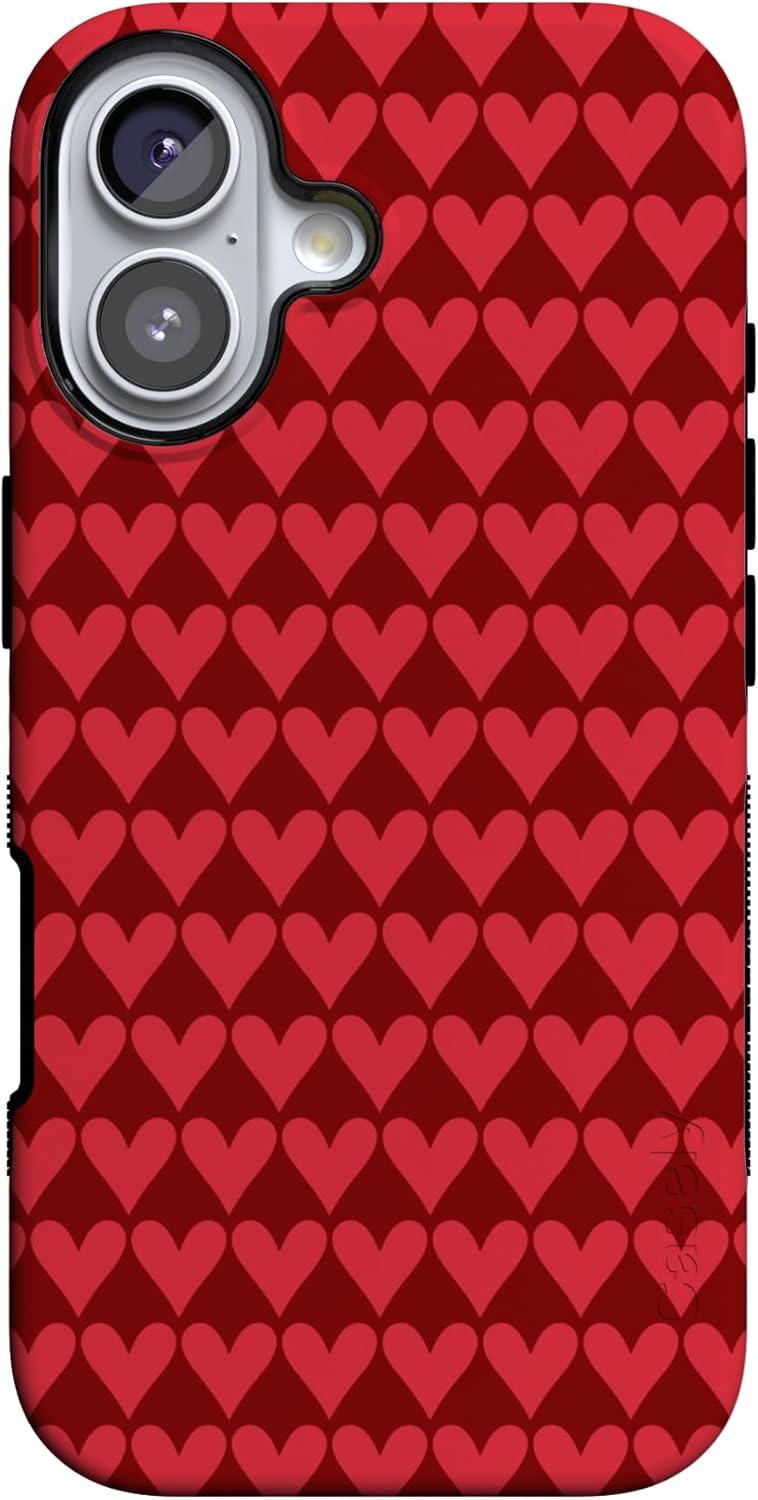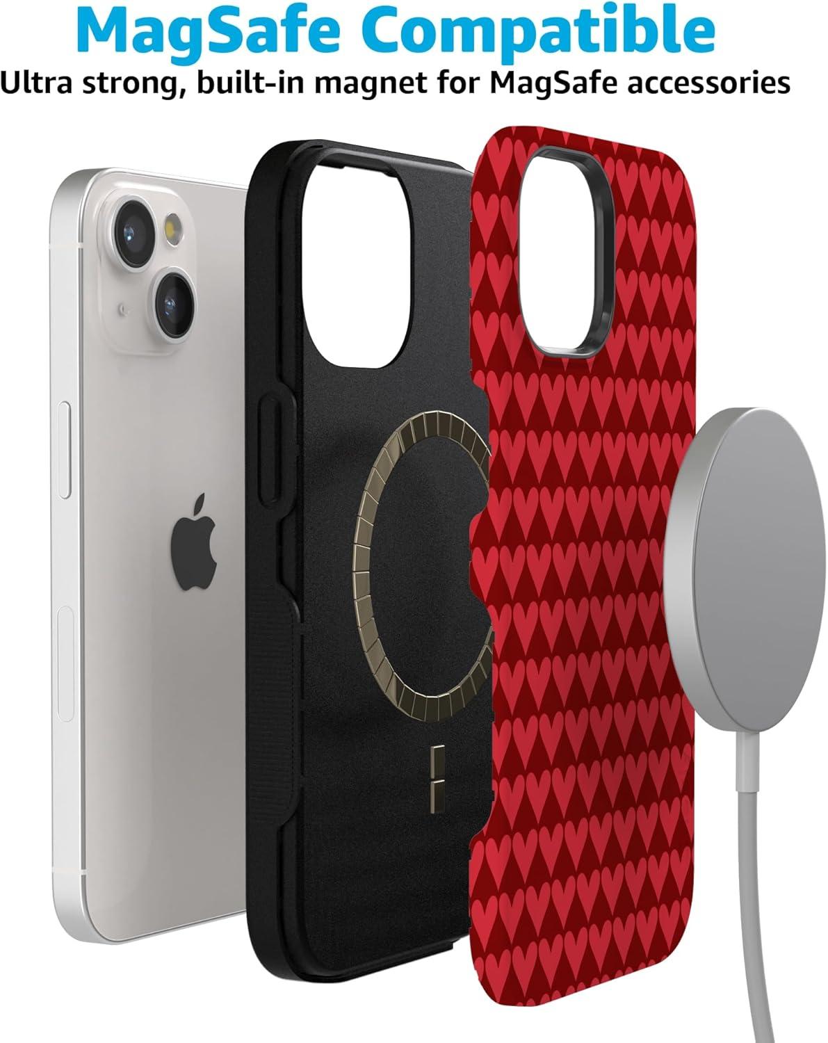 Casely iPhone 15 Pro Case | Heart Noir | Tiny Hearts | Bold Protective Design | MagSafe Compatible Design(Crazy in Love | Red Hearts)