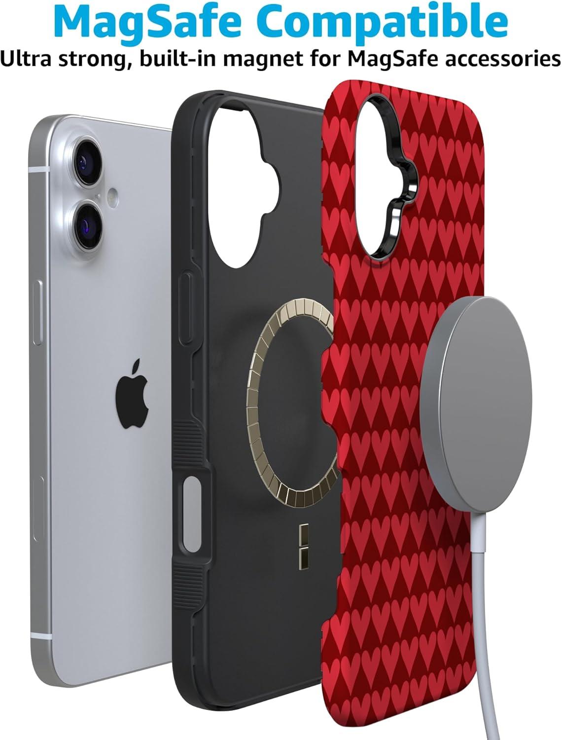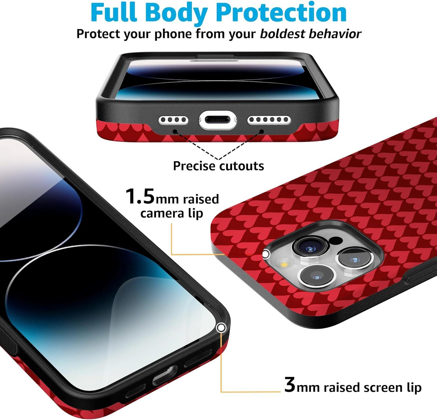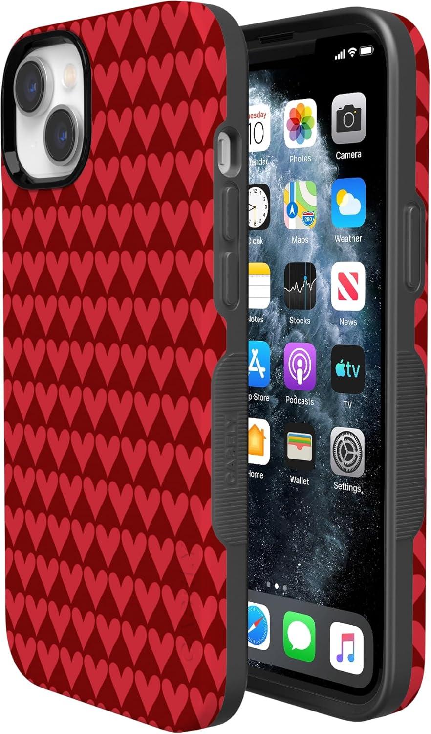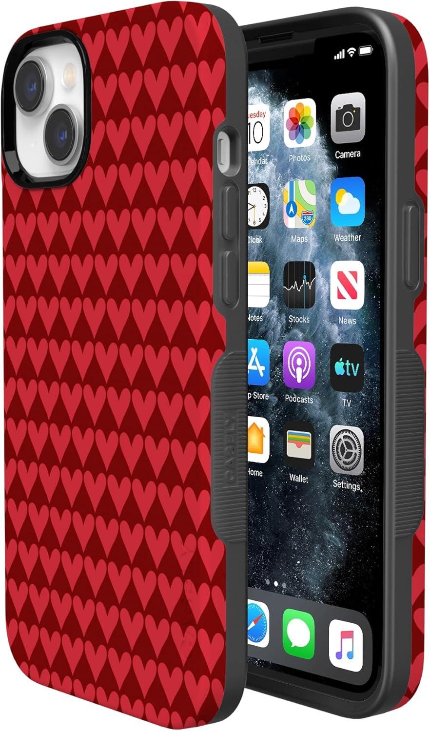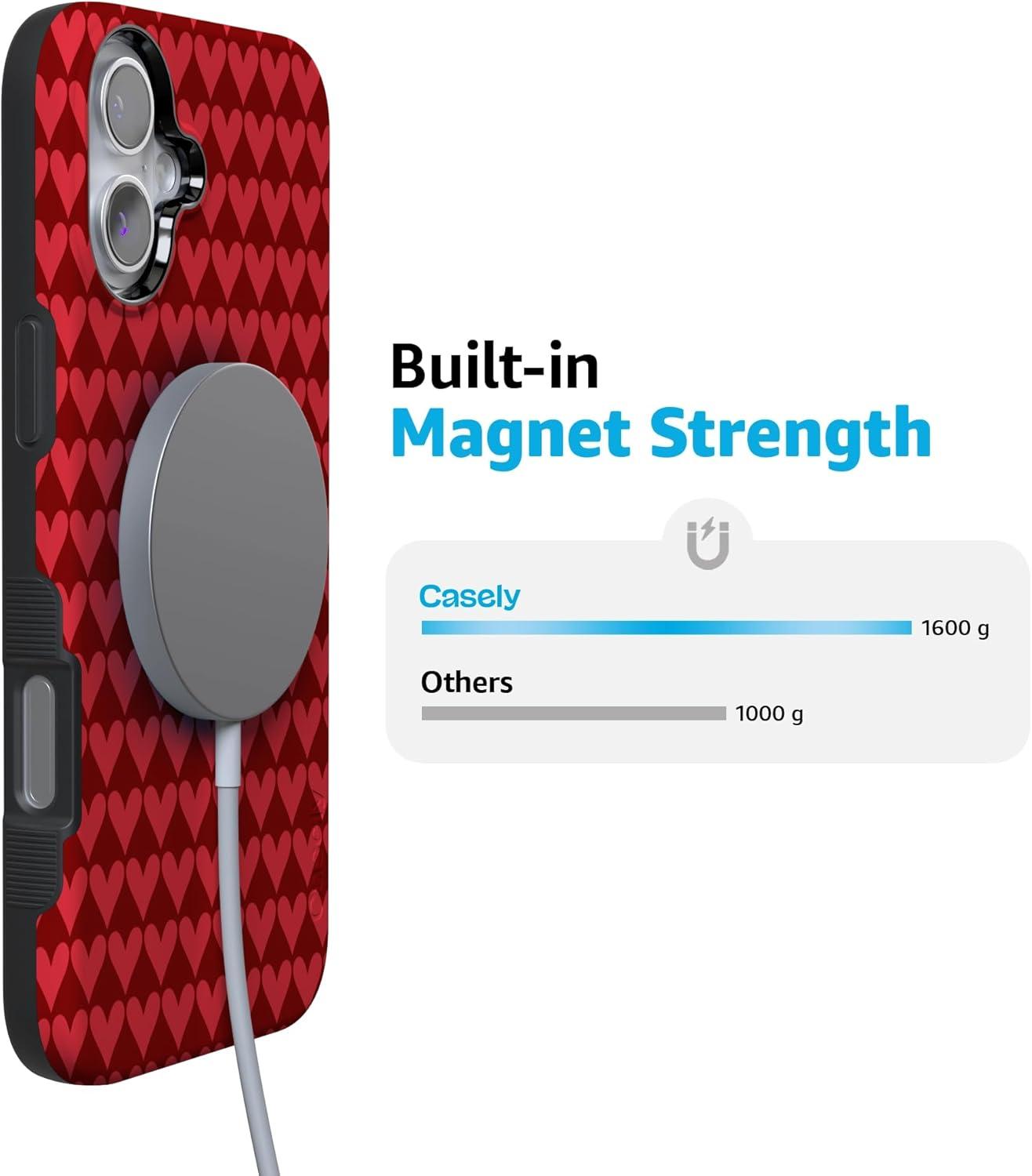 Casely iPhone 15 Pro Case | Heart Noir | Tiny Hearts | Bold Protective Design | MagSafe Compatible Design(Crazy in Love | Red Hearts)