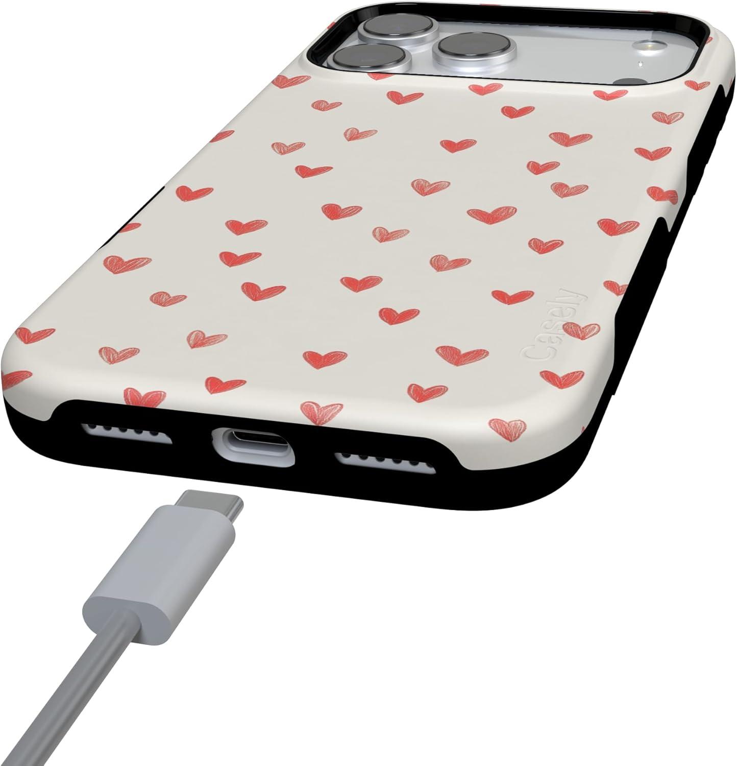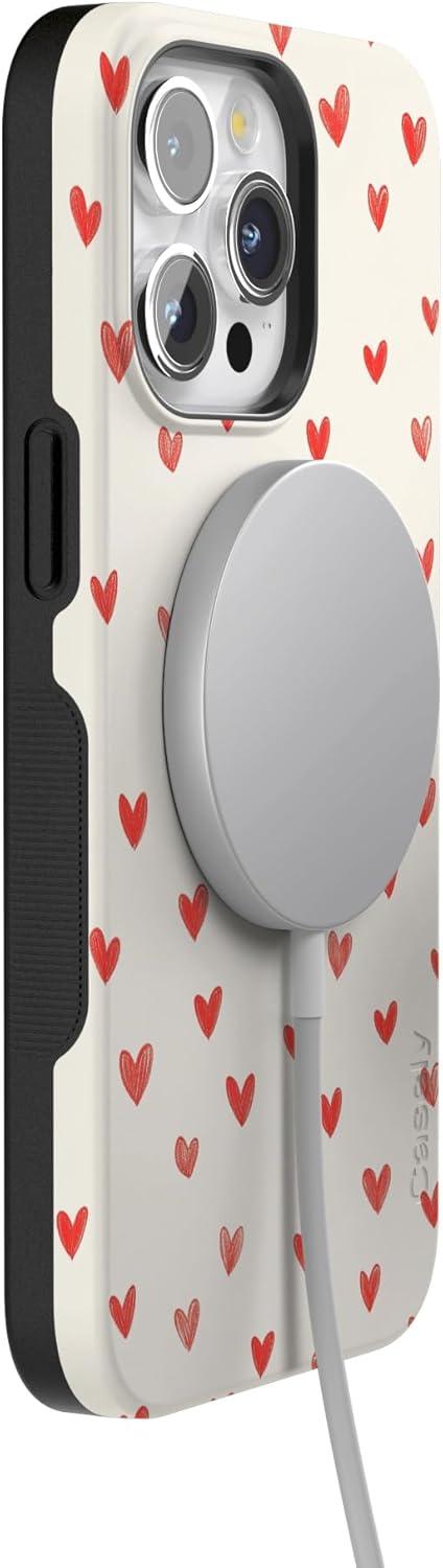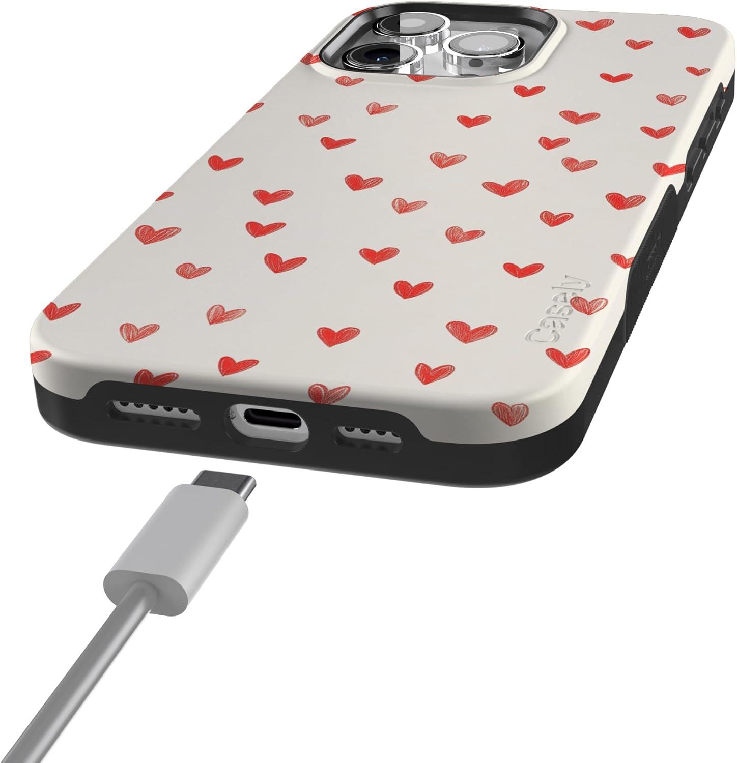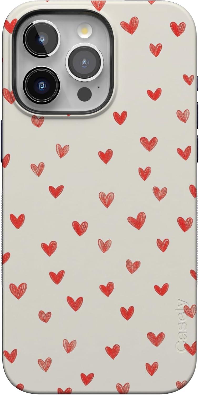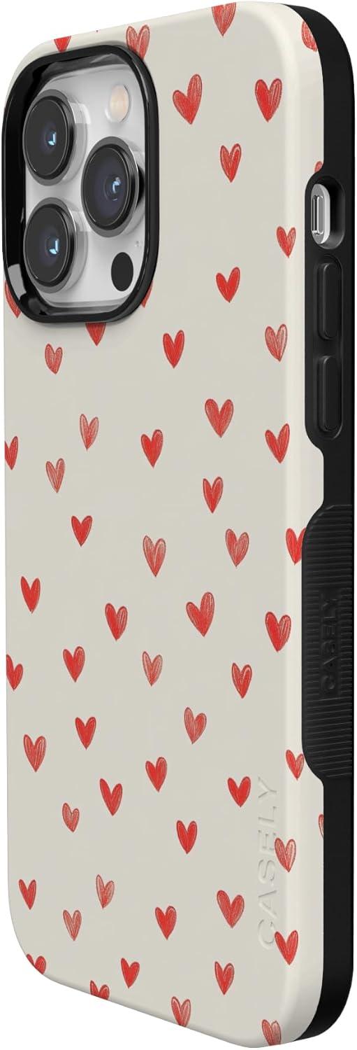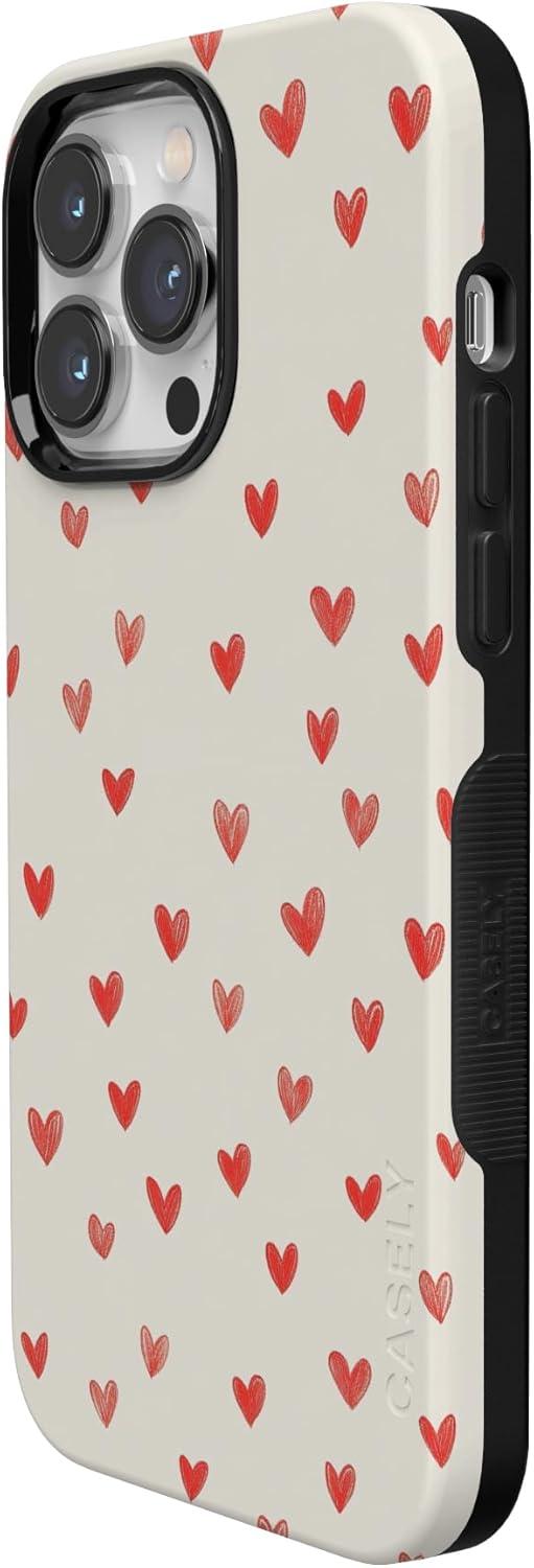 Casely iPhone 15 Pro Case | Heart Noir | Tiny Hearts | Bold Protective Design | MagSafe Compatible Design(Love Letters | Doodle Hearts)