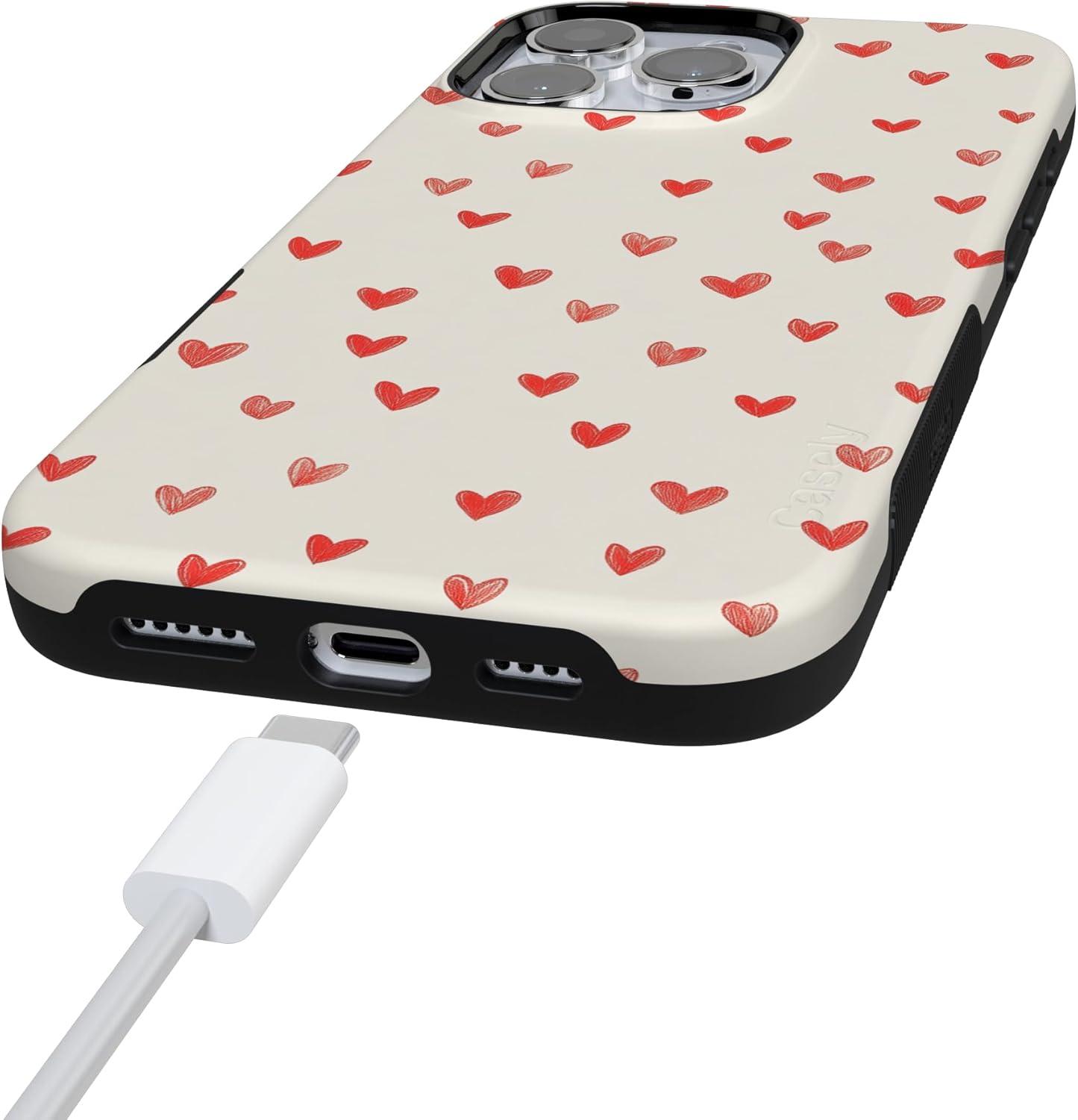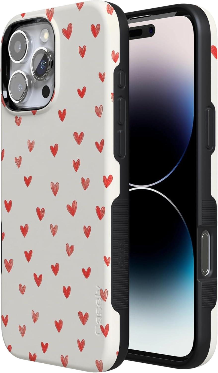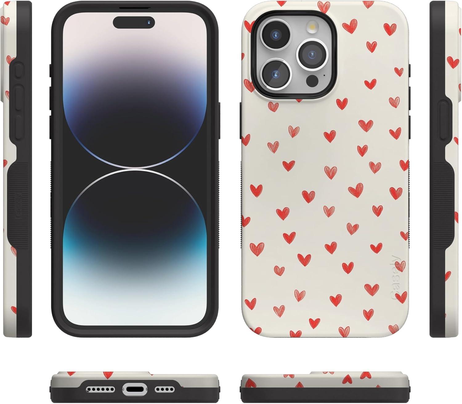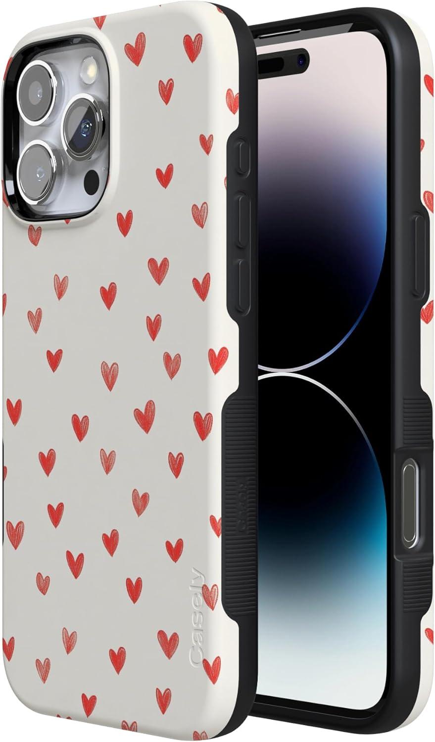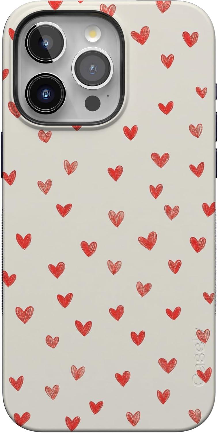 Casely iPhone 15 Pro Case | Heart Noir | Tiny Hearts | Bold Protective Design | MagSafe Compatible Design(Love Letters | Doodle Hearts)