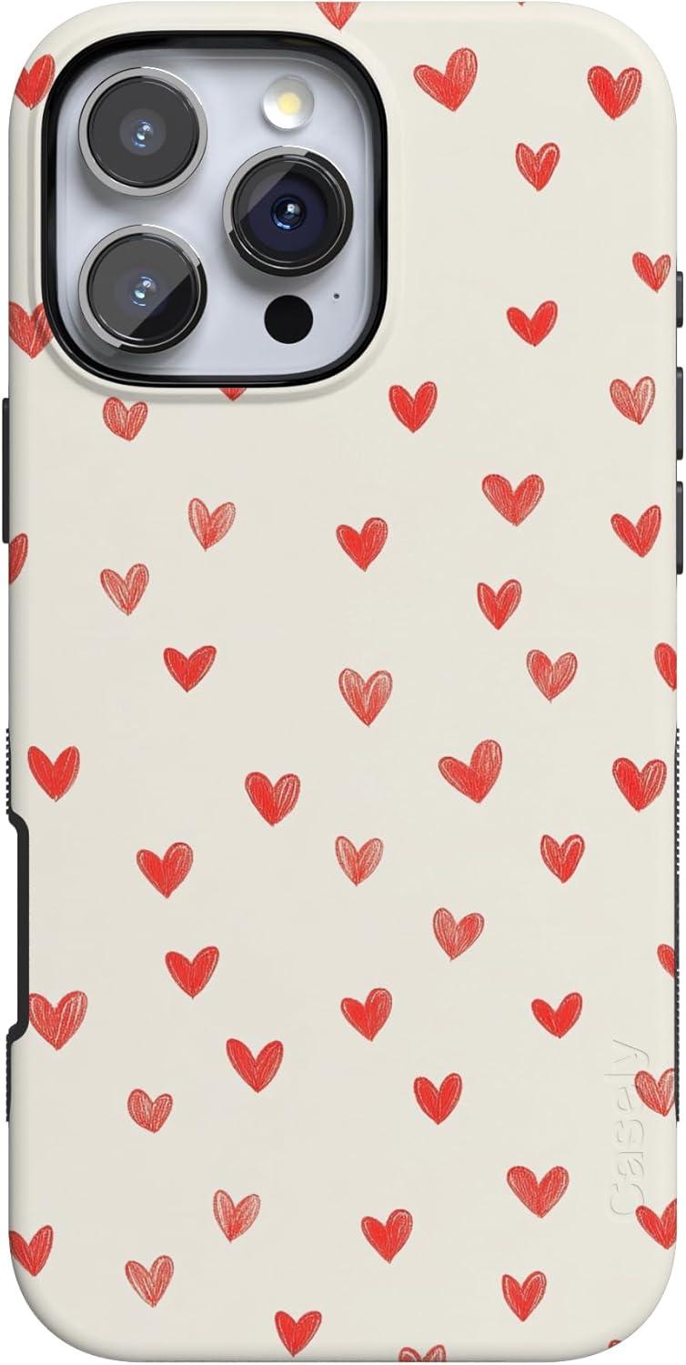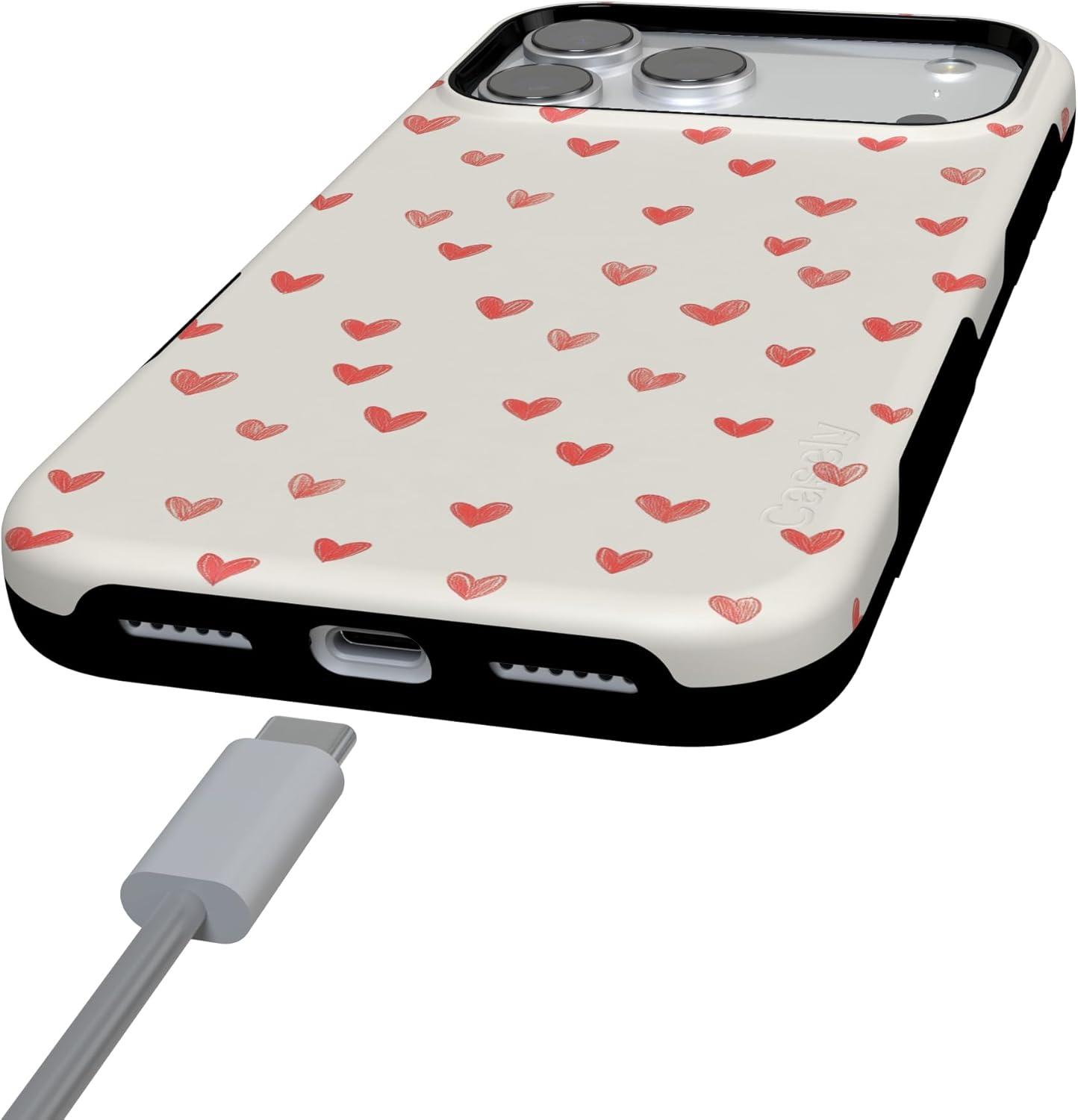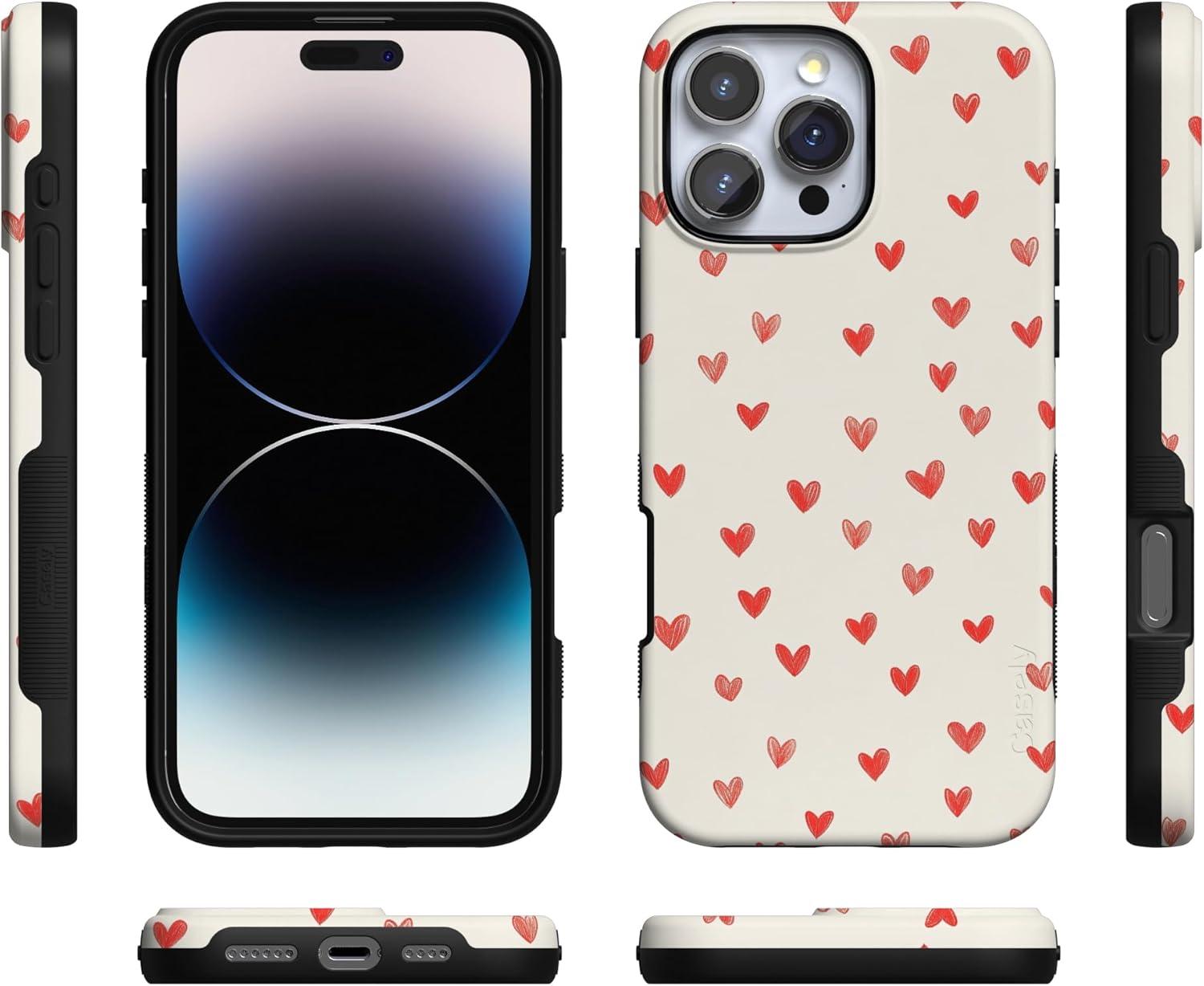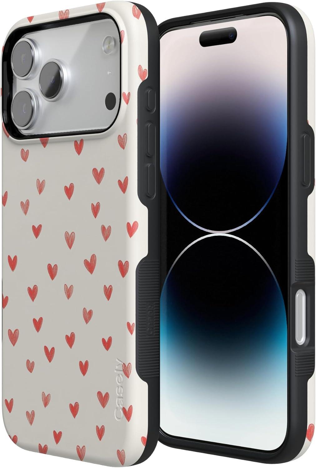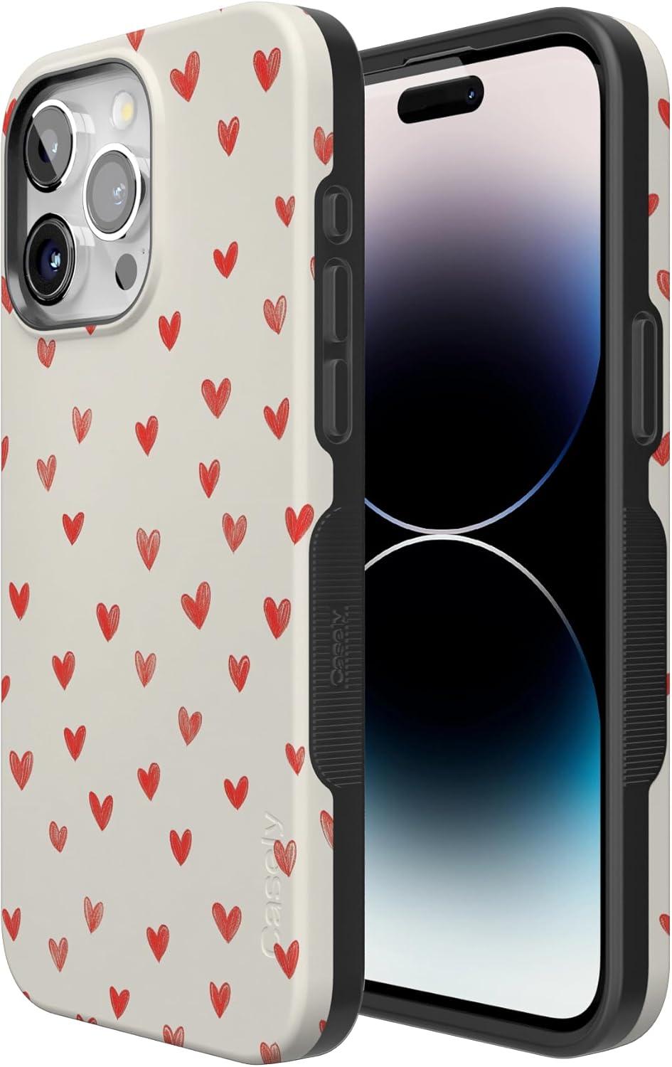 Casely iPhone 15 Pro Case | Heart Noir | Tiny Hearts | Bold Protective Design | MagSafe Compatible Design(Love Letters | Doodle Hearts)