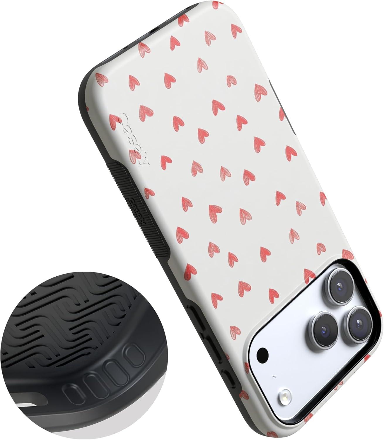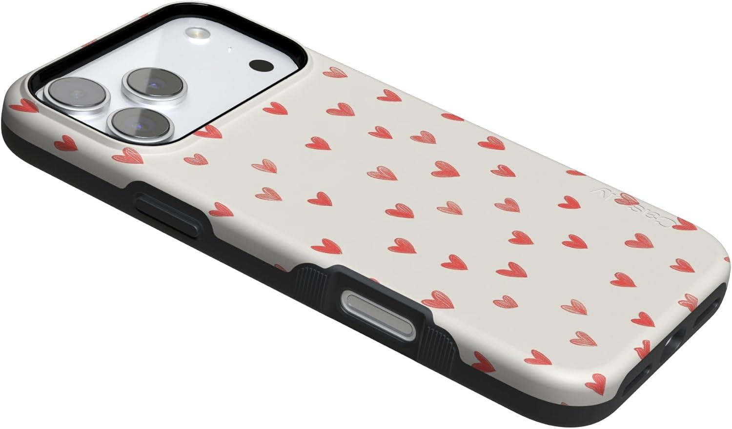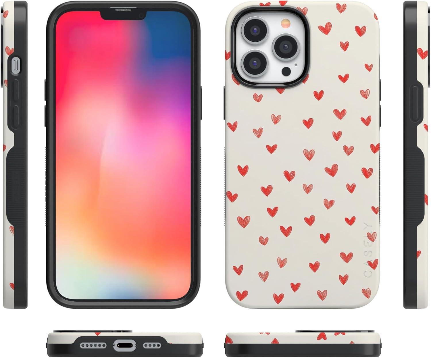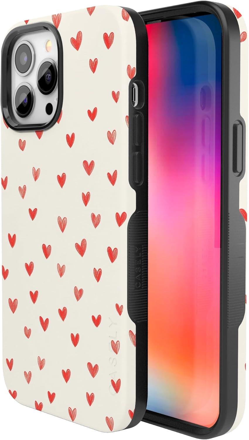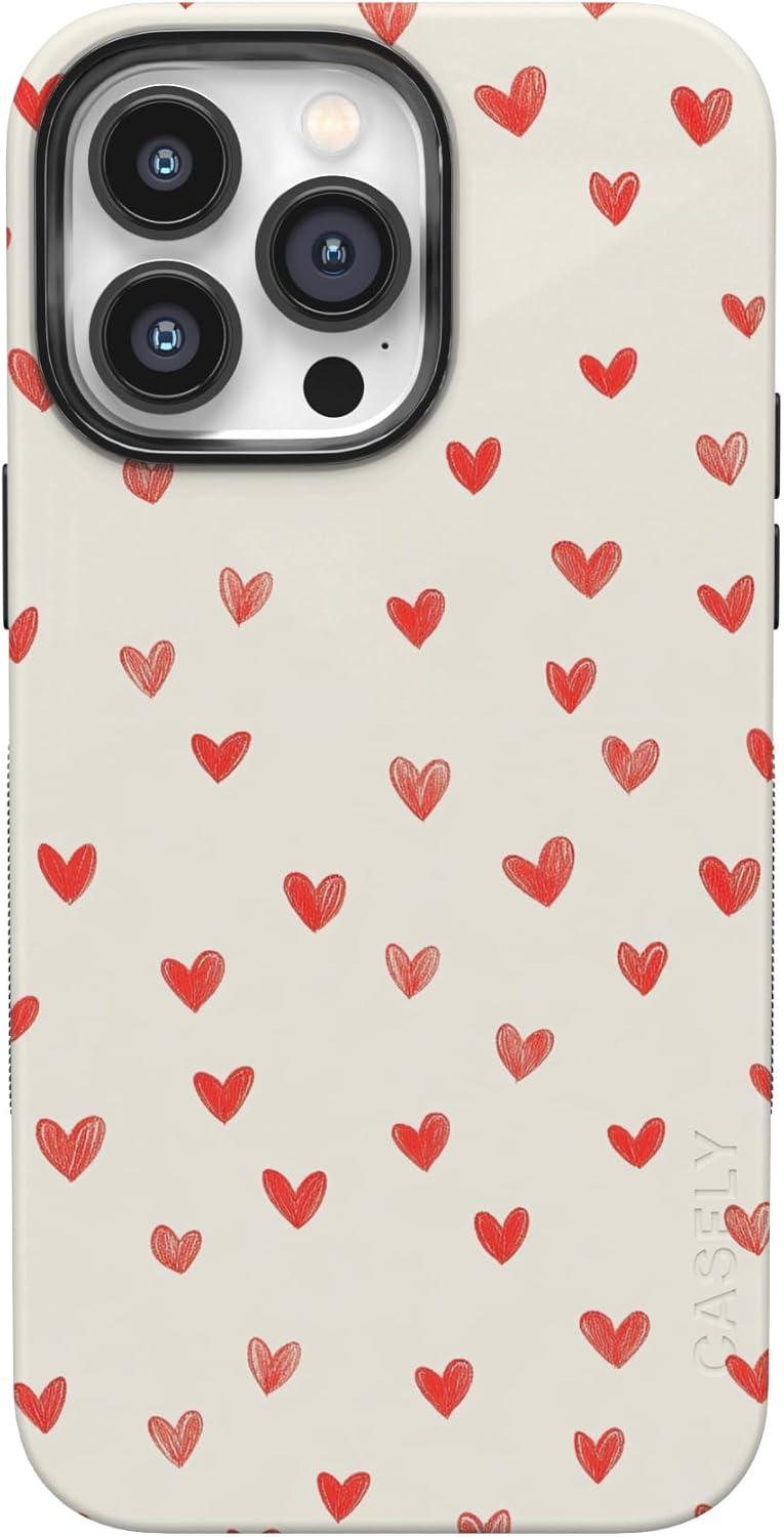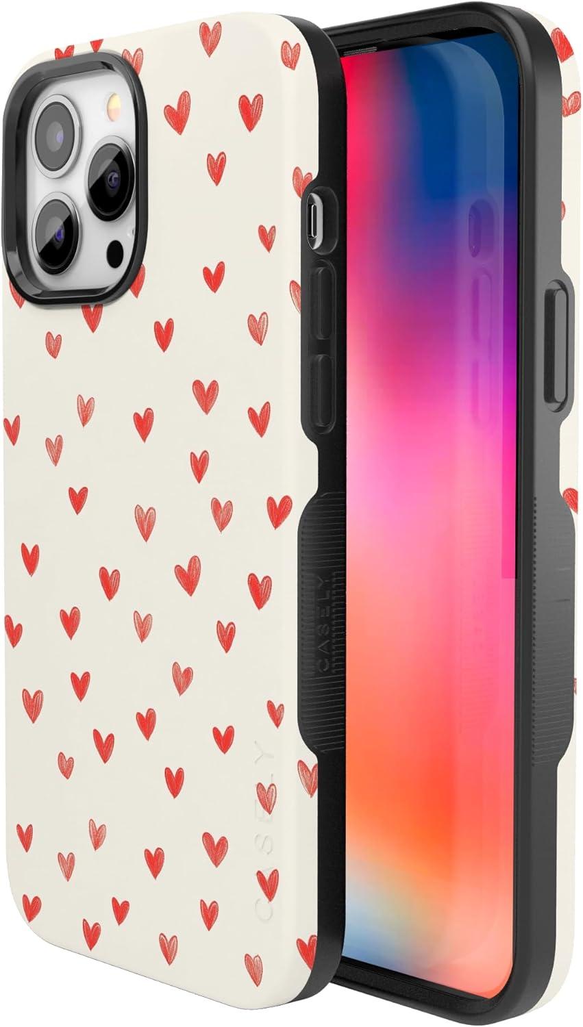 Casely iPhone 15 Pro Case | Heart Noir | Tiny Hearts | Bold Protective Design | MagSafe Compatible Design(Love Letters | Doodle Hearts)