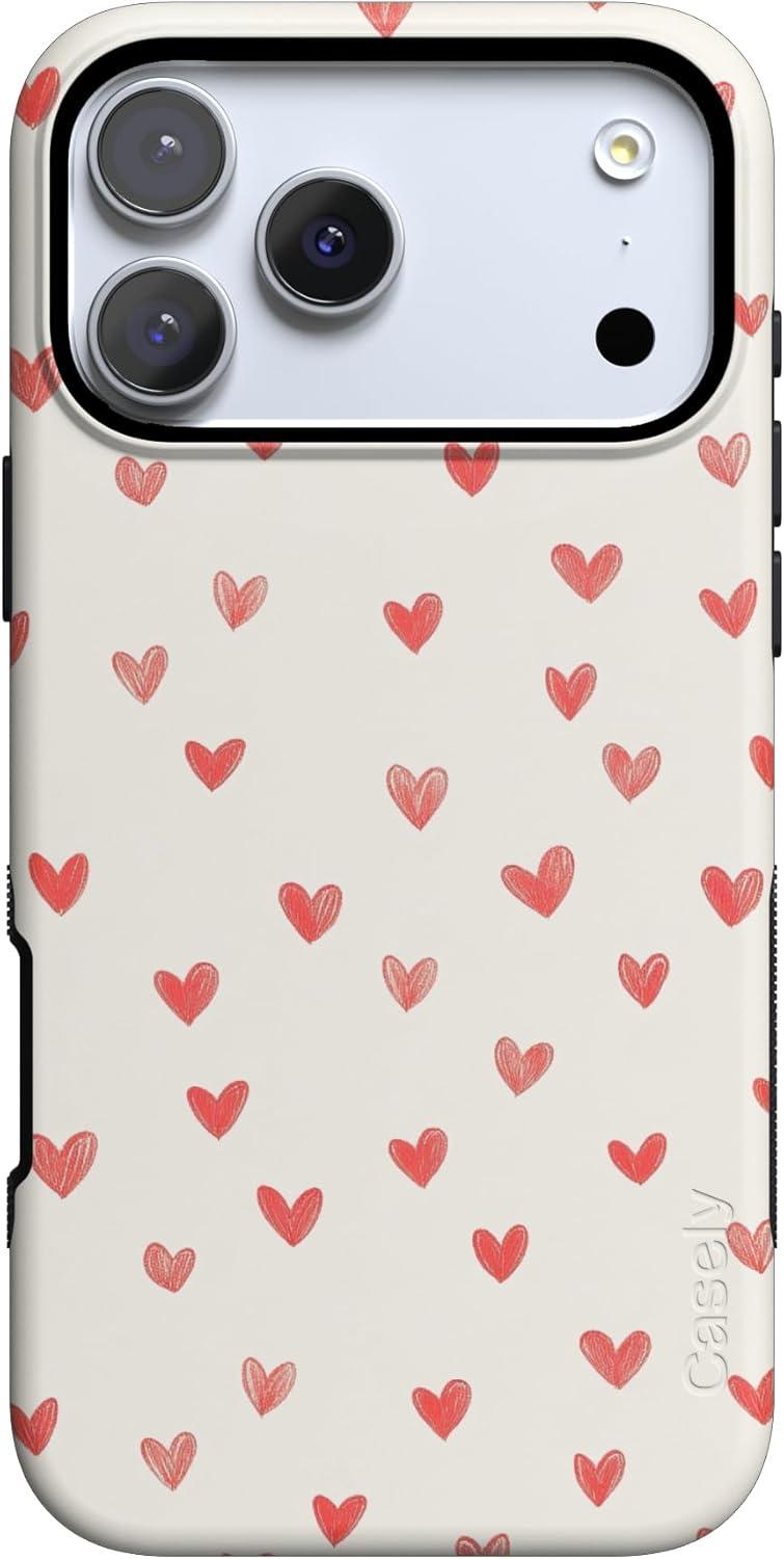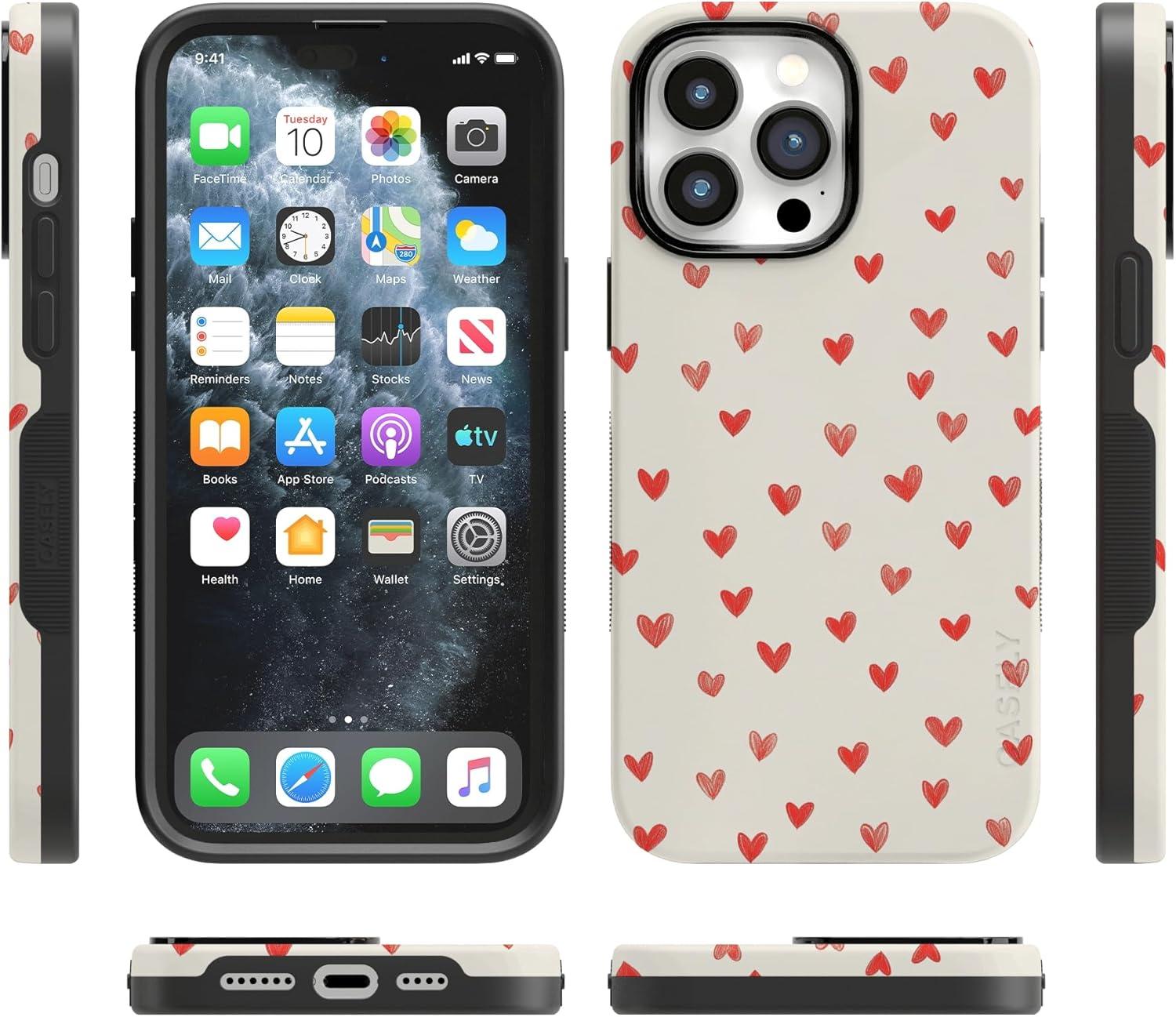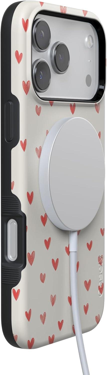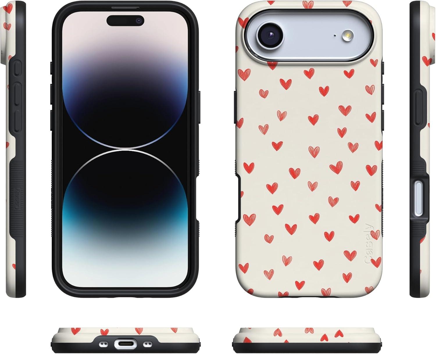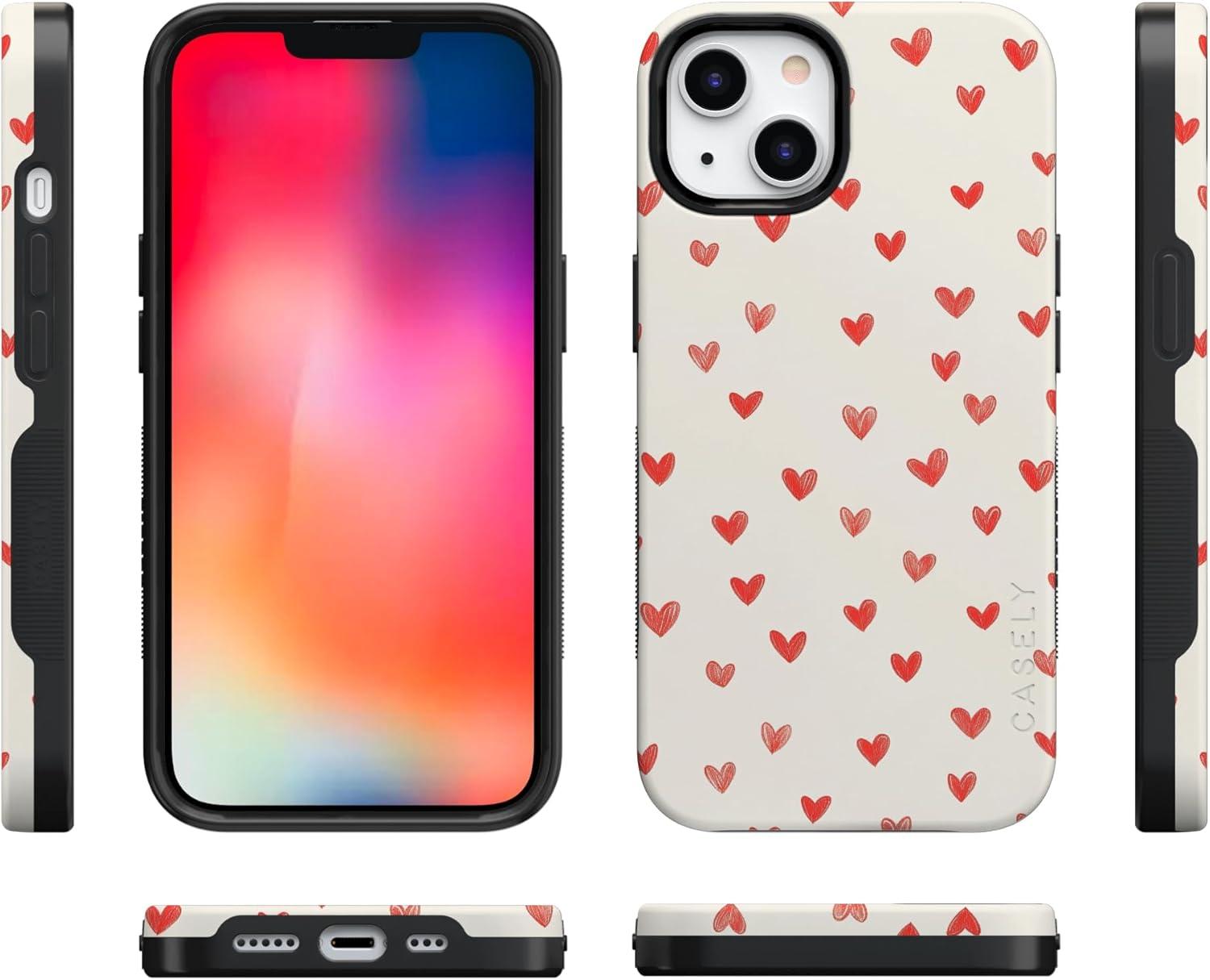Casely iPhone 15 Pro Case | Heart Noir | Tiny Hearts | Bold Protective Design | MagSafe Compatible Design(Love Letters | Doodle Hearts)