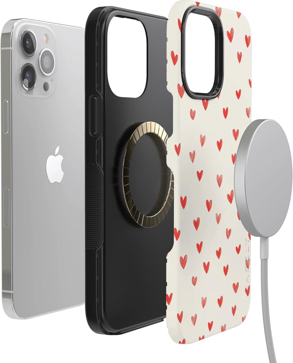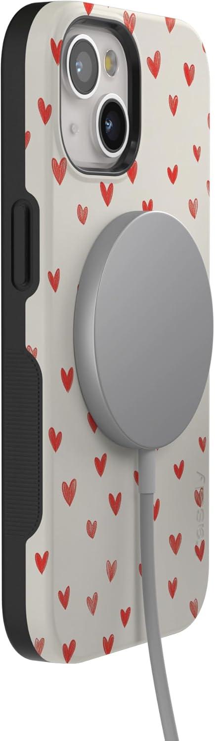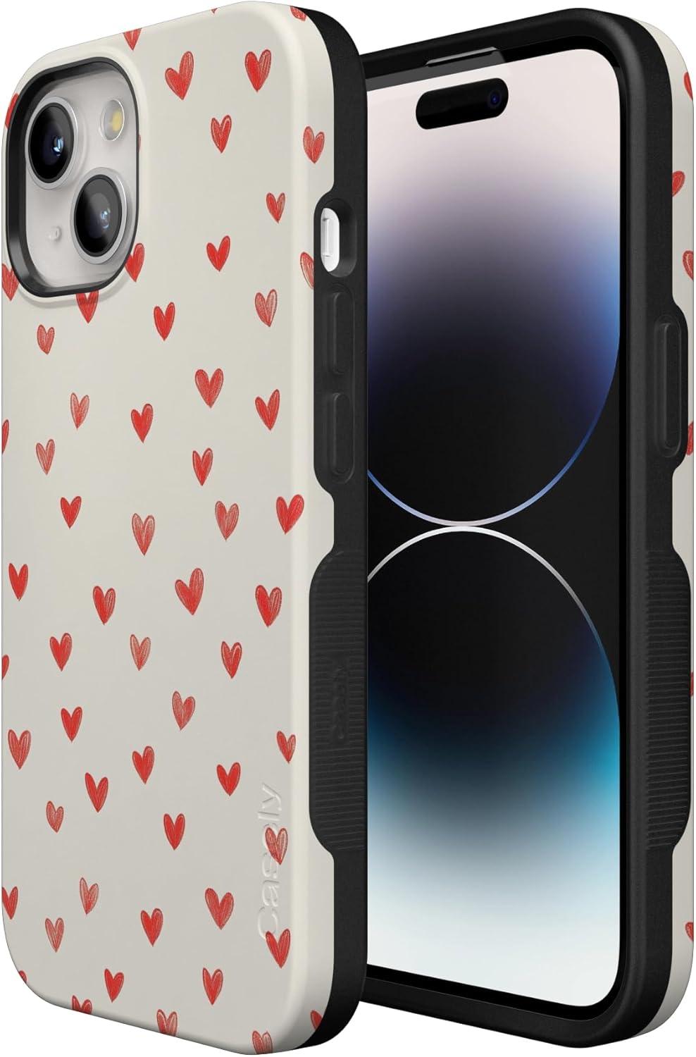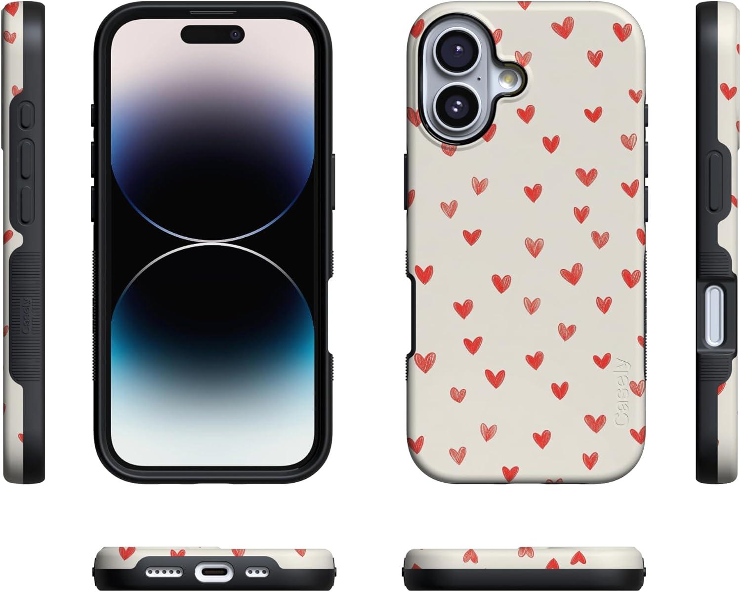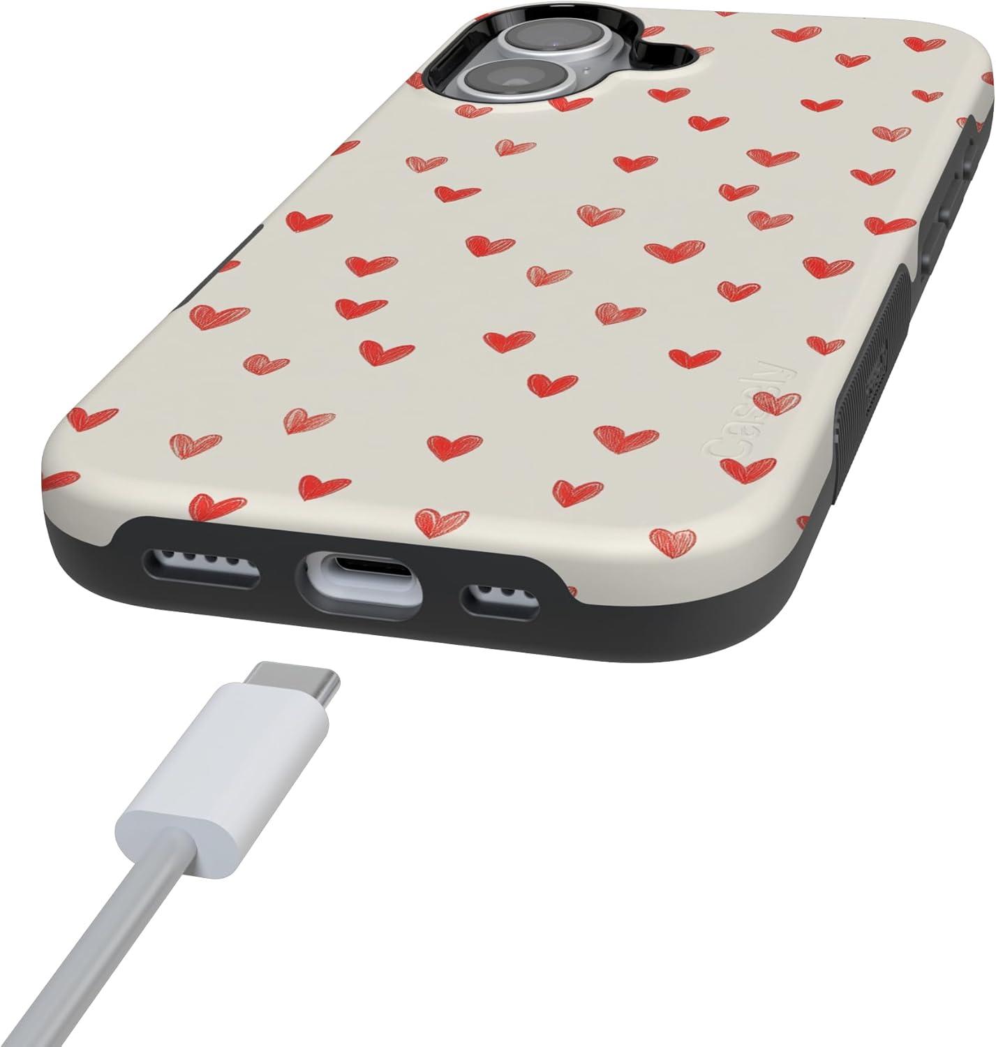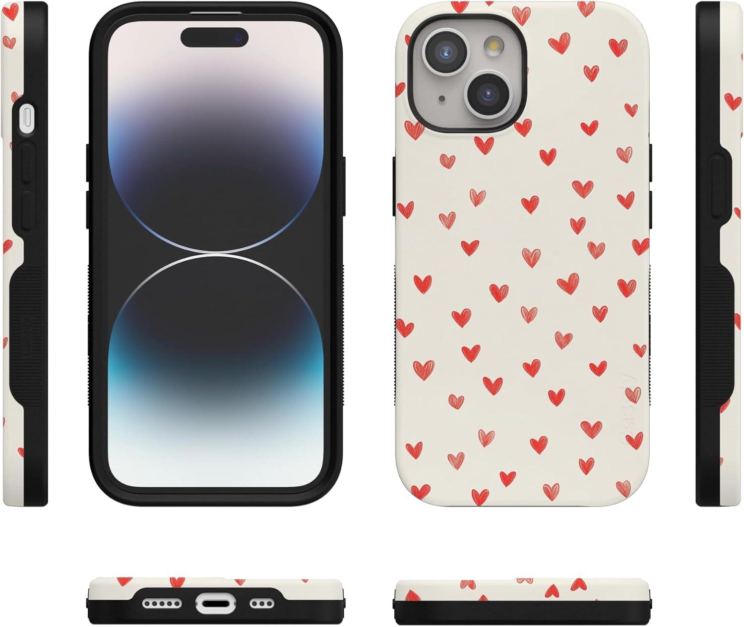 Casely iPhone 15 Pro Case | Heart Noir | Tiny Hearts | Bold Protective Design | MagSafe Compatible Design(Love Letters | Doodle Hearts)