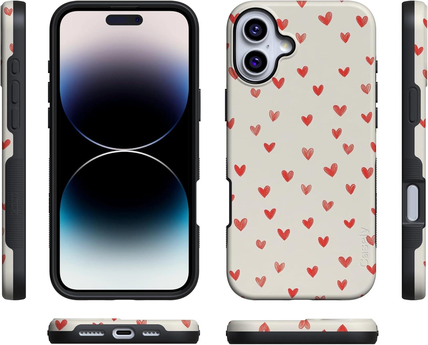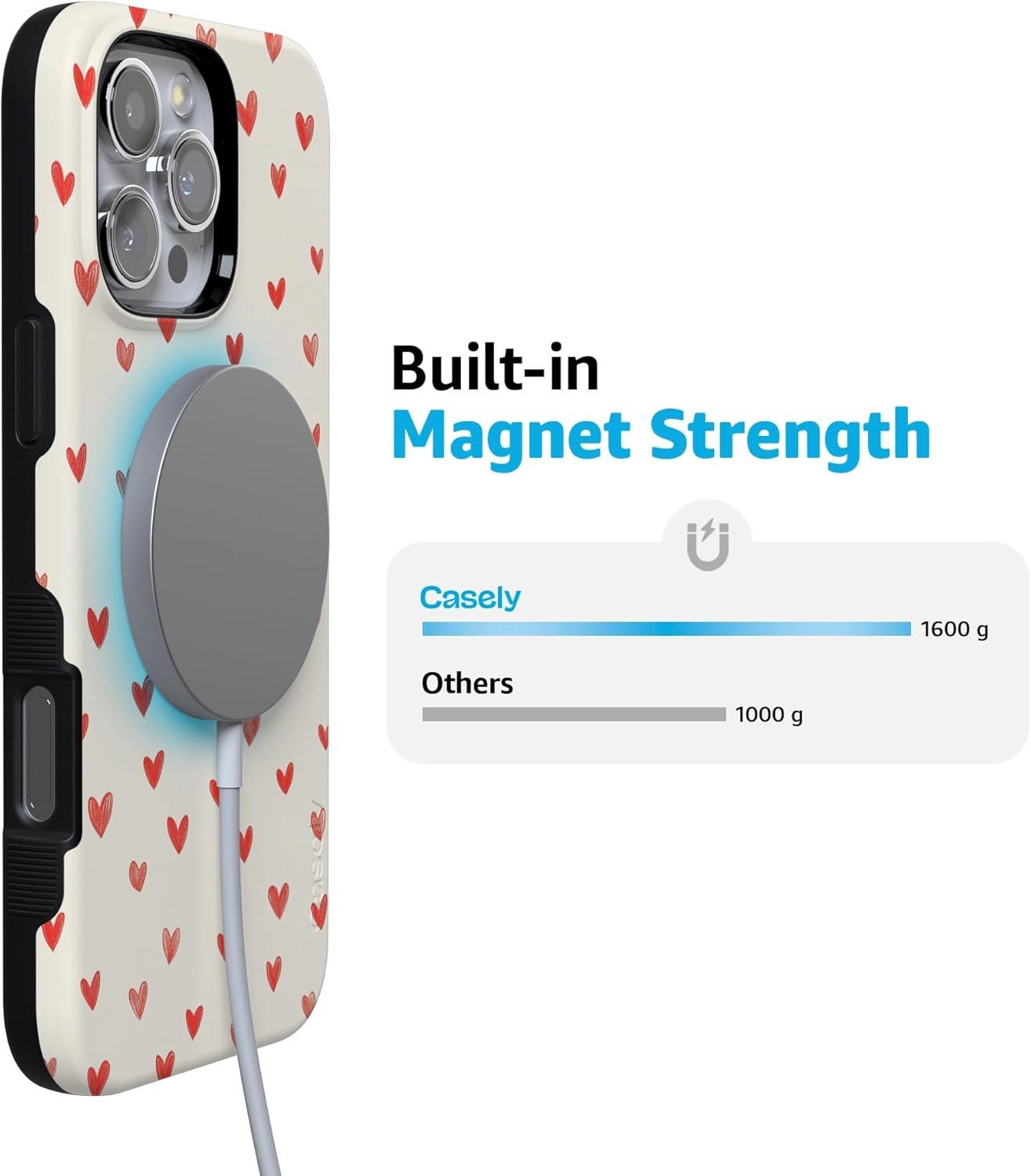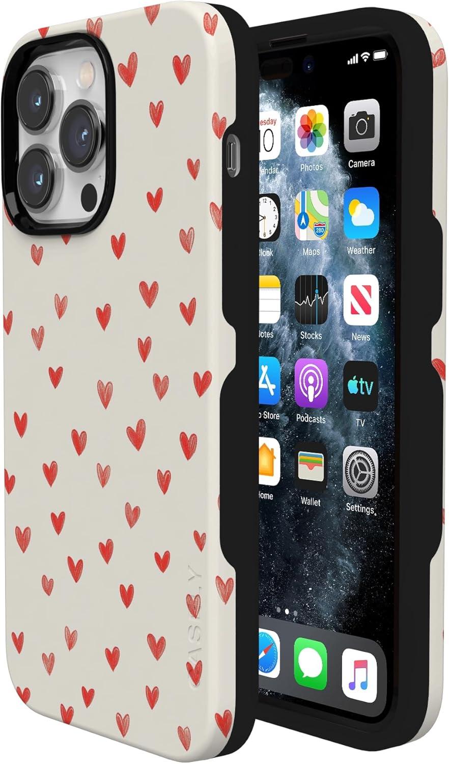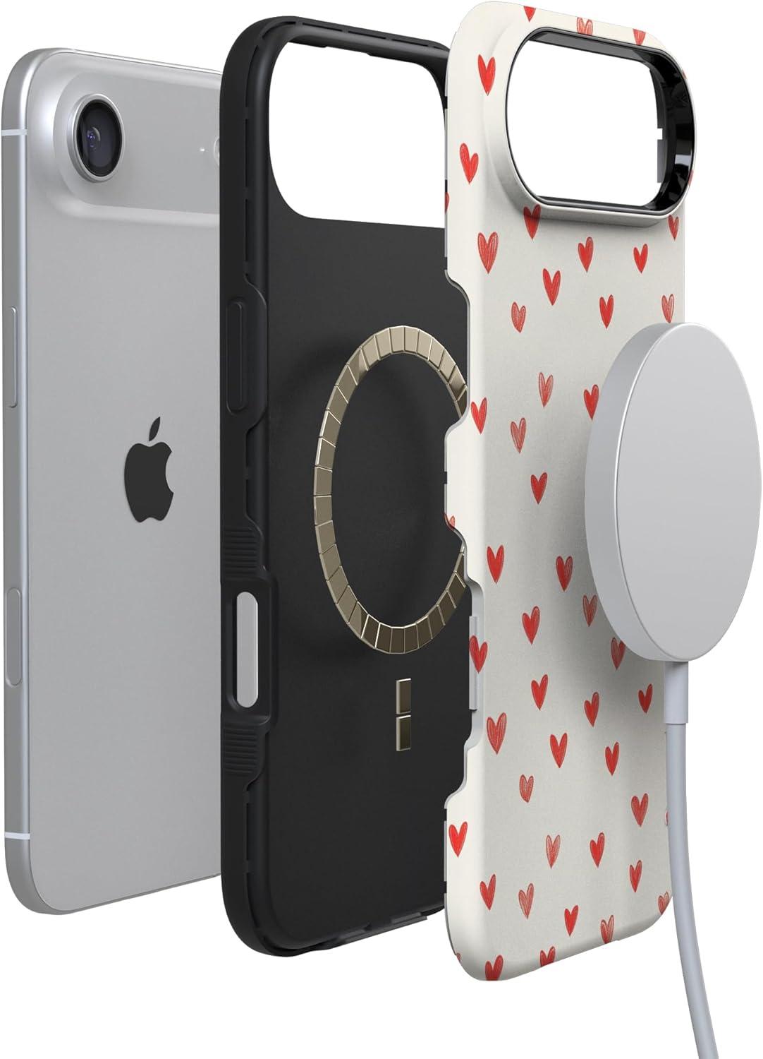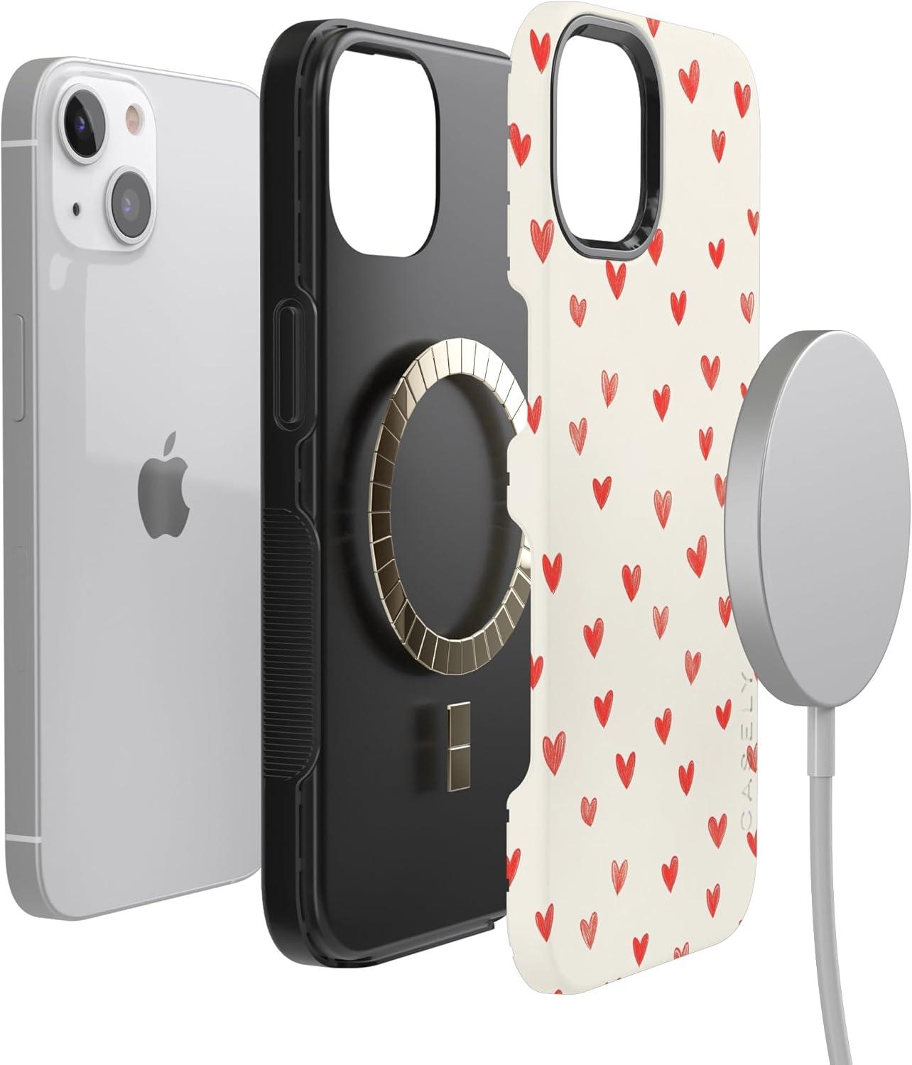 Casely iPhone 15 Pro Case | Heart Noir | Tiny Hearts | Bold Protective Design | MagSafe Compatible Design(Love Letters | Doodle Hearts)