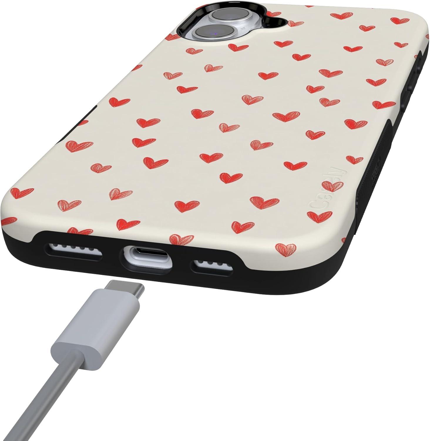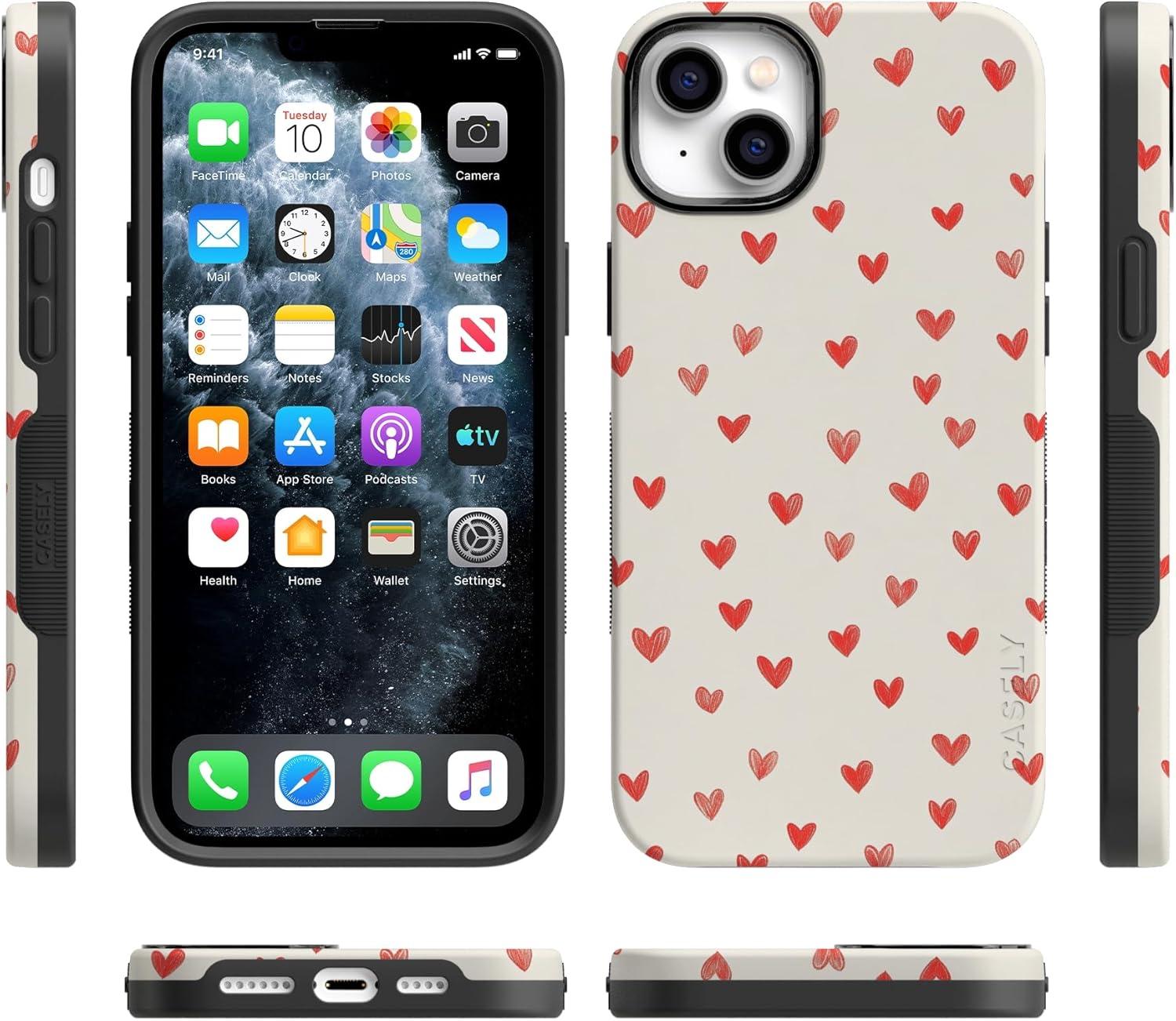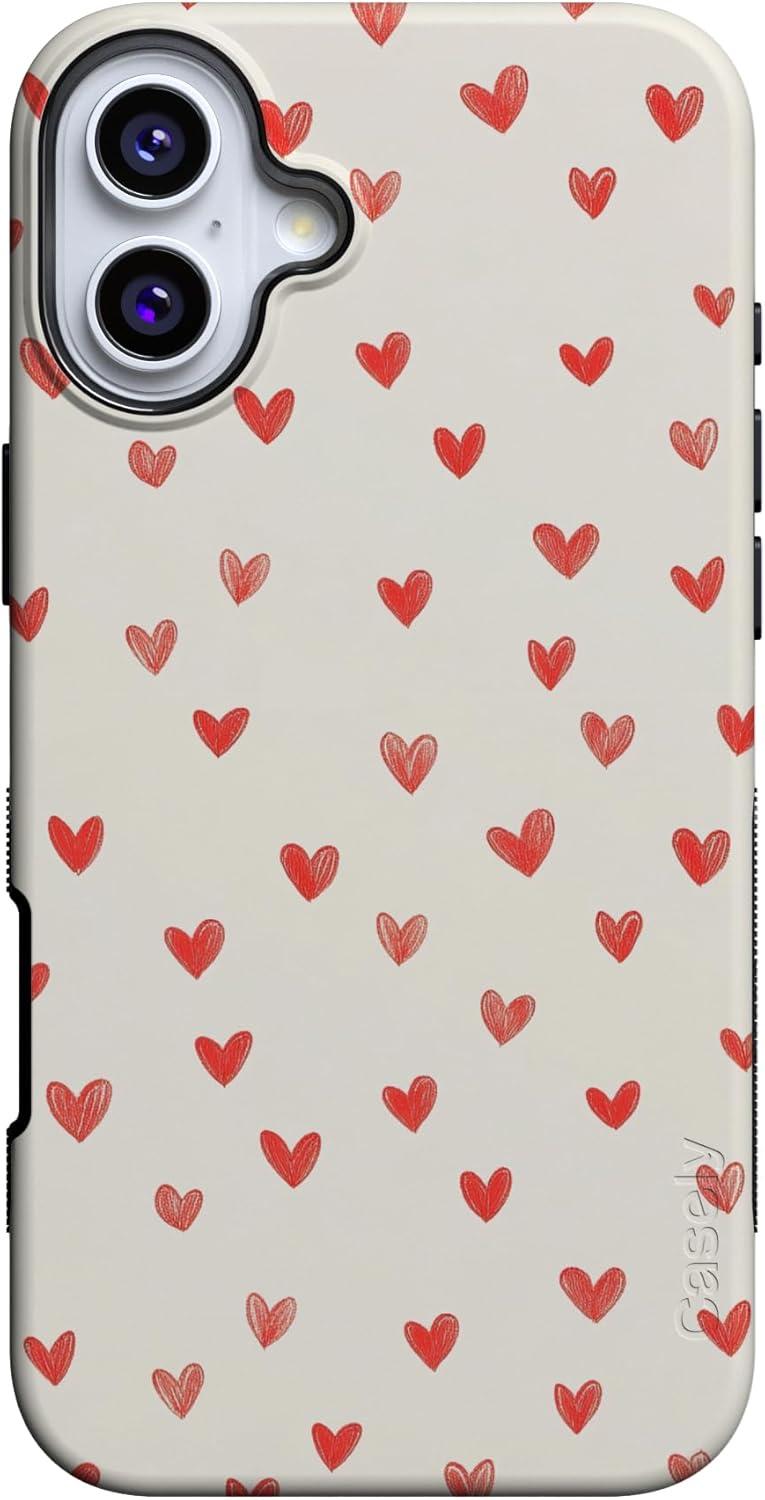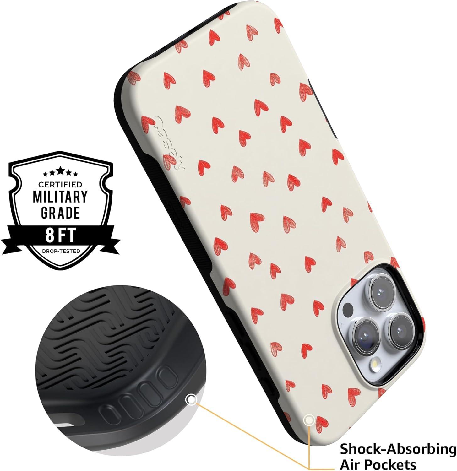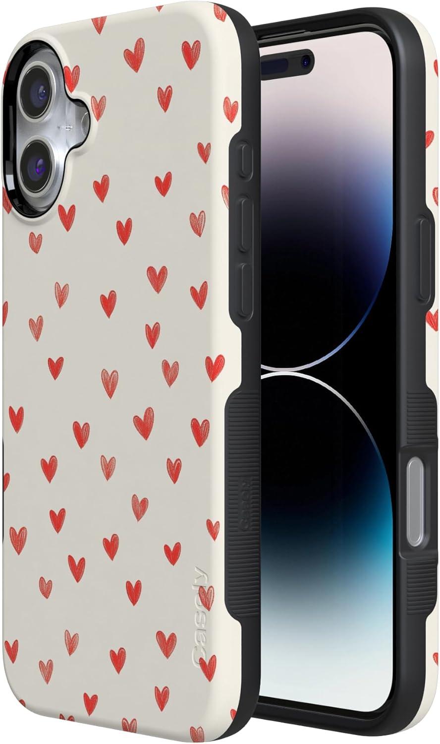 Casely iPhone 15 Pro Case | Heart Noir | Tiny Hearts | Bold Protective Design | MagSafe Compatible Design(Love Letters | Doodle Hearts)
