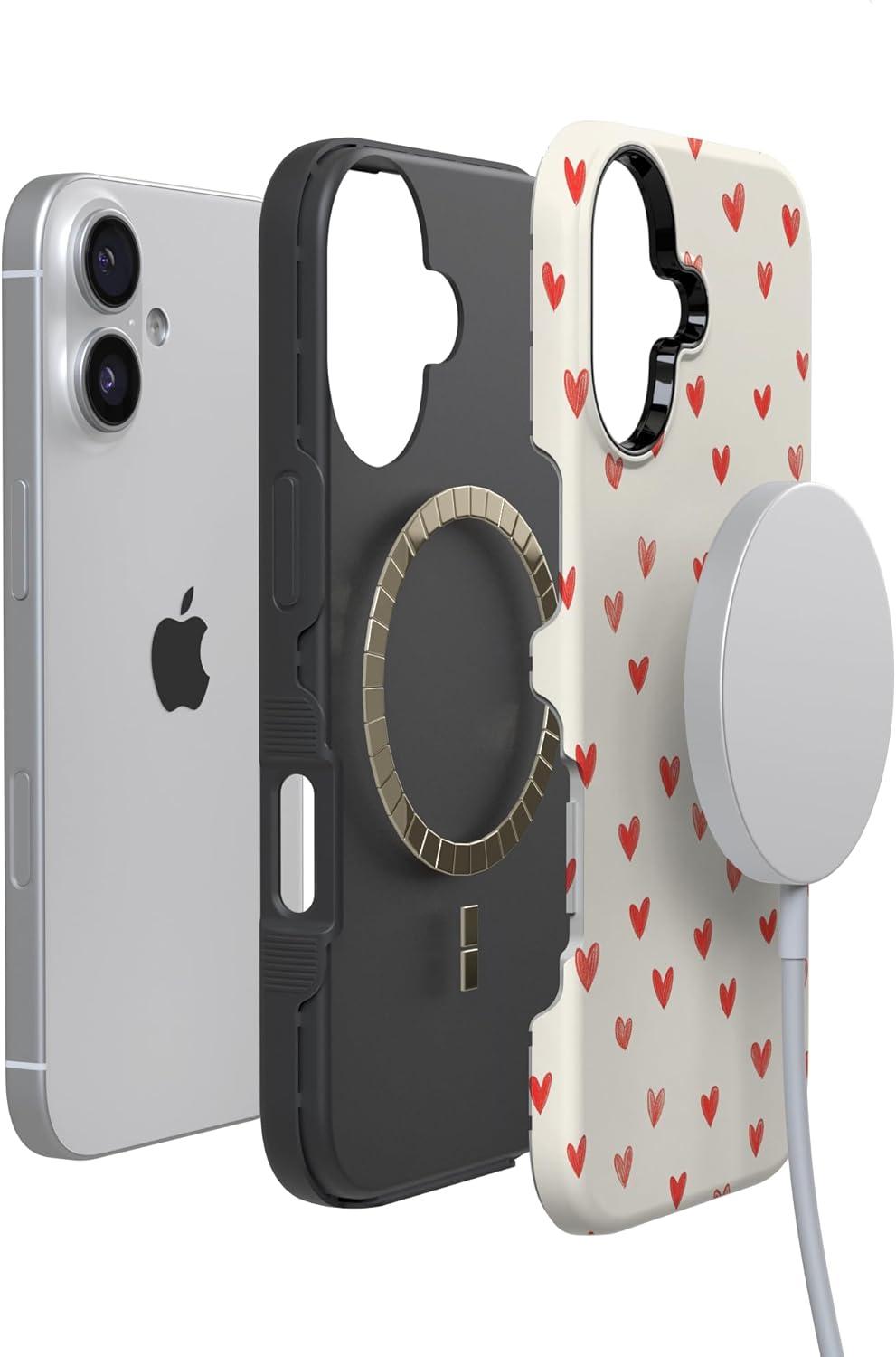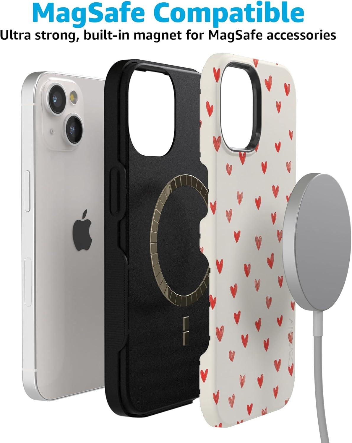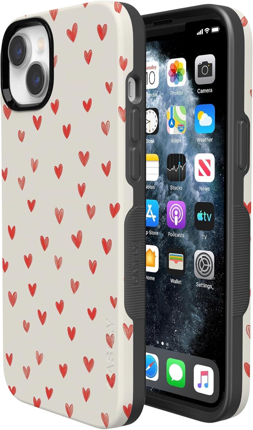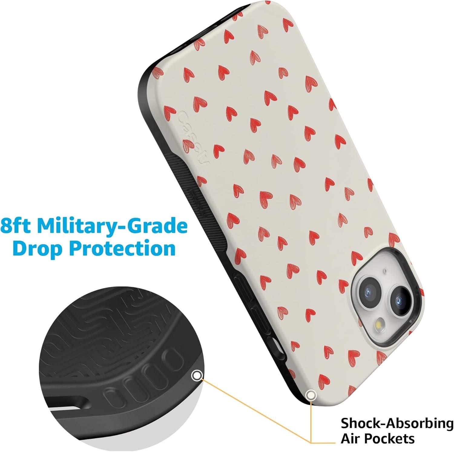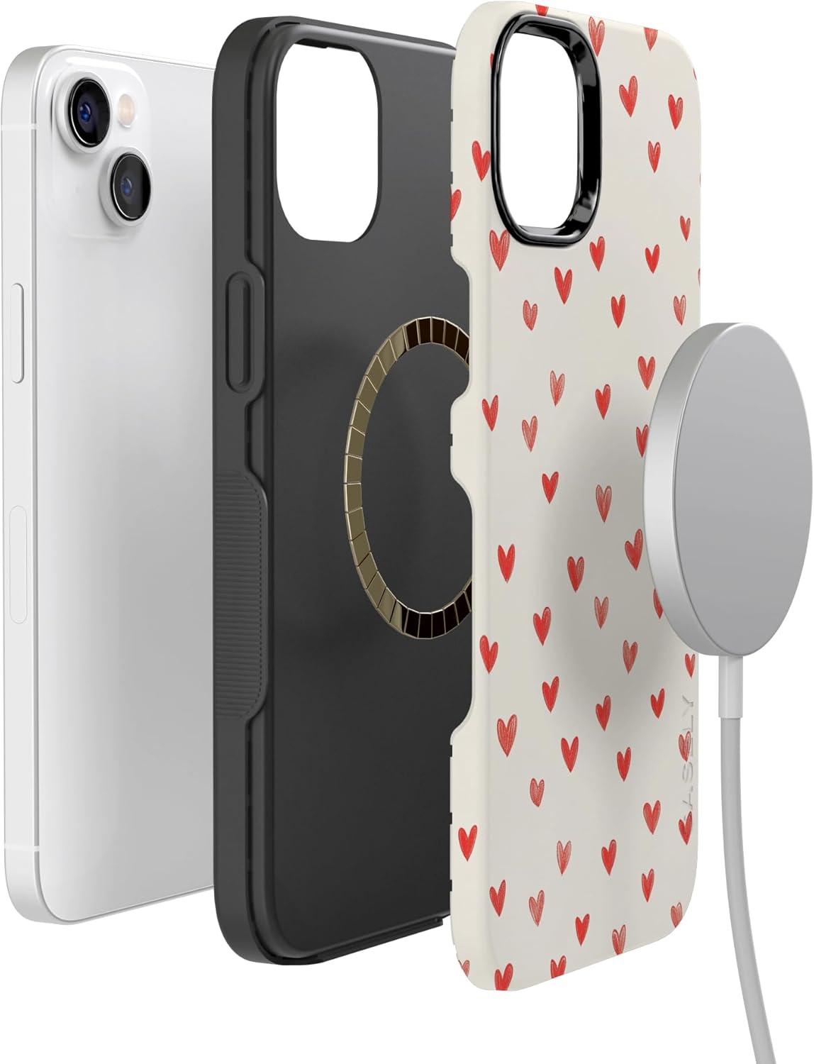 Casely iPhone 15 Pro Case | Heart Noir | Tiny Hearts | Bold Protective Design | MagSafe Compatible Design(Love Letters | Doodle Hearts)