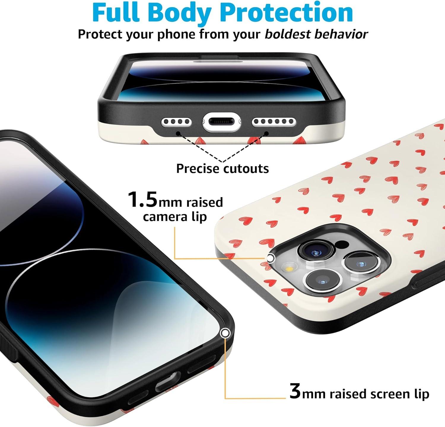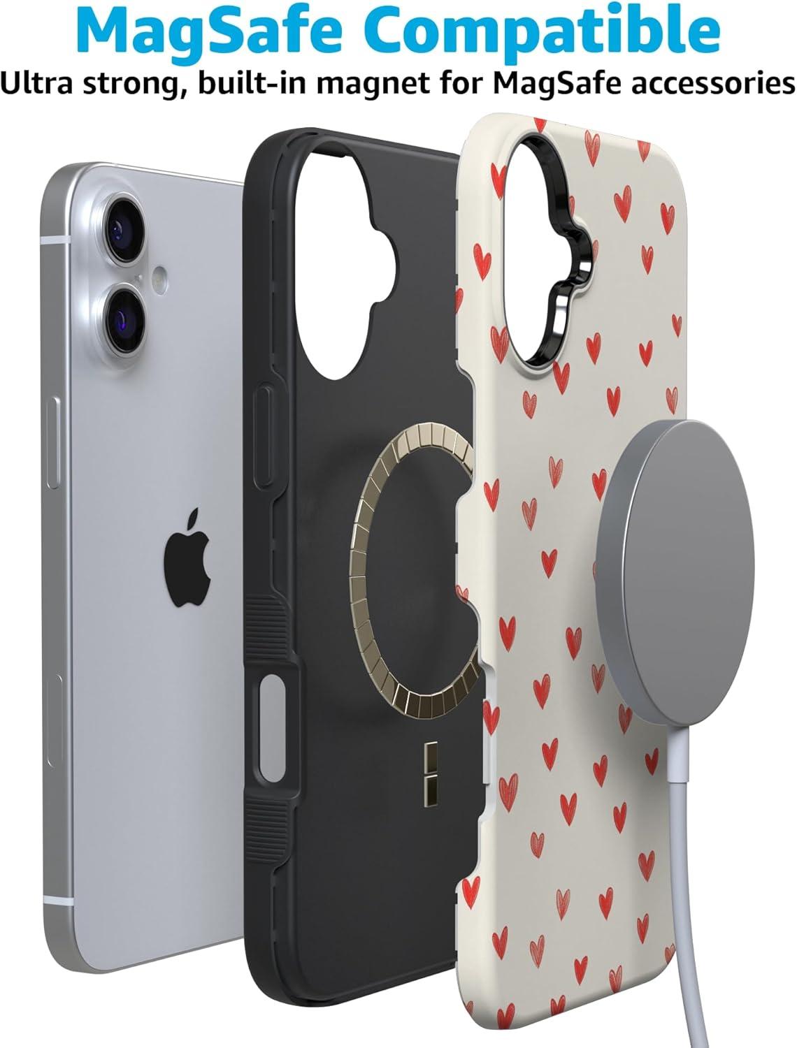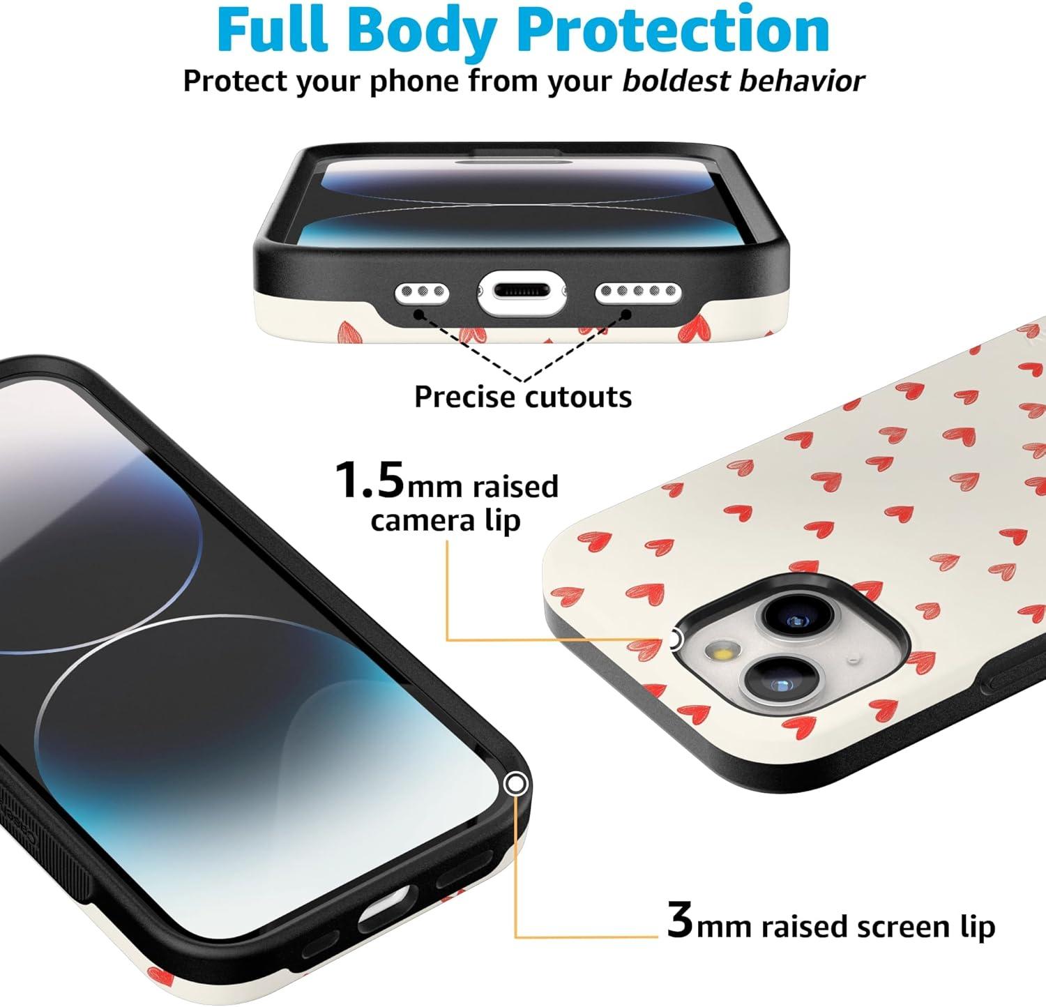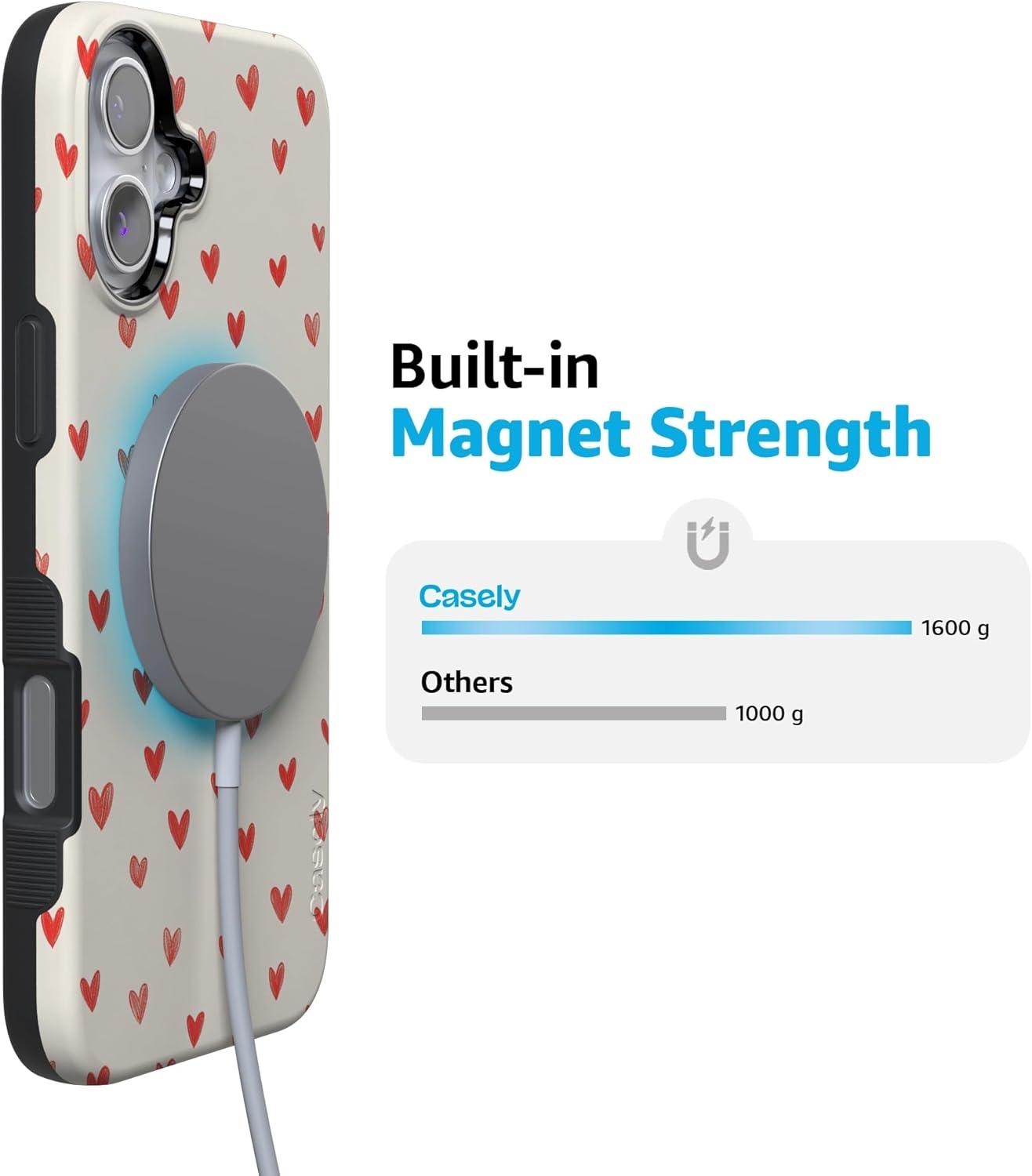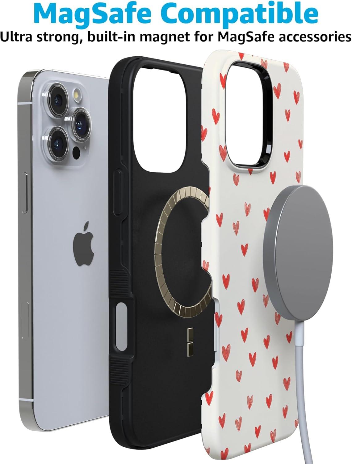 Casely iPhone 15 Pro Case | Heart Noir | Tiny Hearts | Bold Protective Design | MagSafe Compatible Design(Love Letters | Doodle Hearts)