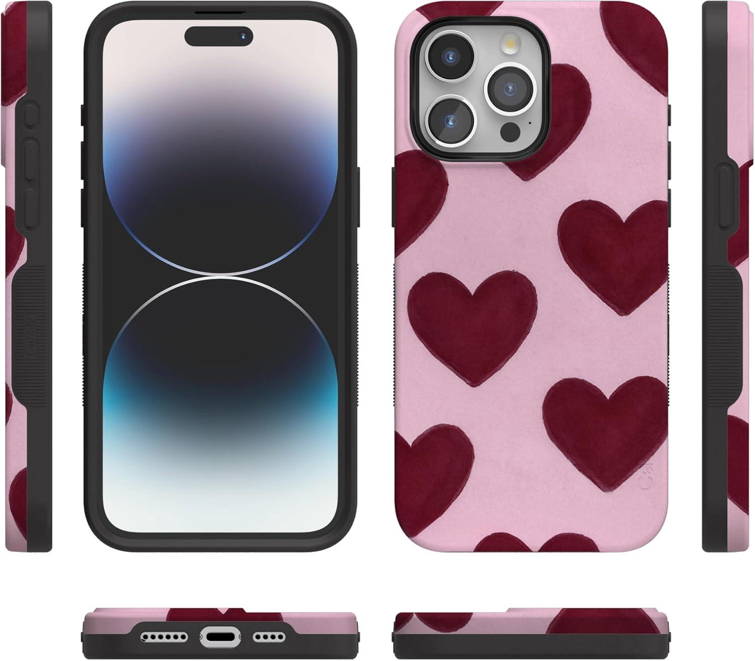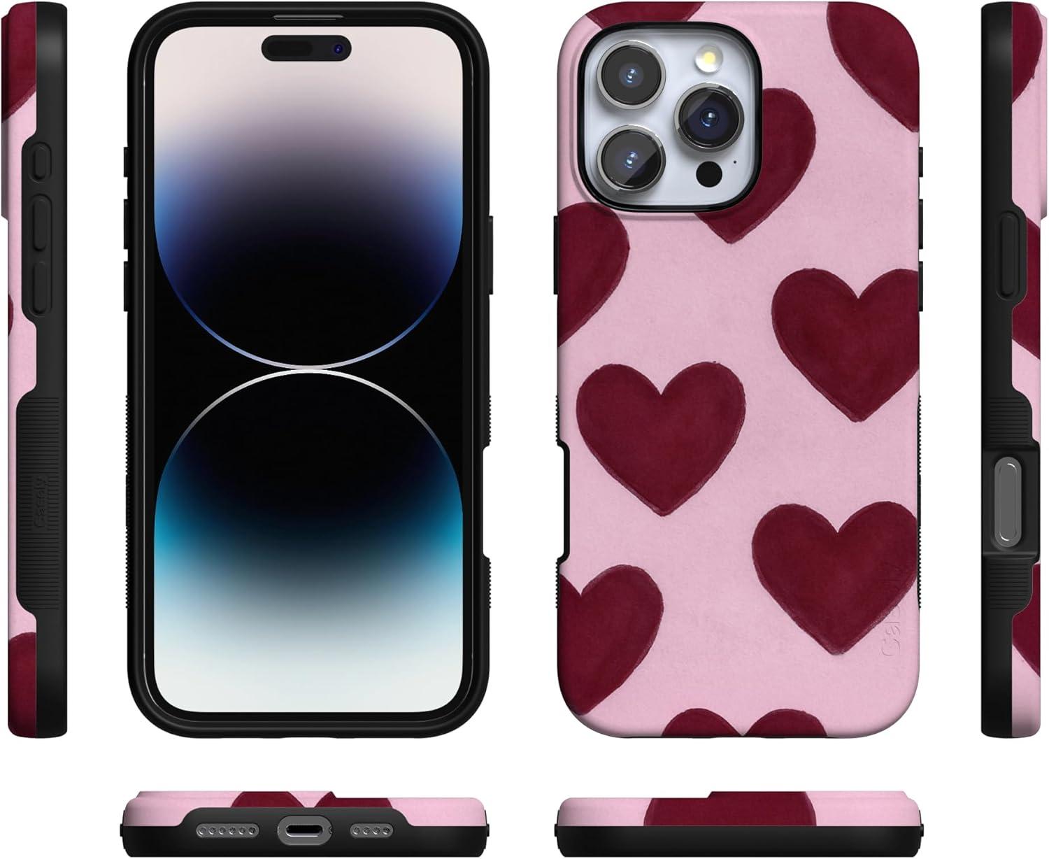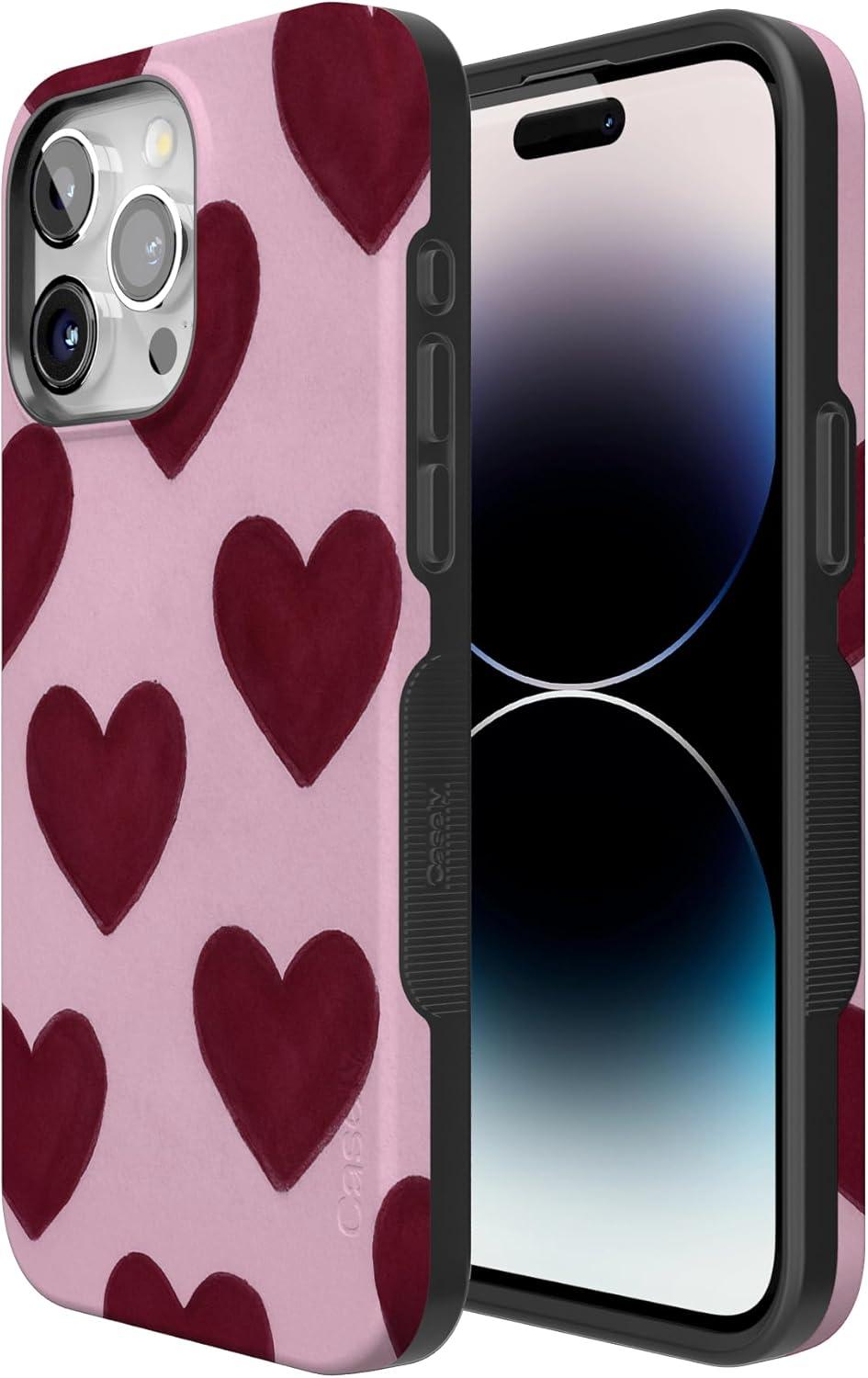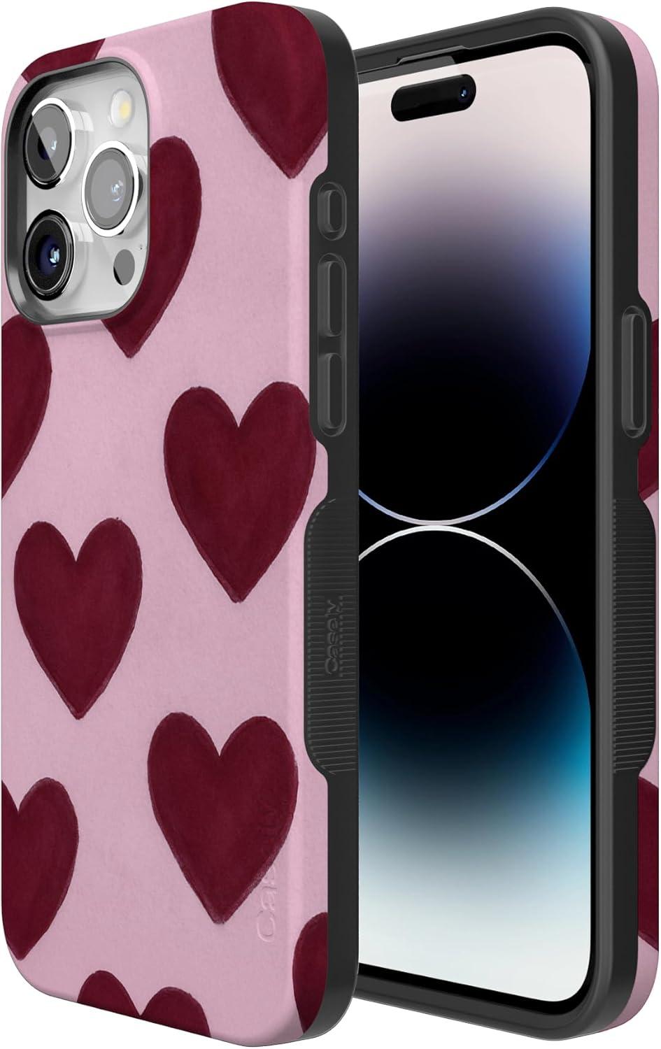 Casely iPhone 15 Pro Case | Heart Noir | Tiny Hearts | Bold Protective Design | MagSafe Compatible Design(Whole Lotta Love | Plum Hearts)