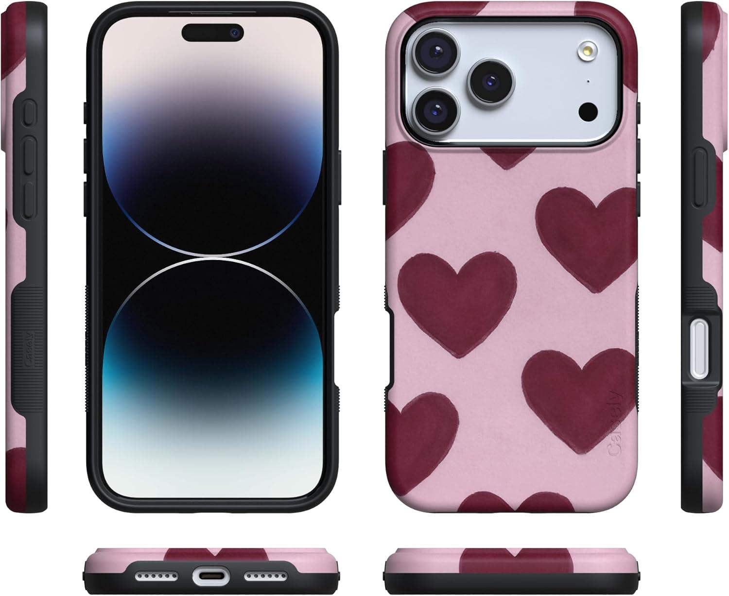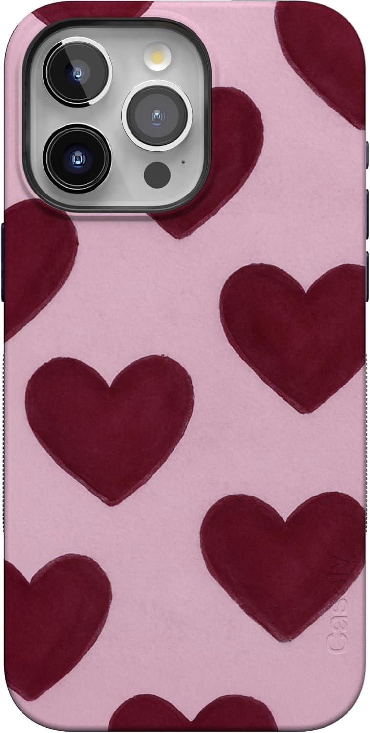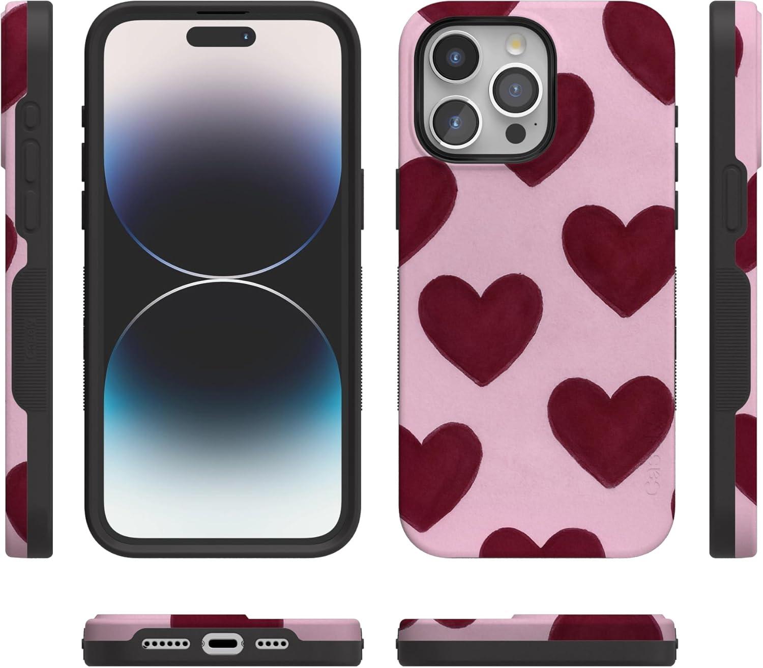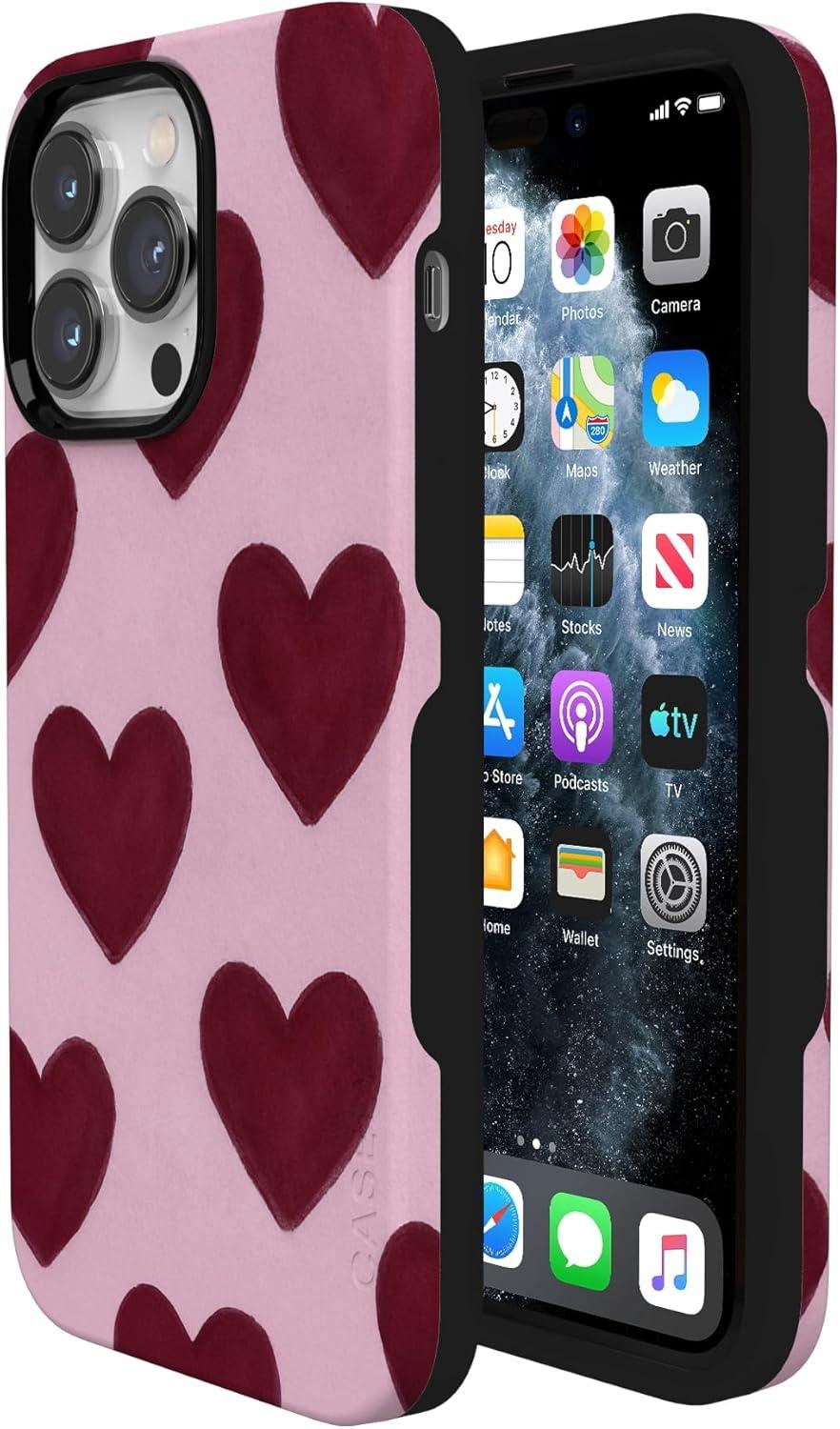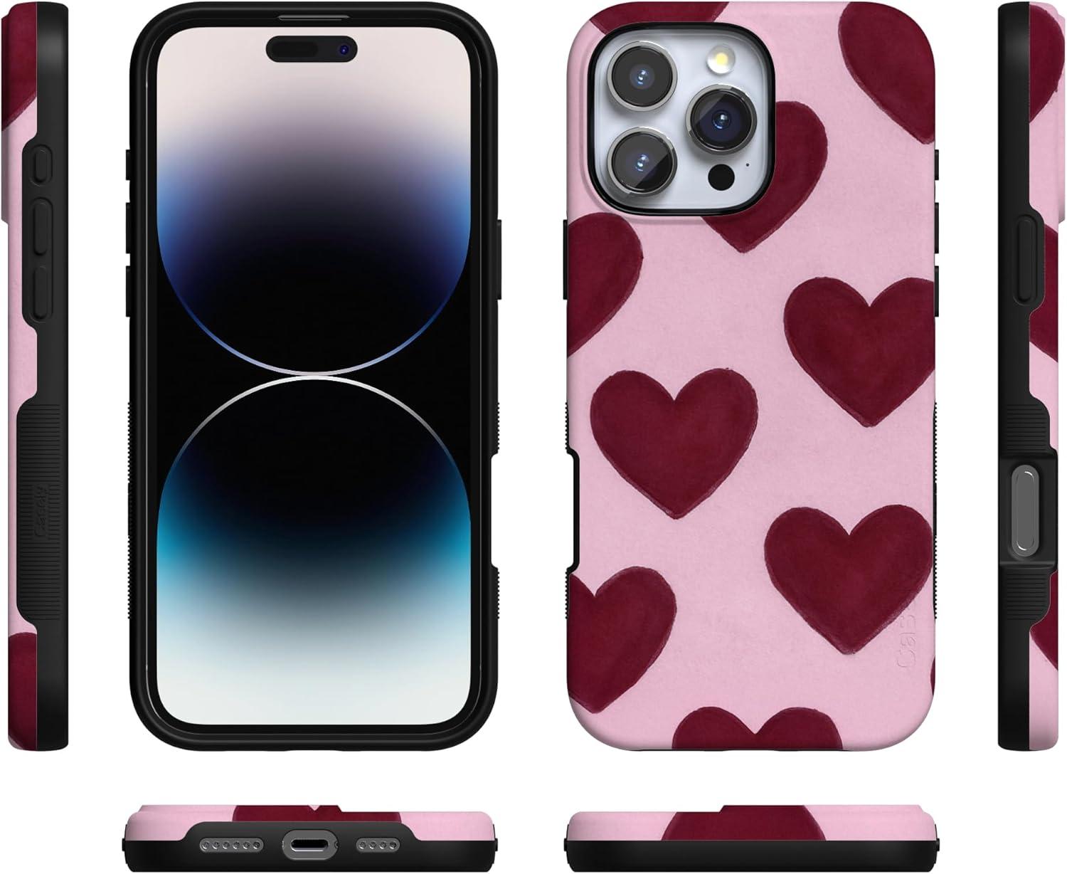 Casely iPhone 15 Pro Case | Heart Noir | Tiny Hearts | Bold Protective Design | MagSafe Compatible Design(Whole Lotta Love | Plum Hearts)