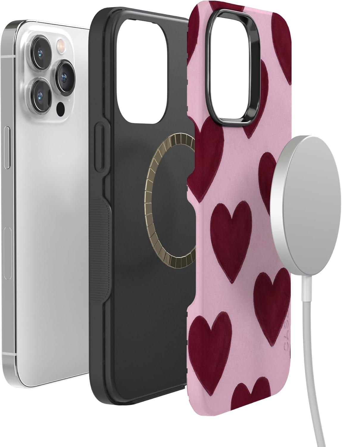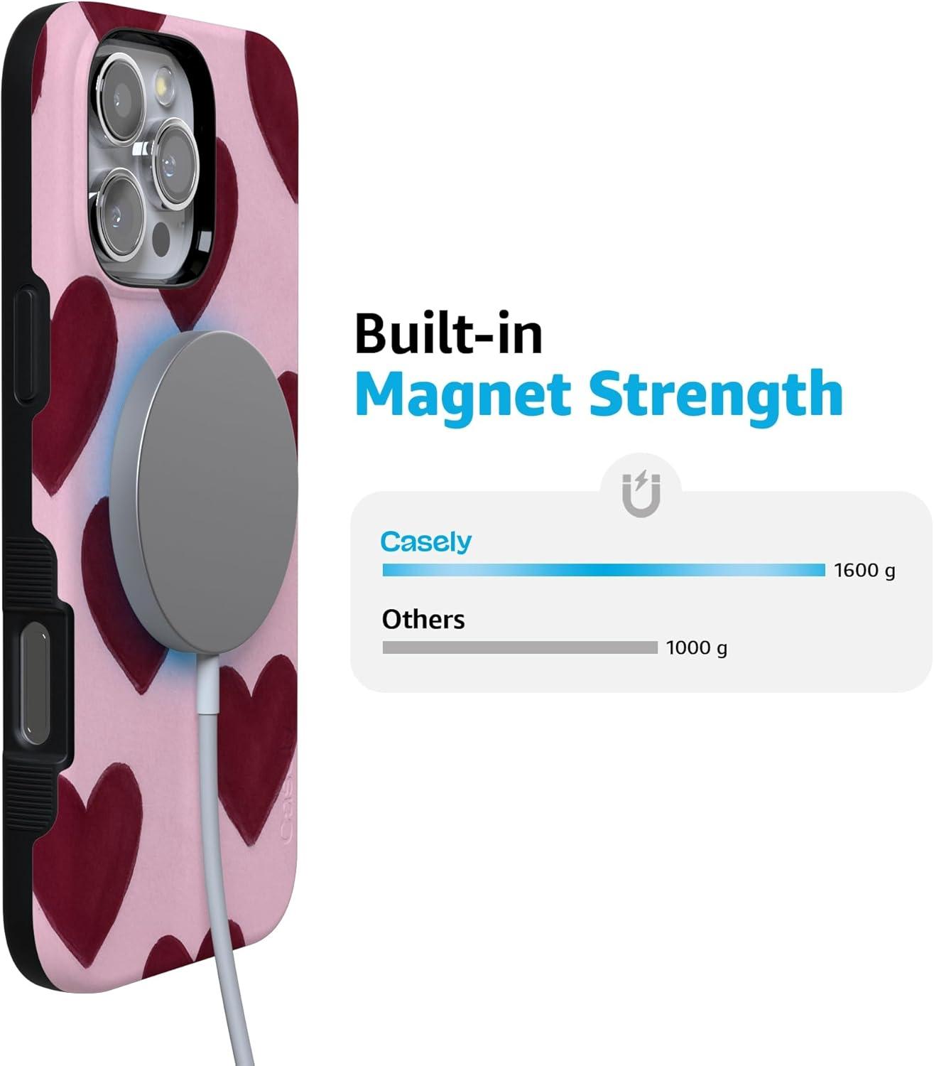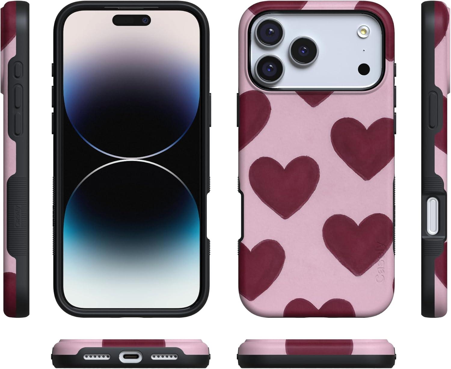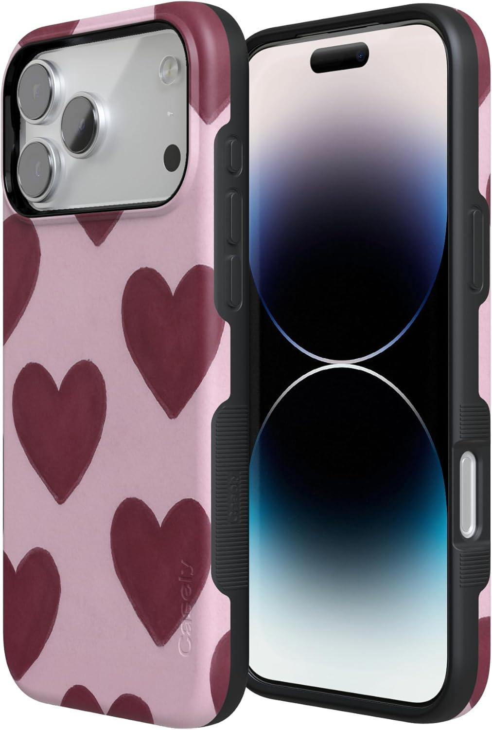 Casely iPhone 15 Pro Case | Heart Noir | Tiny Hearts | Bold Protective Design | MagSafe Compatible Design(Whole Lotta Love | Plum Hearts)