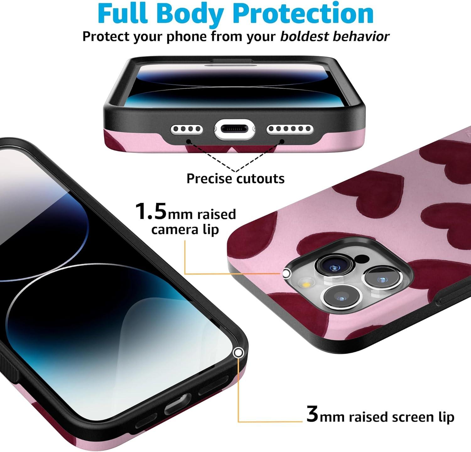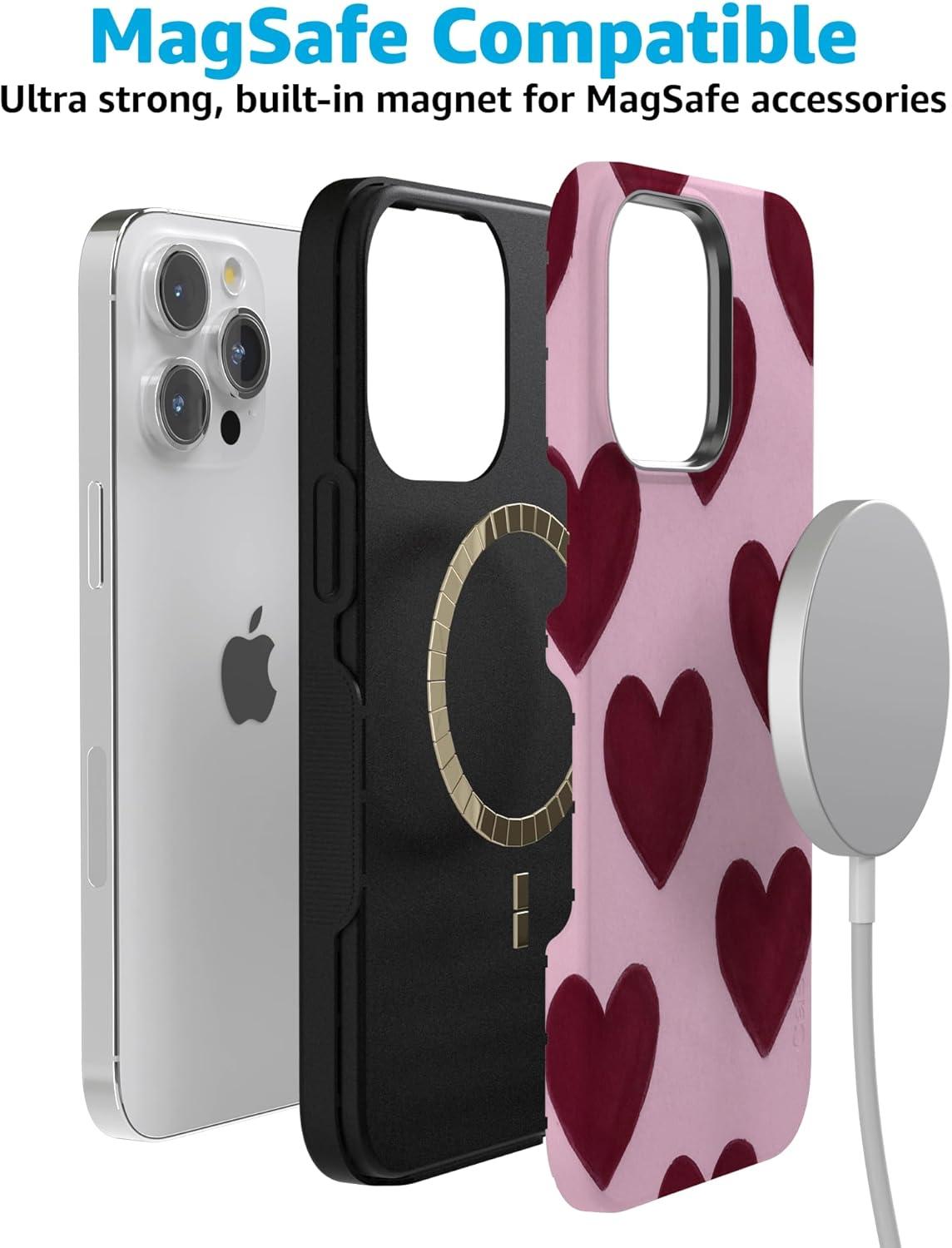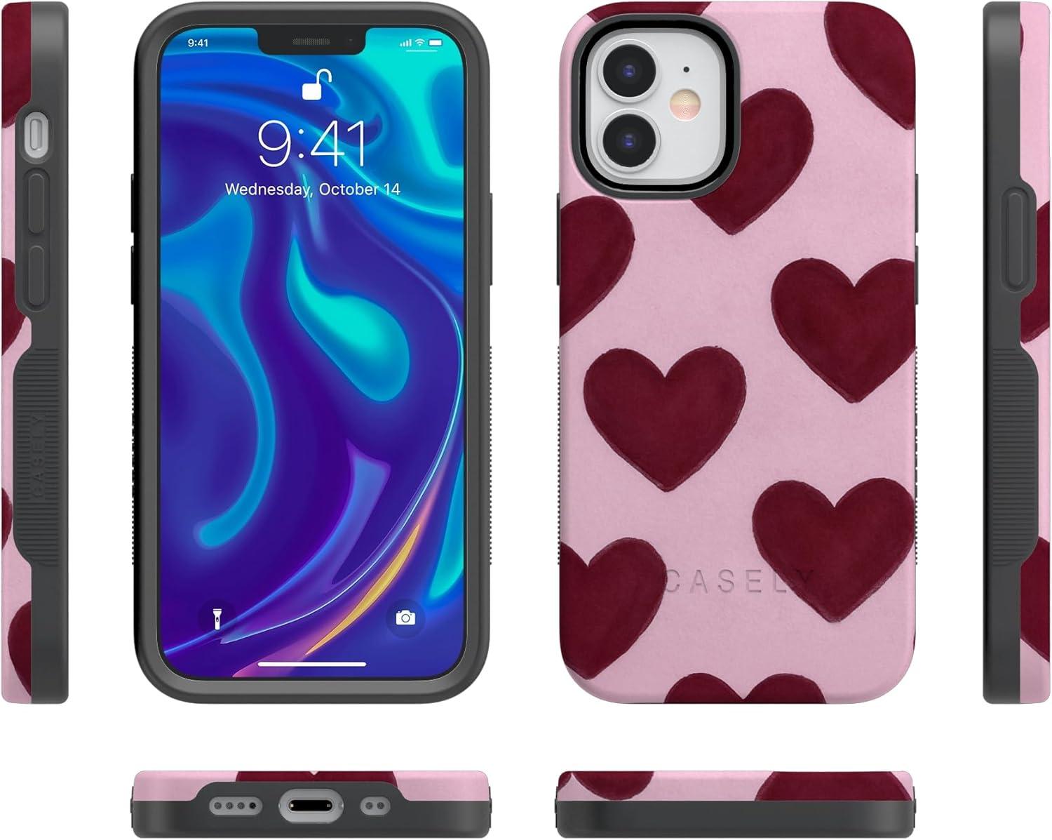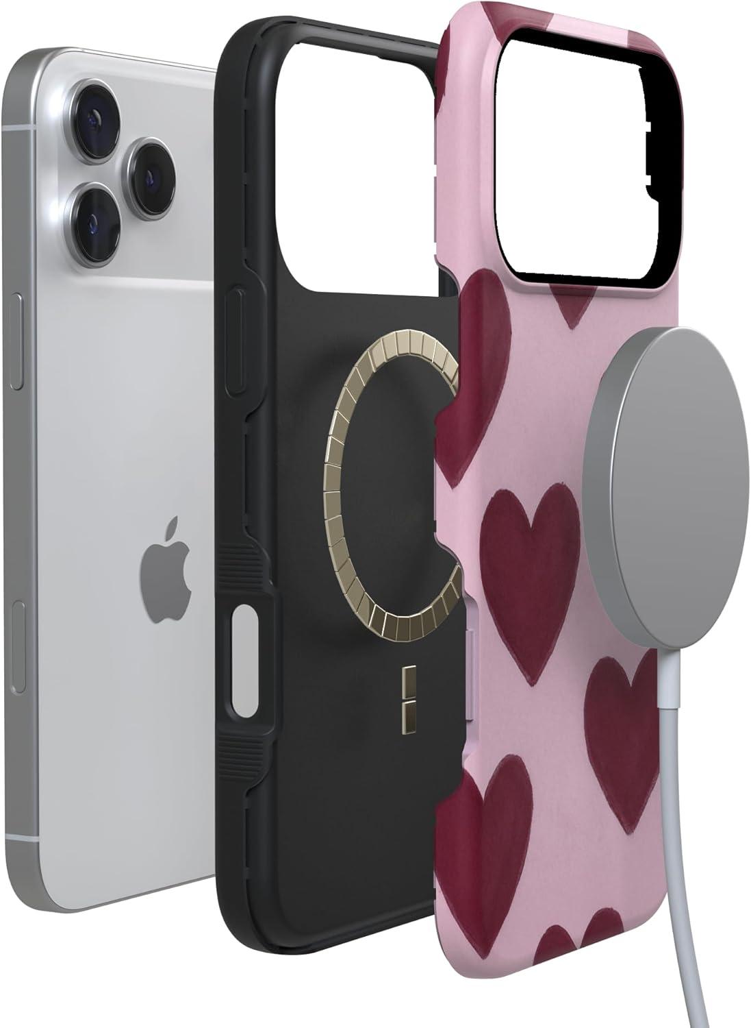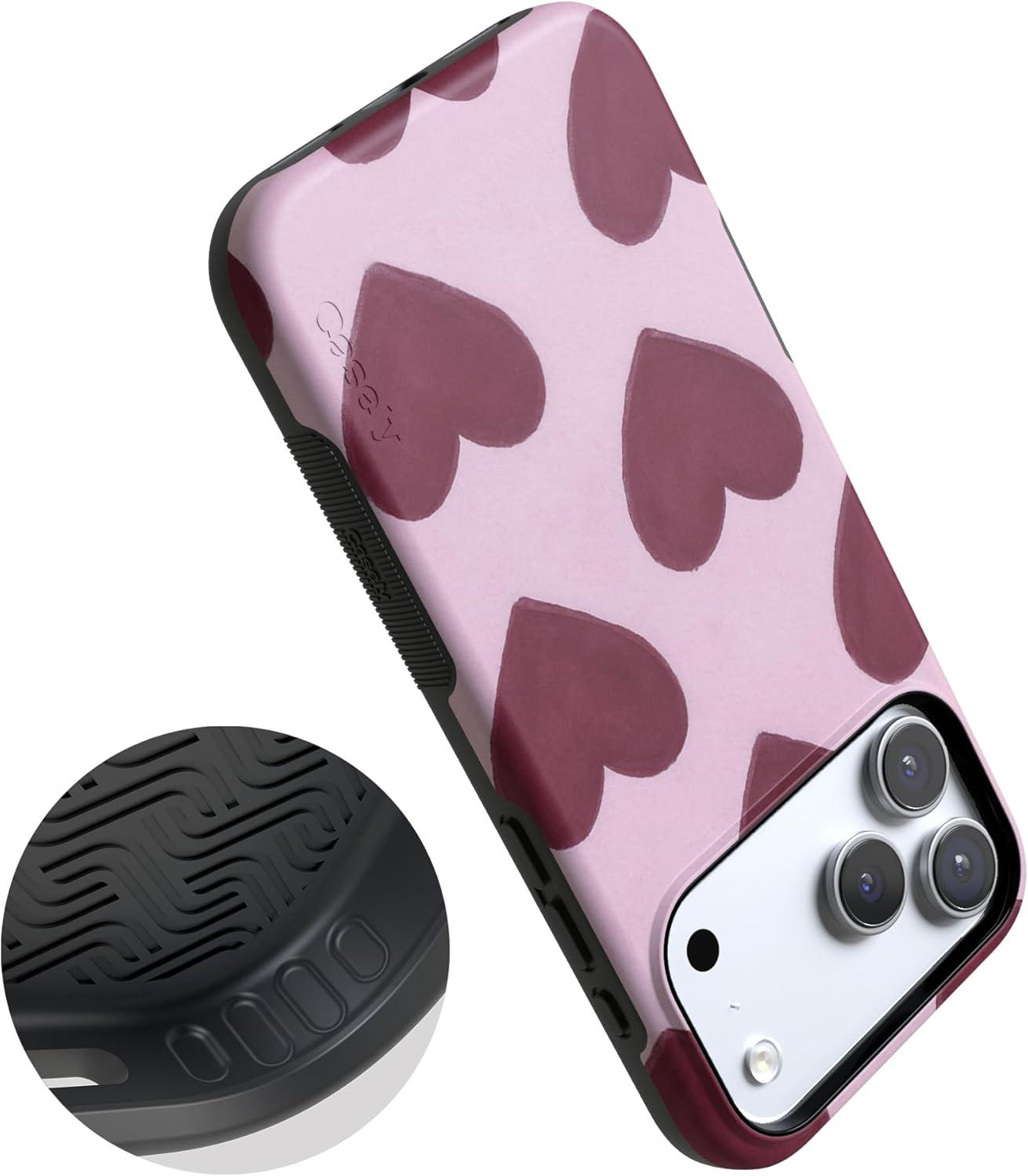 Casely iPhone 15 Pro Case | Heart Noir | Tiny Hearts | Bold Protective Design | MagSafe Compatible Design(Whole Lotta Love | Plum Hearts)
