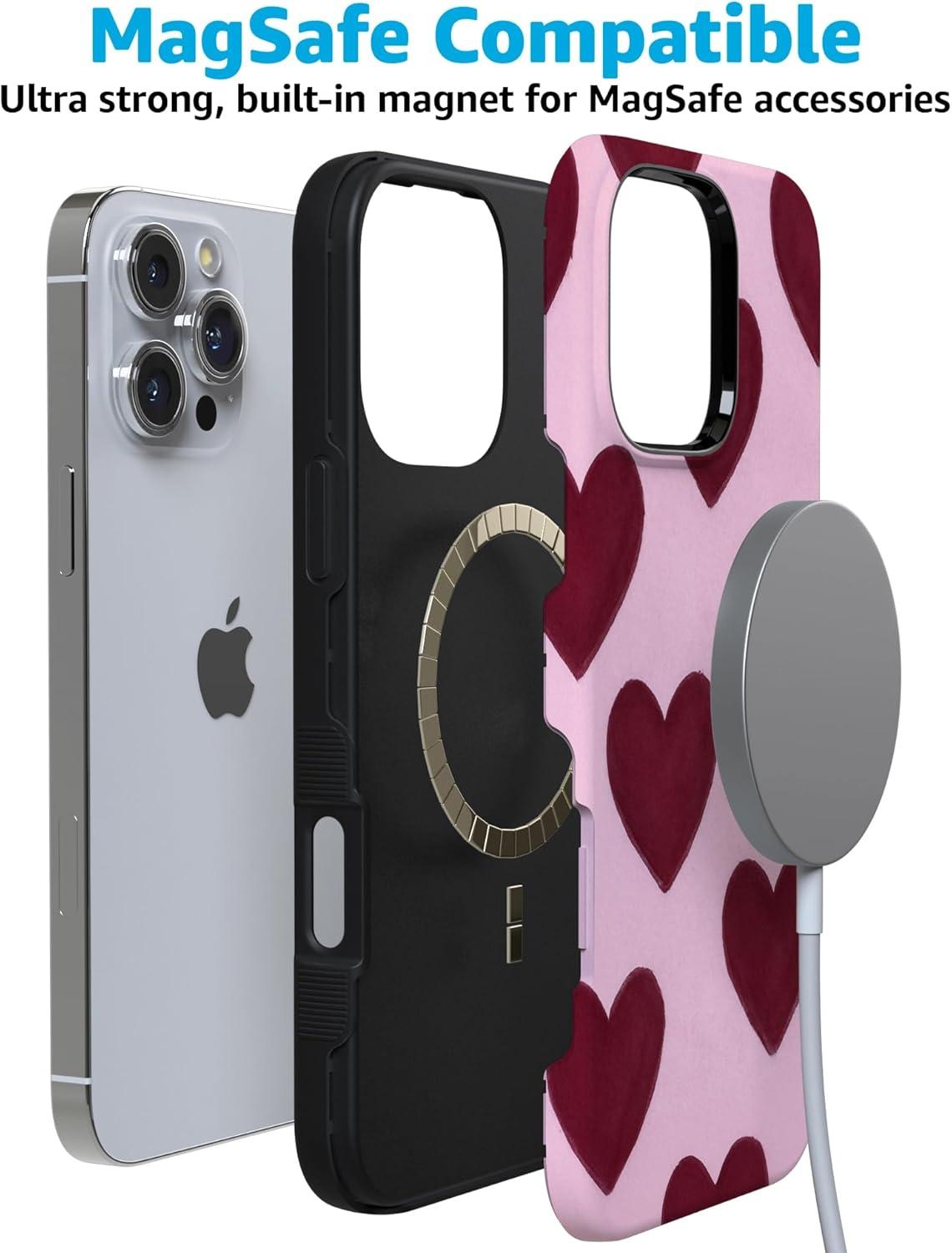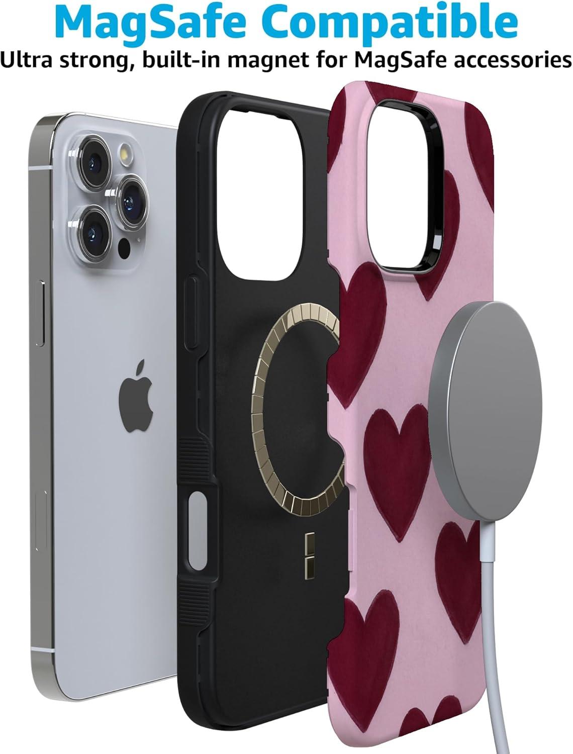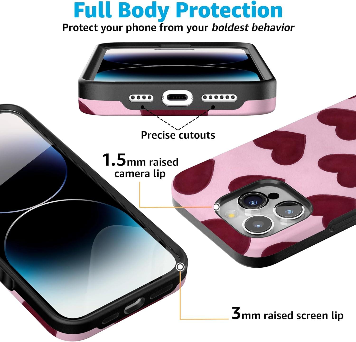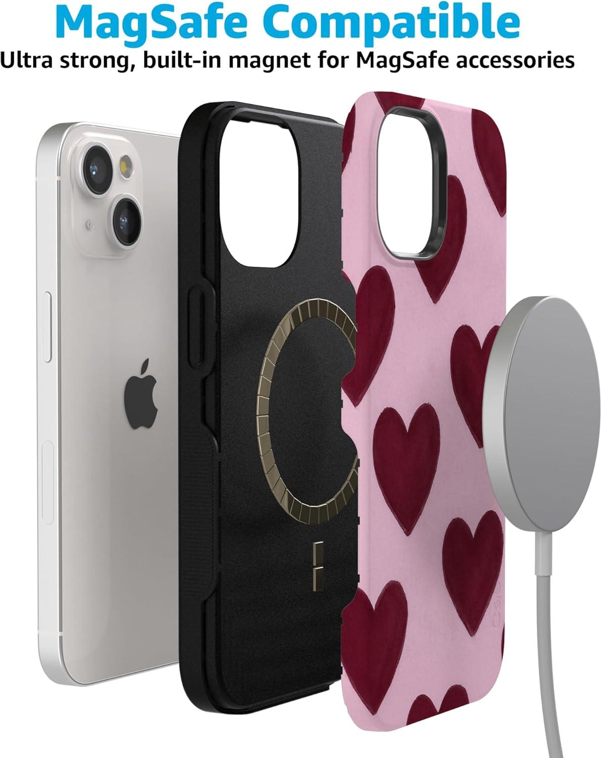 Casely iPhone 15 Pro Case | Heart Noir | Tiny Hearts | Bold Protective Design | MagSafe Compatible Design(Whole Lotta Love | Plum Hearts)