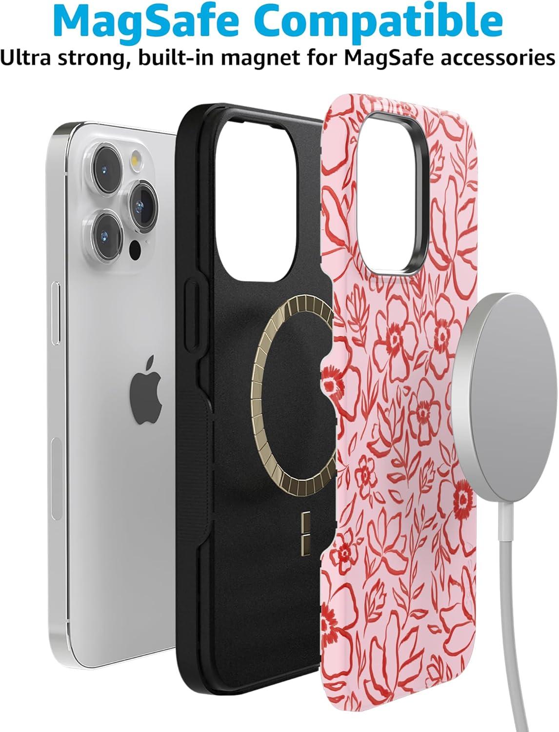 Casely iPhone 15 Pro Case | Keep It Classic | Crayola Crayon Box | Bold Protective Design | Compatible with MagSafe(Blush Garden | Floral Doodle)