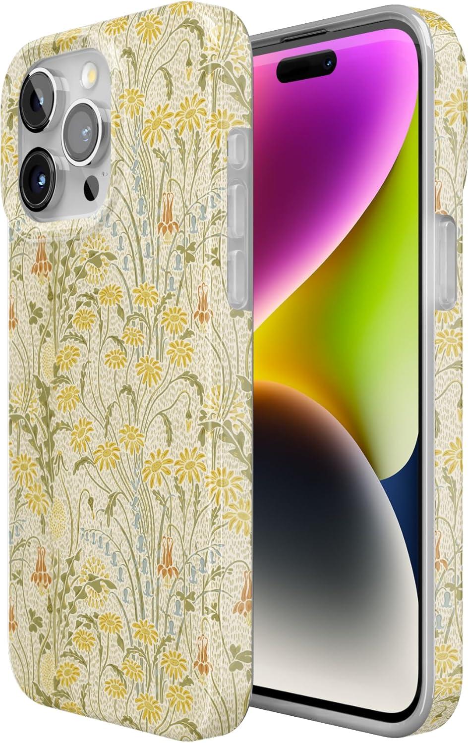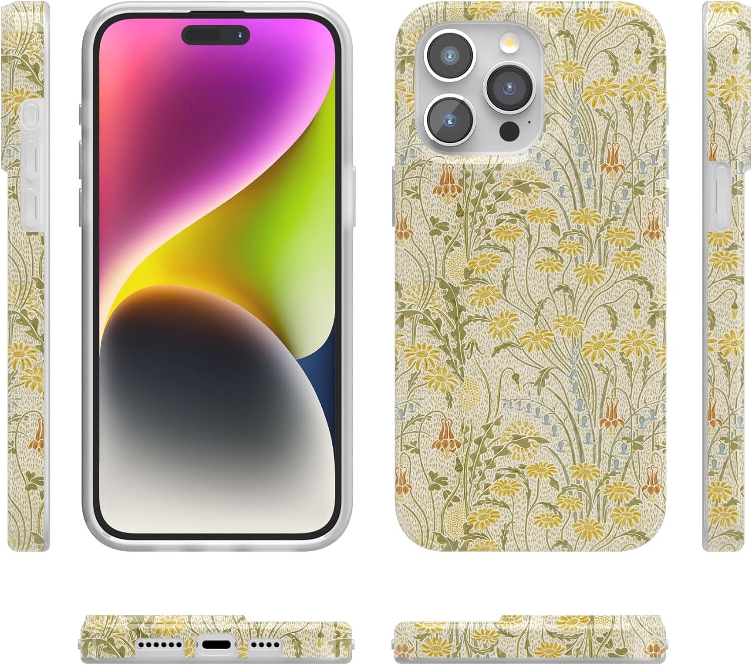 Casely iPhone 15 Pro Case | Midnight Sky | Navy Enchanted Shimmer Case | Compatible with MagSafe and Action Button | Ultra-Slim Classic Fit(Boho Blooms | Golden Floral)