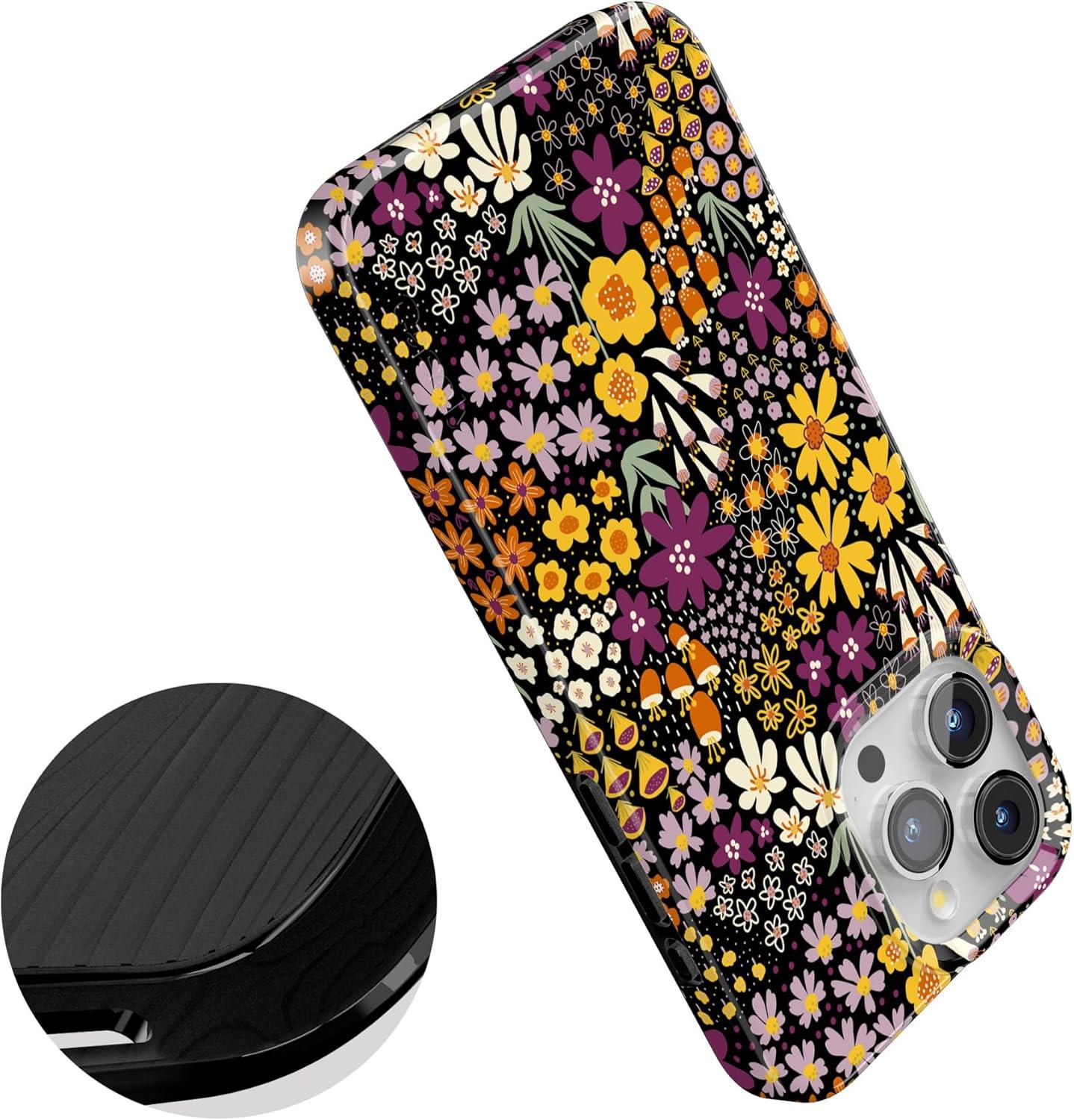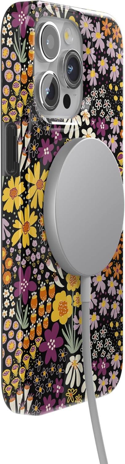 Casely iPhone 15 Pro Case | Midnight Sky | Navy Enchanted Shimmer Case | Compatible with MagSafe and Action Button | Ultra-Slim Classic Fit(Falling for You | Plum Floral)