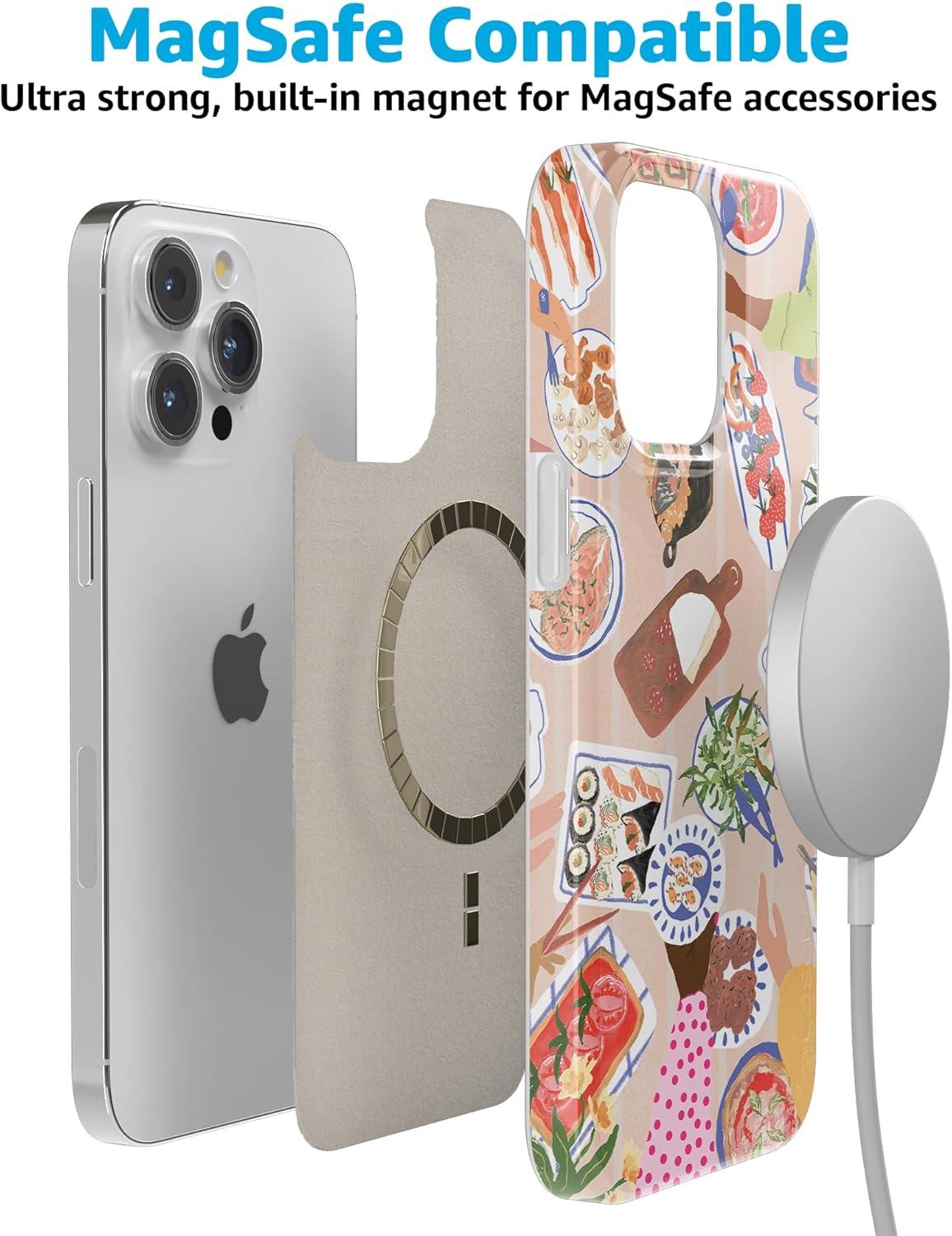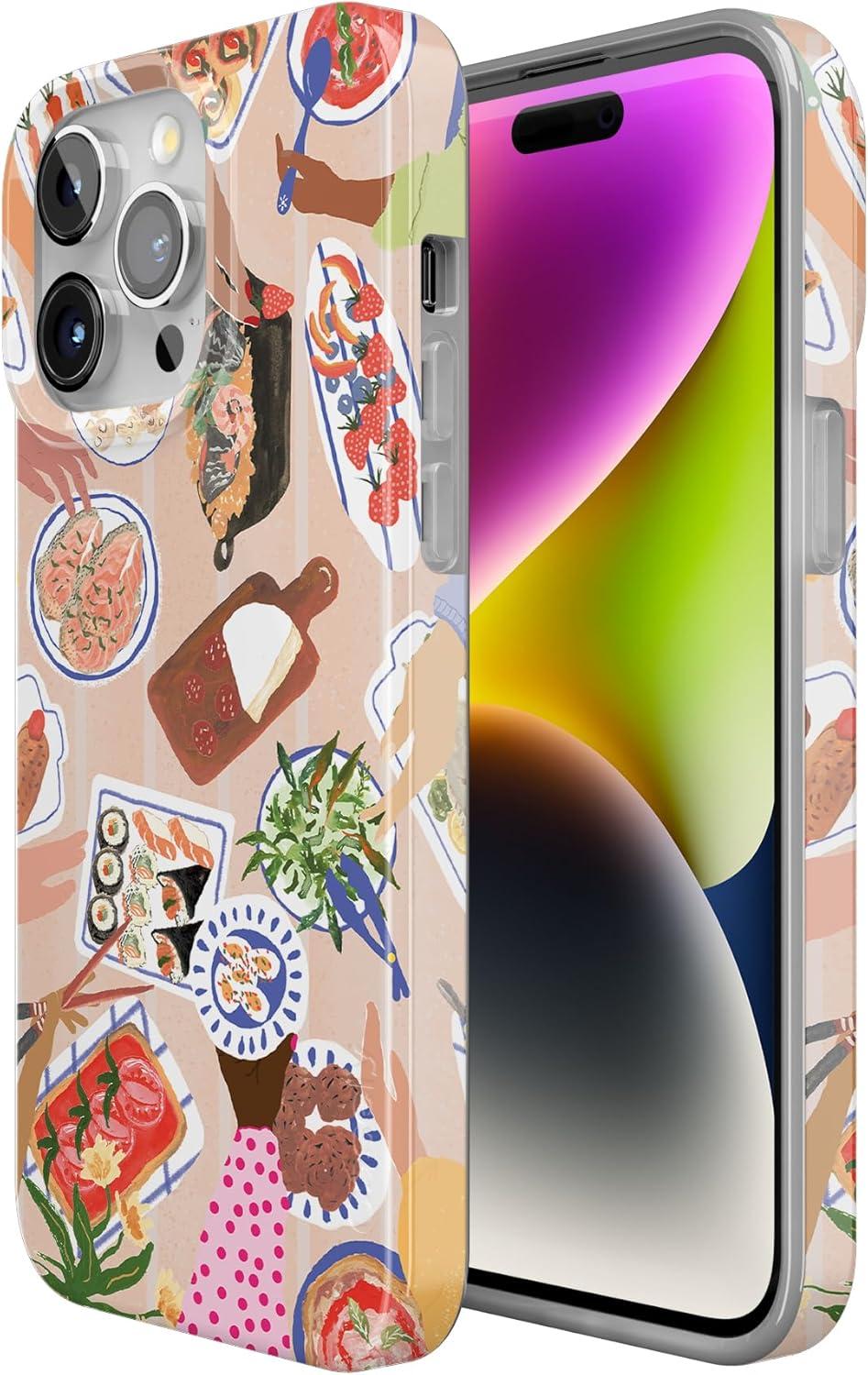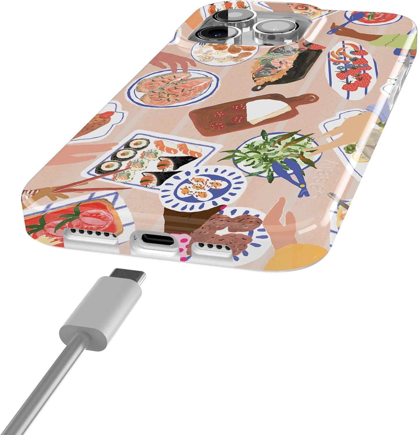 Casely iPhone 15 Pro Case | Midnight Sky | Navy Enchanted Shimmer Case | Compatible with MagSafe and Action Button | Ultra-Slim Classic Fit(Picnic Party | Painted Collage)