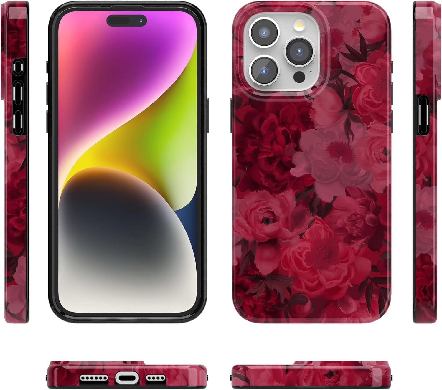Casely iPhone 15 Pro Case | Midnight Sky | Navy Enchanted Shimmer Case | Compatible with MagSafe and Action Button | Ultra-Slim Classic Fit(Romance Novel | Moody Floral)