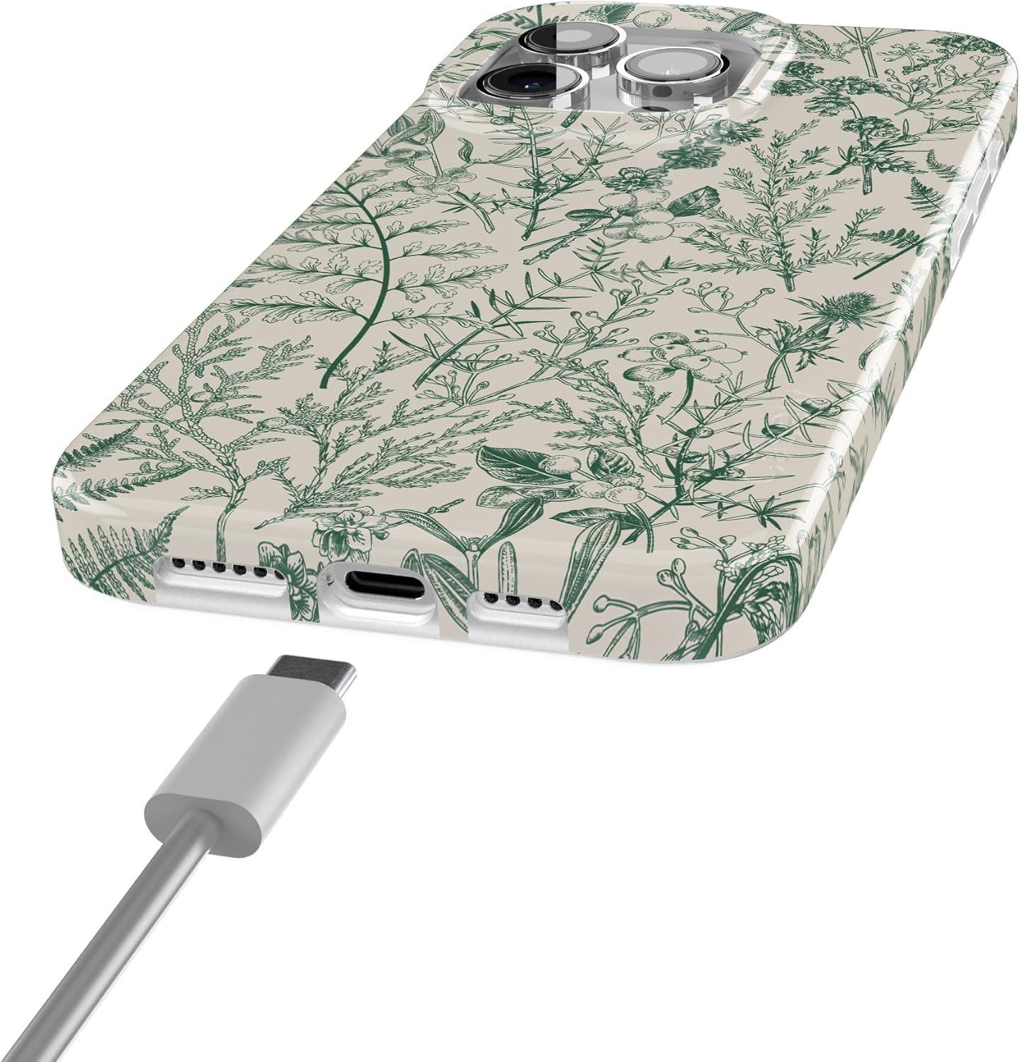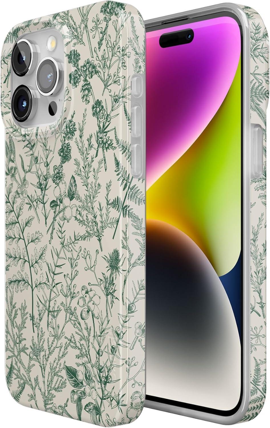 Casely iPhone 15 Pro Case | Midnight Sky | Navy Enchanted Shimmer Case | Compatible with MagSafe and Action Button | Ultra-Slim Classic Fit(Sage Garden | Green Floral Case)
