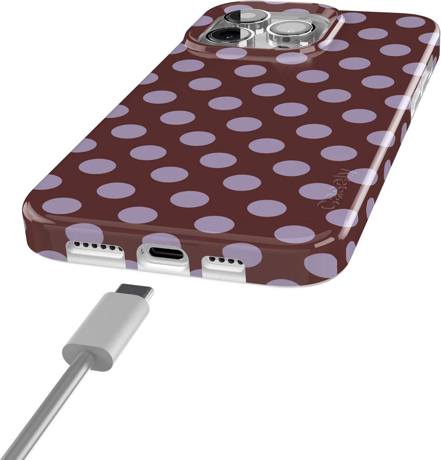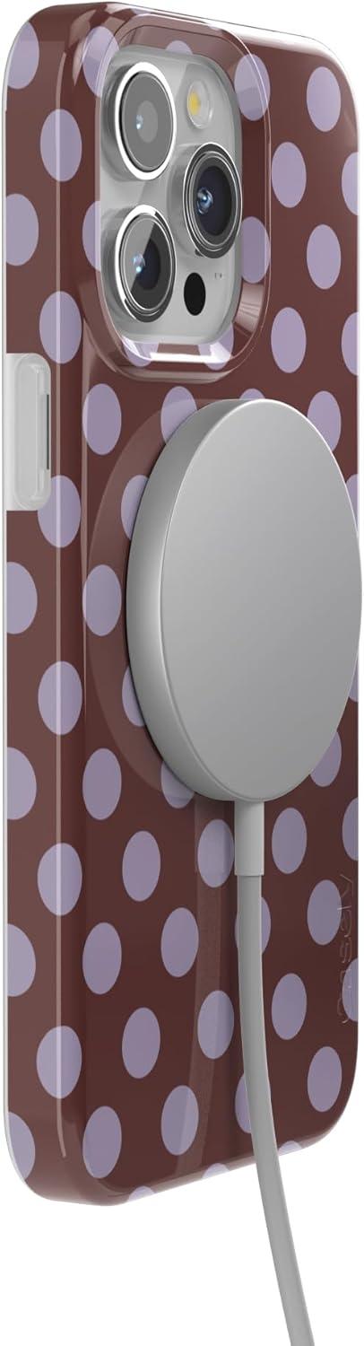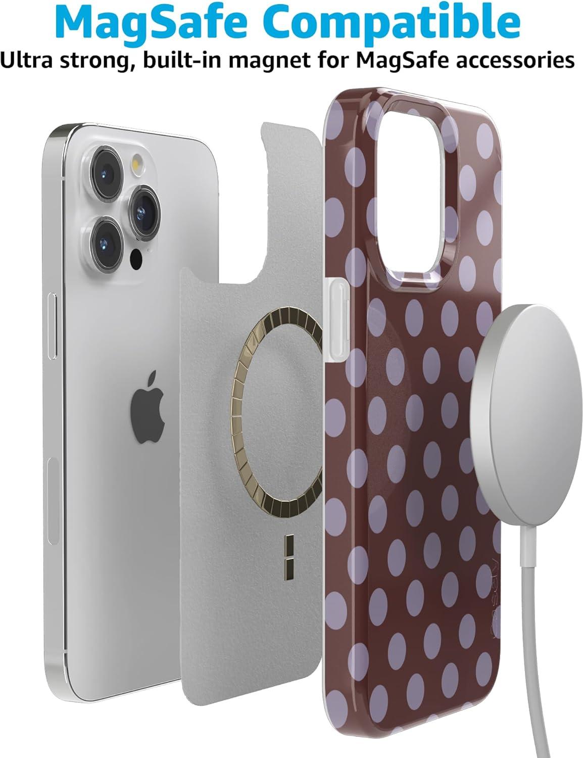 Casely iPhone 15 Pro Case | Midnight Sky | Navy Enchanted Shimmer Case | Compatible with MagSafe and Action Button | Ultra-Slim Classic Fit(Spotted in SoHo | Burgundy Polka Dot)