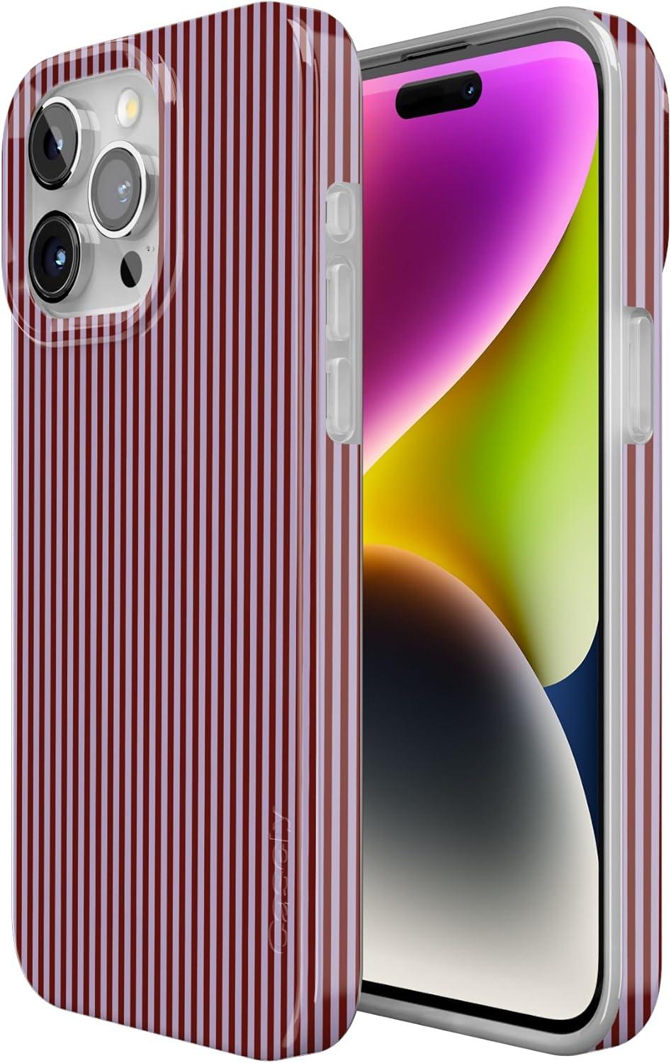 Casely iPhone 15 Pro Case | Midnight Sky | Navy Enchanted Shimmer Case | Compatible with MagSafe and Action Button | Ultra-Slim Classic Fit(Stripes and the City | Tiny Pinstripe)