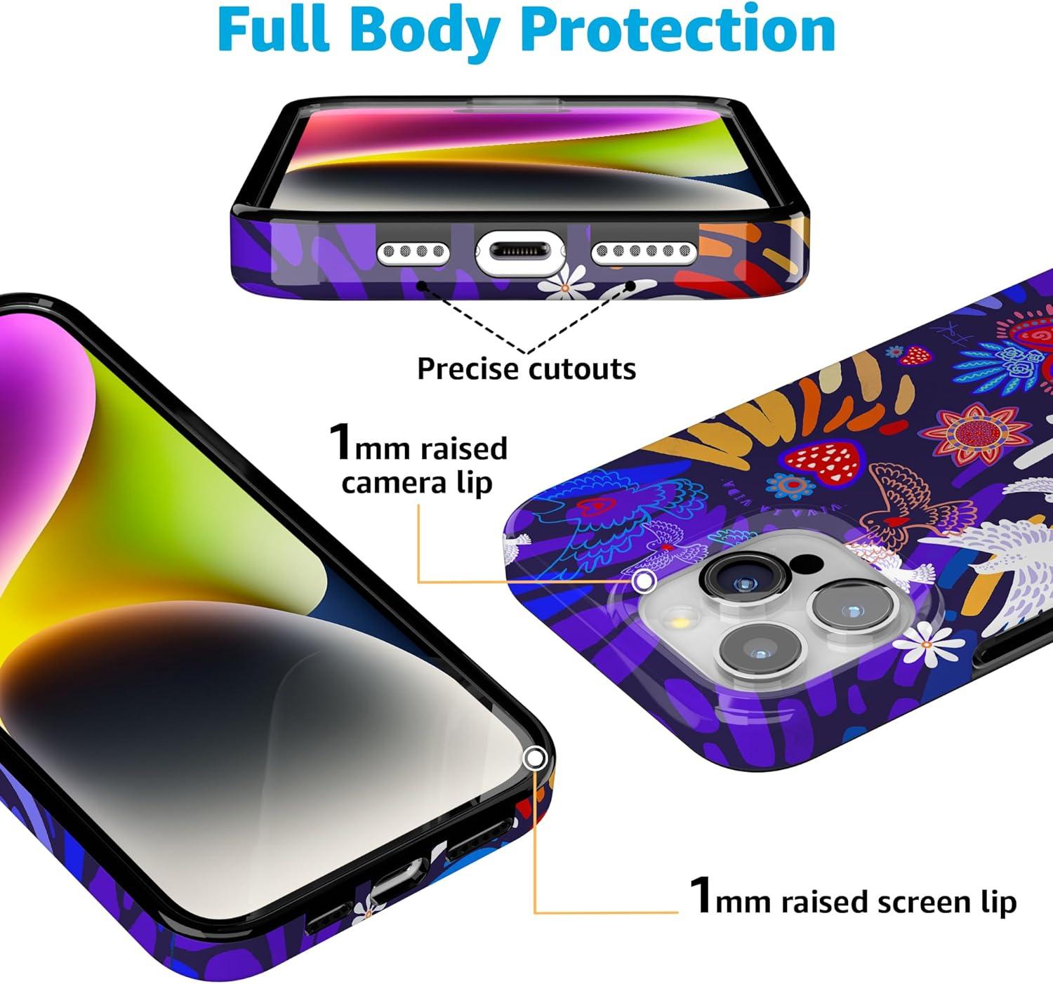 Casely iPhone 15 Pro Case | Midnight Sky | Navy Enchanted Shimmer Case | Compatible with MagSafe and Action Button | Ultra-Slim Classic Fit(Viva La Vida | Frida Kahlo Collage)