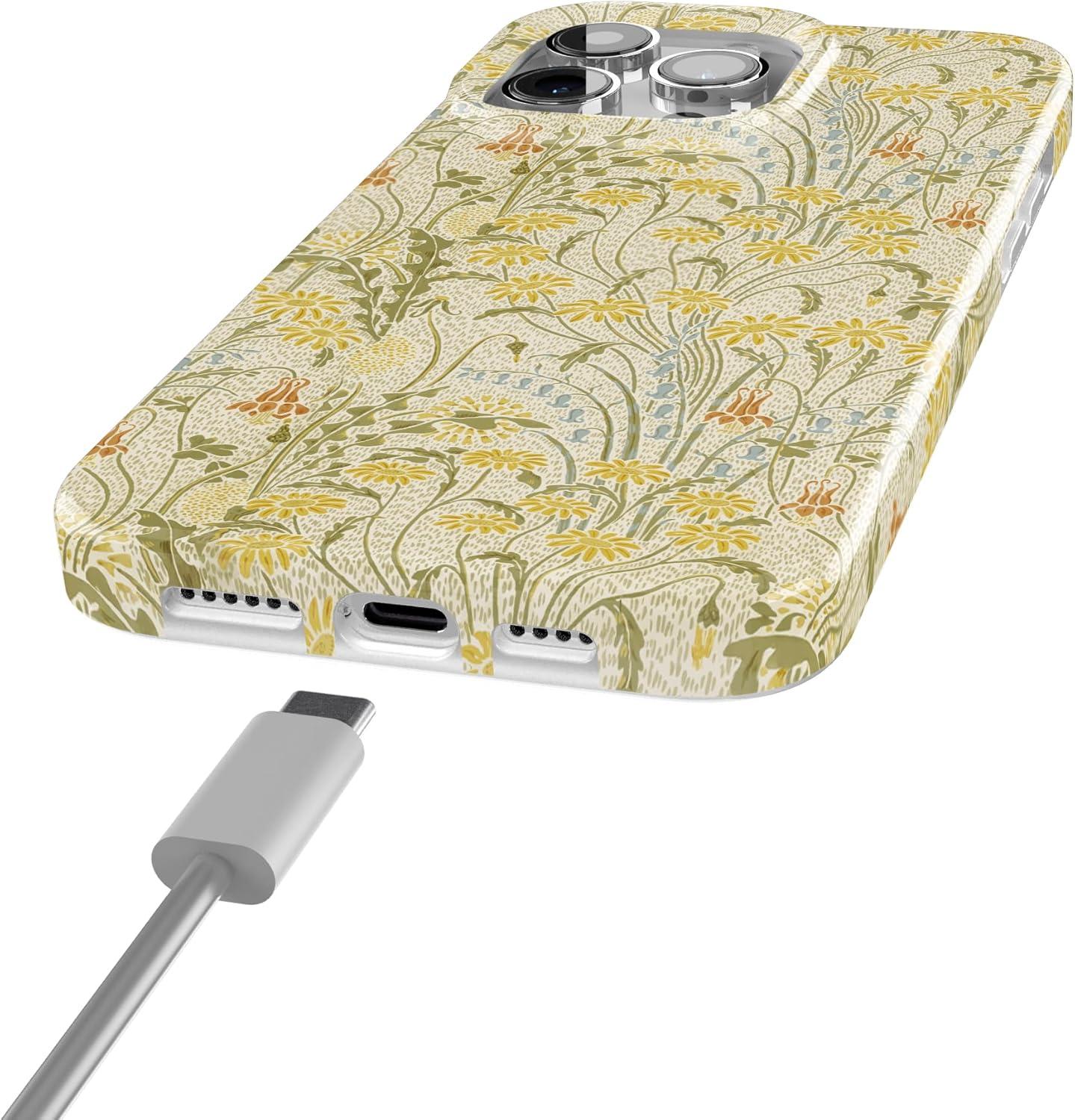 Casely iPhone 15 Pro Case | Mocha Ripple | Brown Waves | Compatible with MagSafe | Classic Ultra Slim Design(Boho Blooms | Golden Floral)