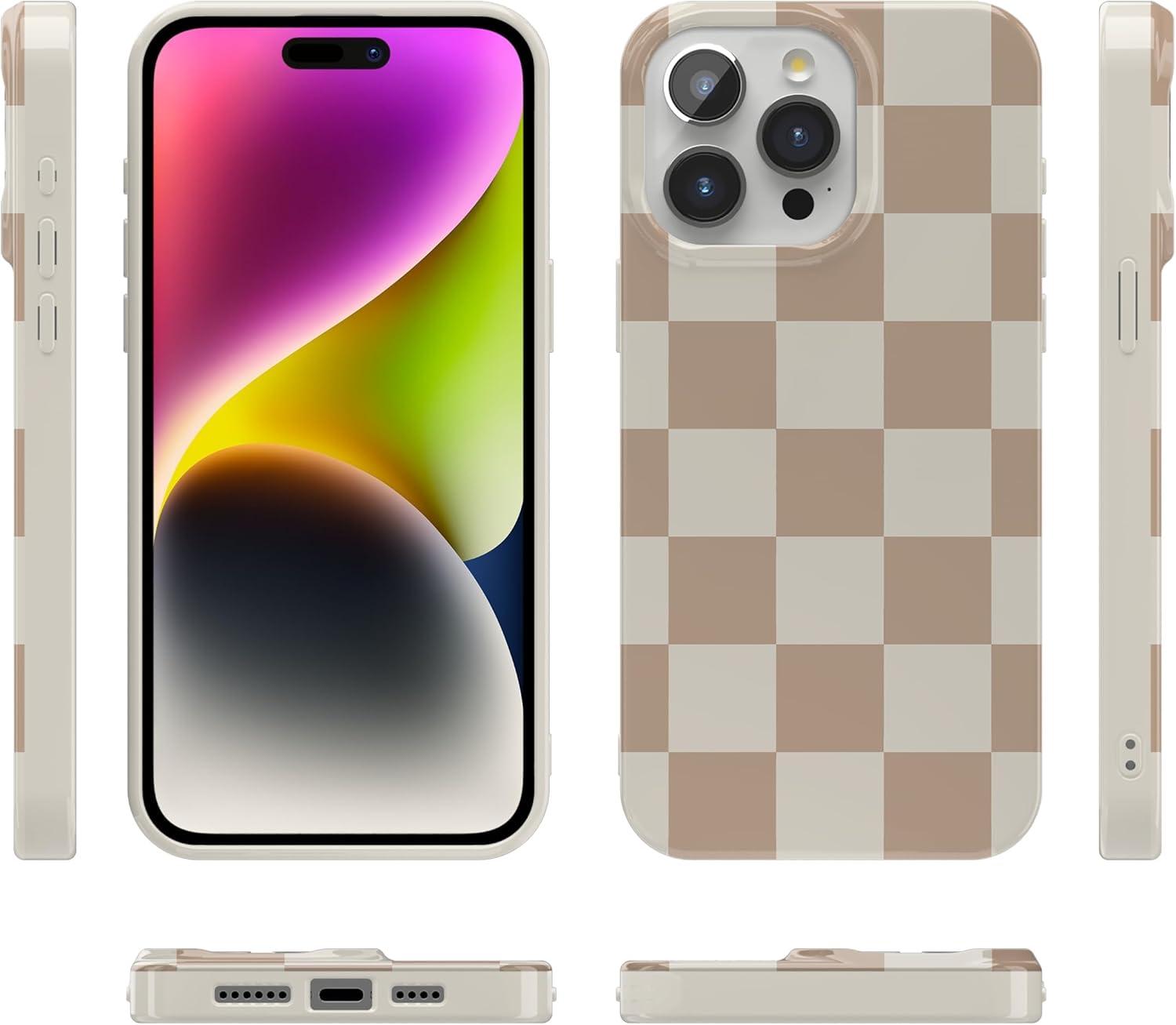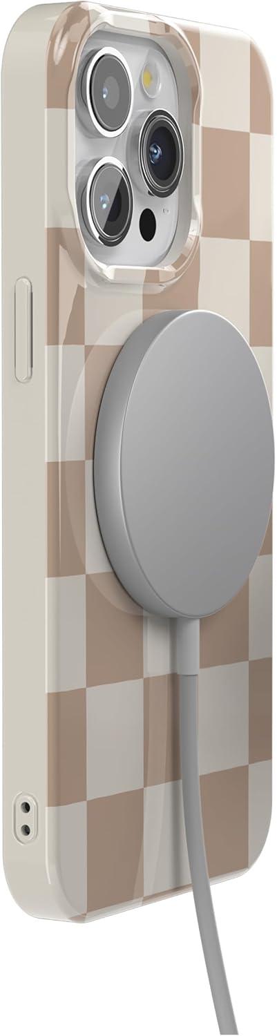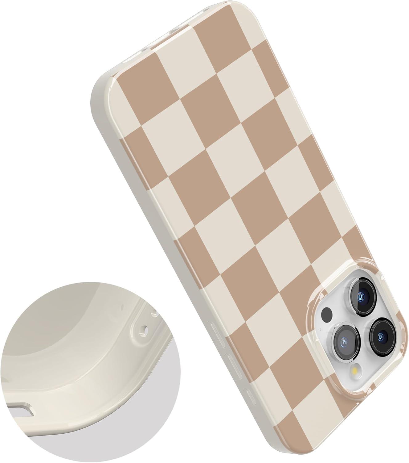 Casely iPhone 15 Pro Case | Mocha Ripple | Brown Waves | Compatible with MagSafe | Classic Ultra Slim Design(Fit Check | Neutral Checkerboard Checkered)