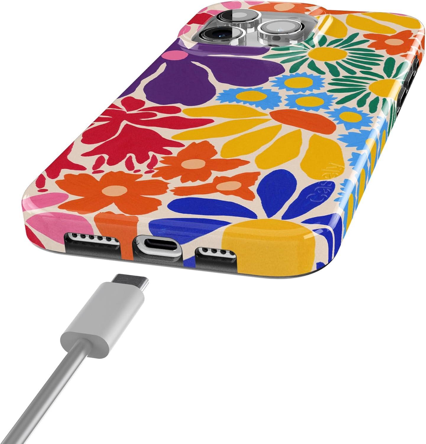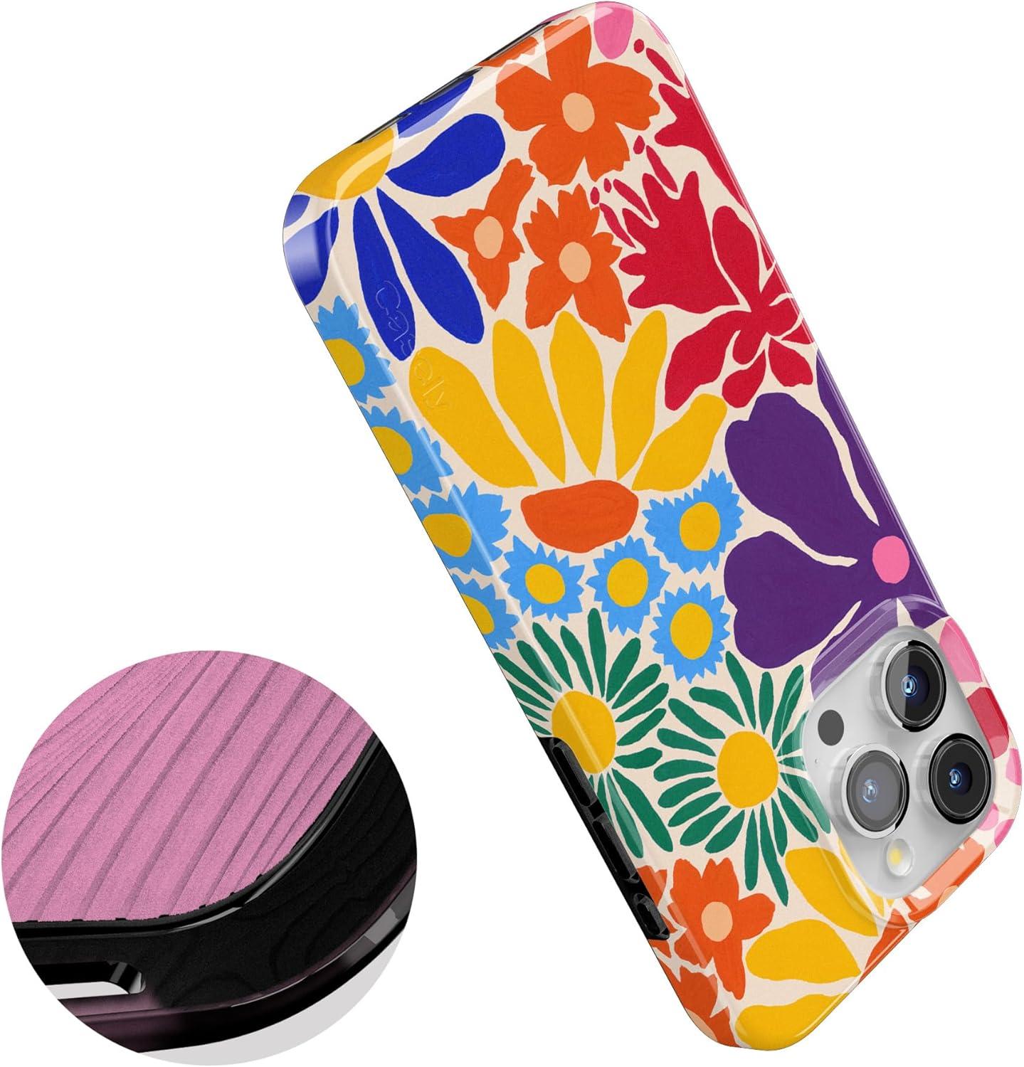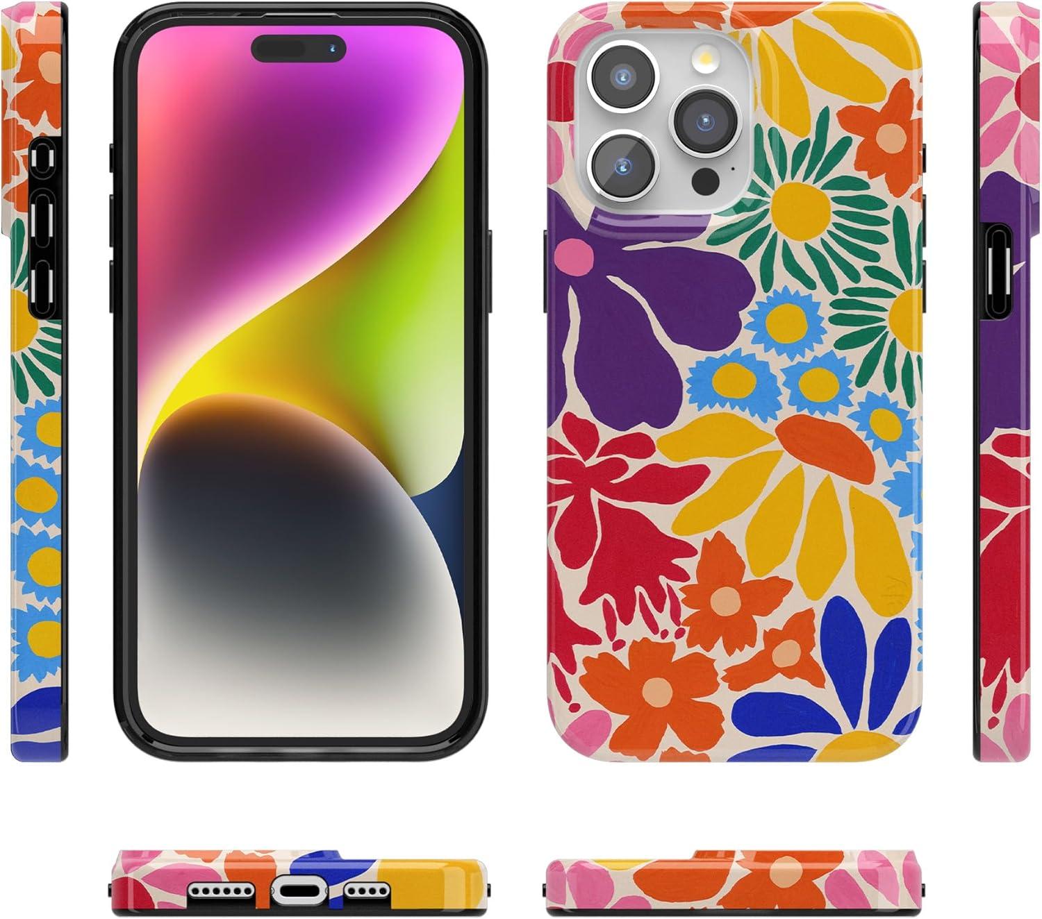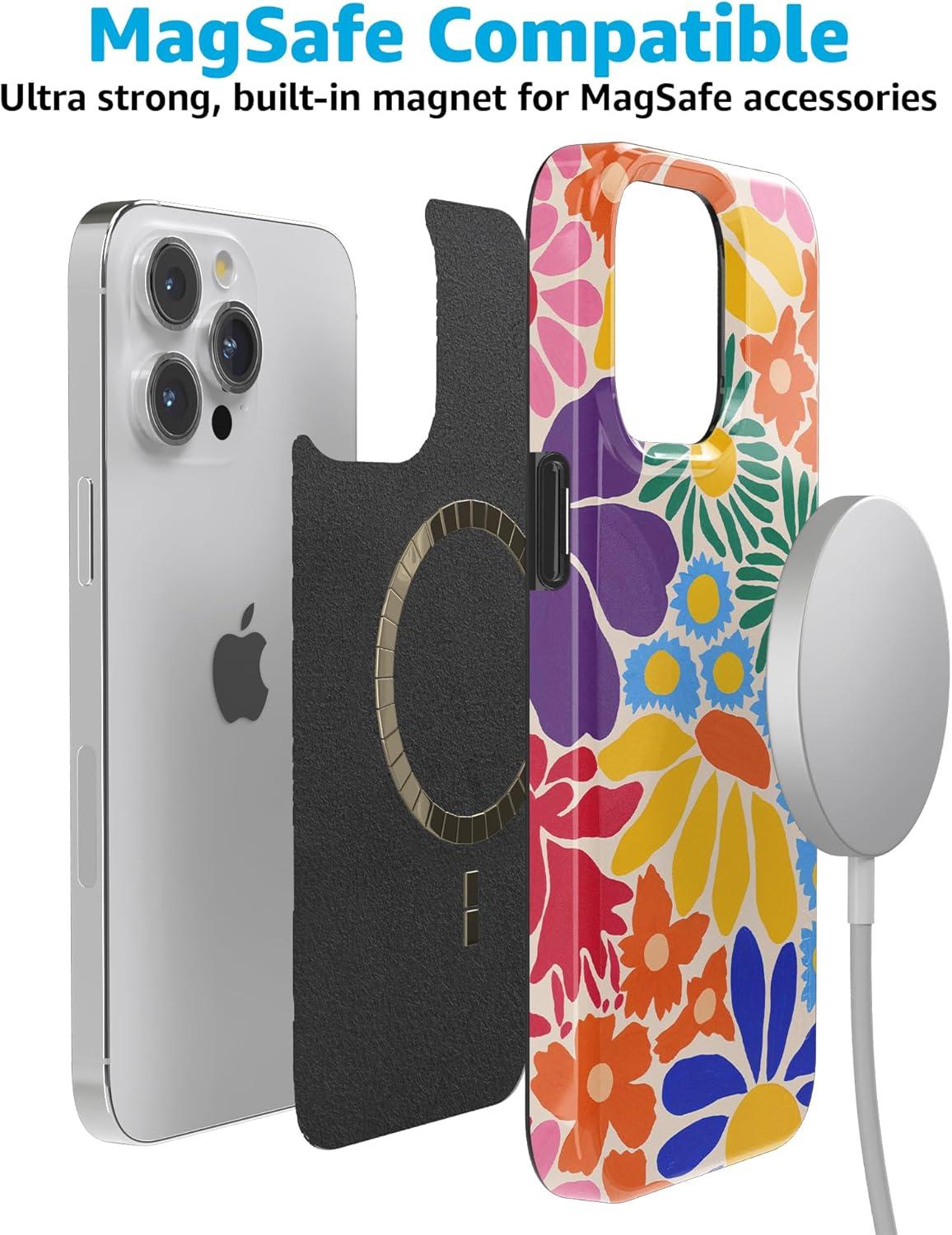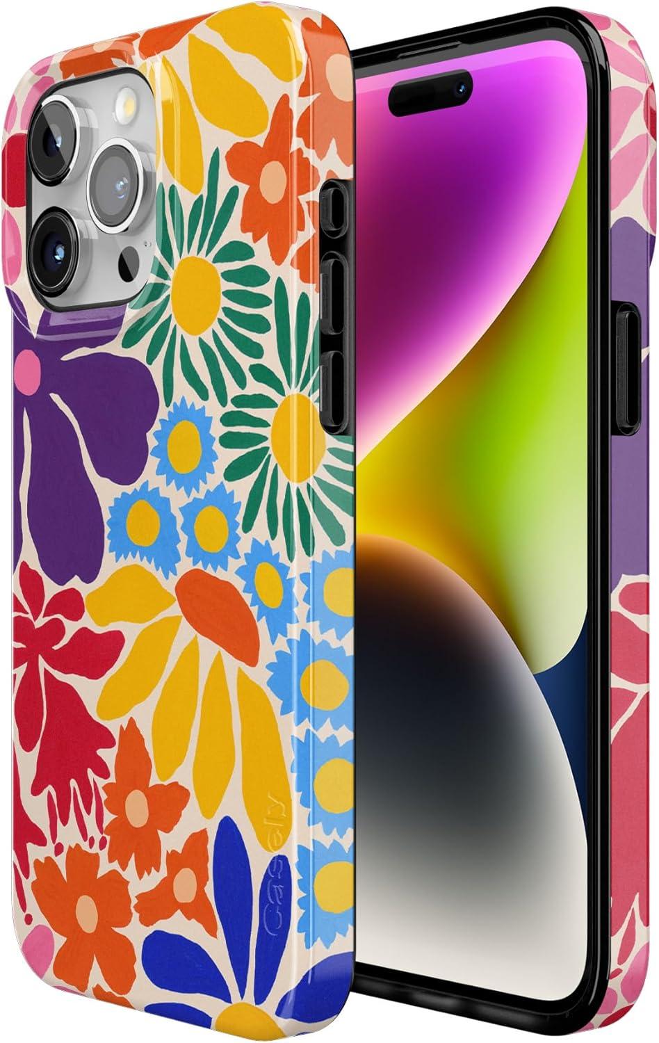 Casely iPhone 15 Pro Case | Mocha Ripple | Brown Waves | Compatible with MagSafe | Classic Ultra Slim Design(Flower Patch | Multi-Color Floral)