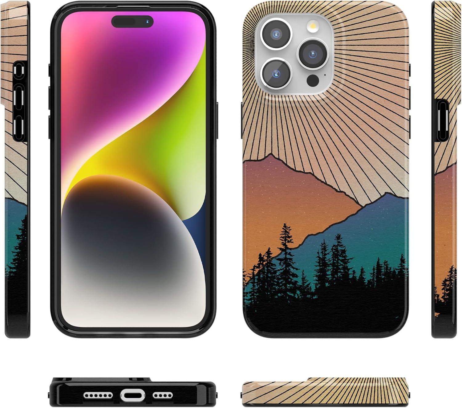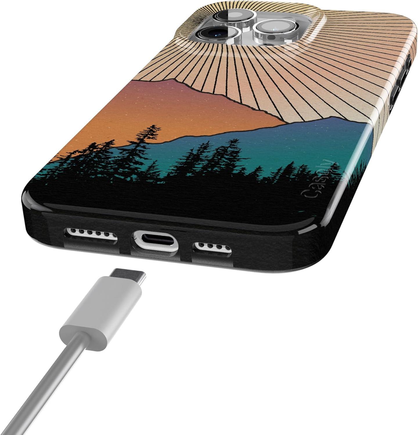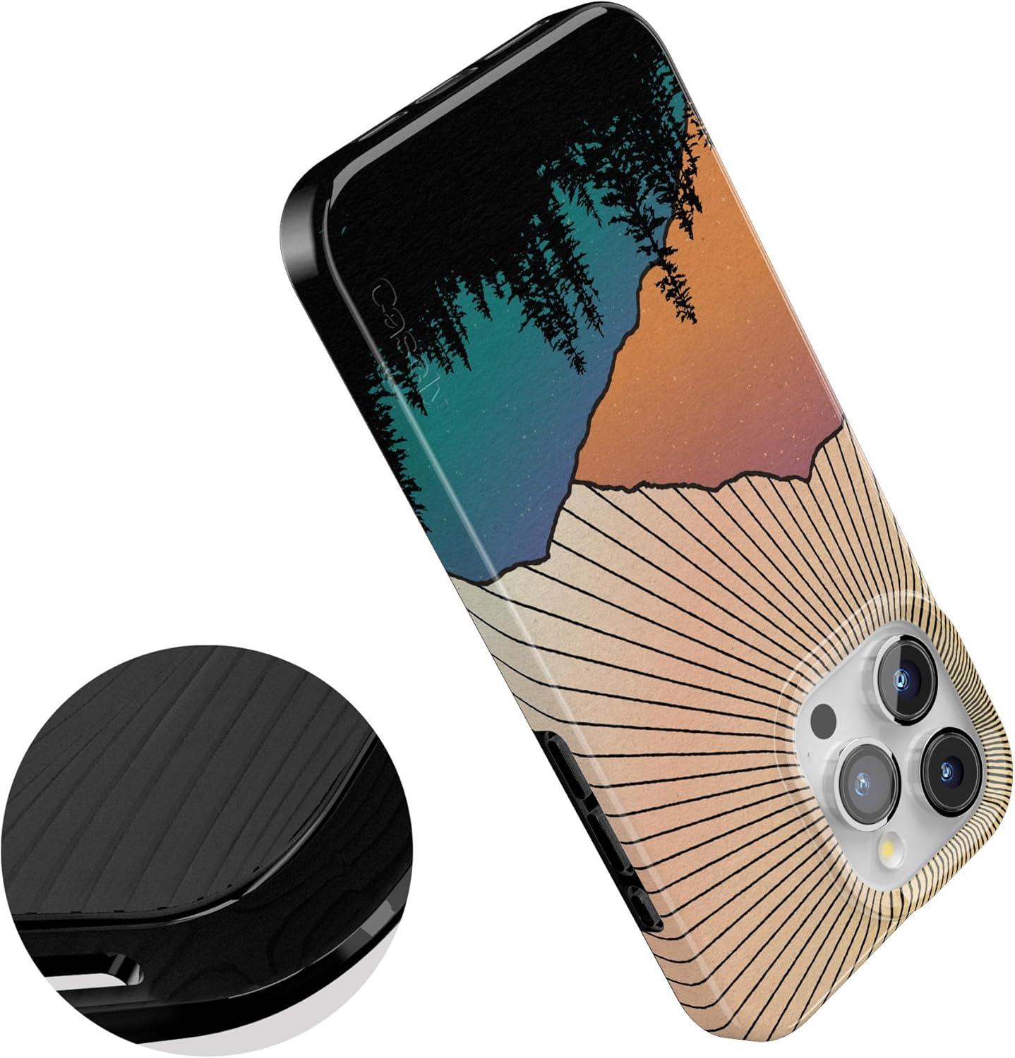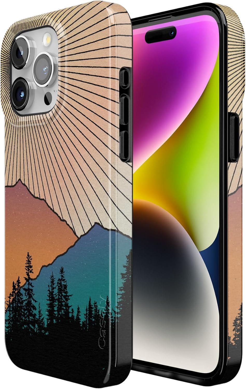Casely iPhone 15 Pro Case | Mocha Ripple | Brown Waves | Compatible with MagSafe | Classic Ultra Slim Design(Golden Hour | Mountain Sunset)