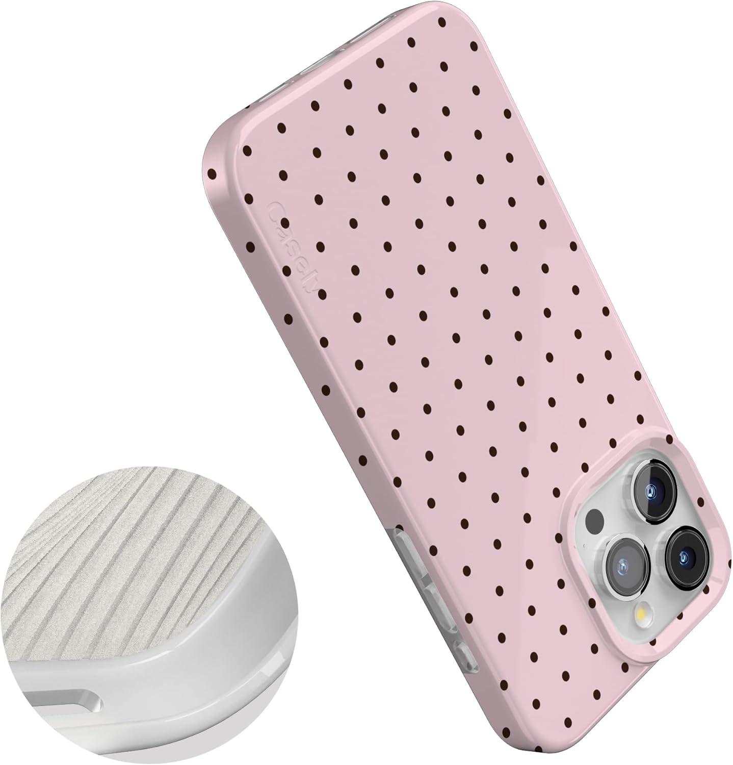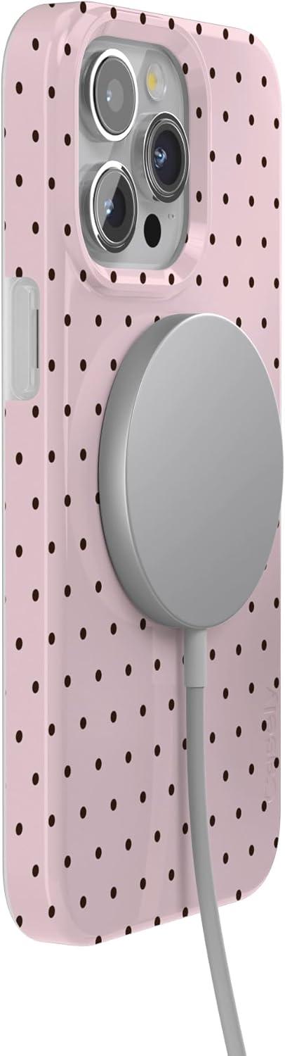 Casely iPhone 15 Pro Case | Mocha Ripple | Brown Waves | Compatible with MagSafe | Classic Ultra Slim Design(On the Dot | Pink Polka Dot)