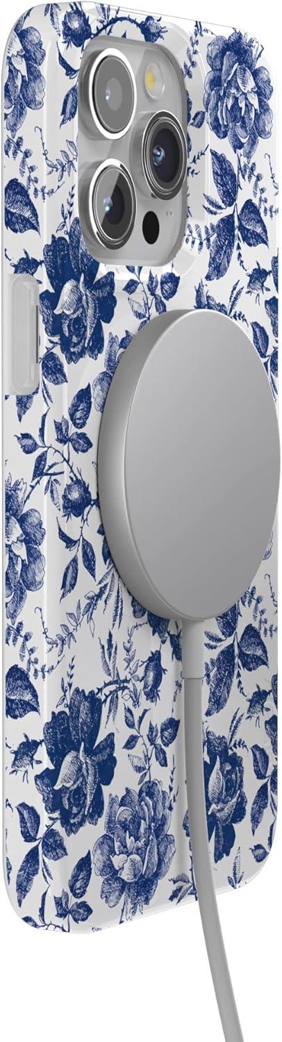 Casely iPhone 15 Pro Case | Mocha Ripple | Brown Waves | Compatible with MagSafe | Classic Ultra Slim Design(Rose to Fame | Blue & White Rose Floral)