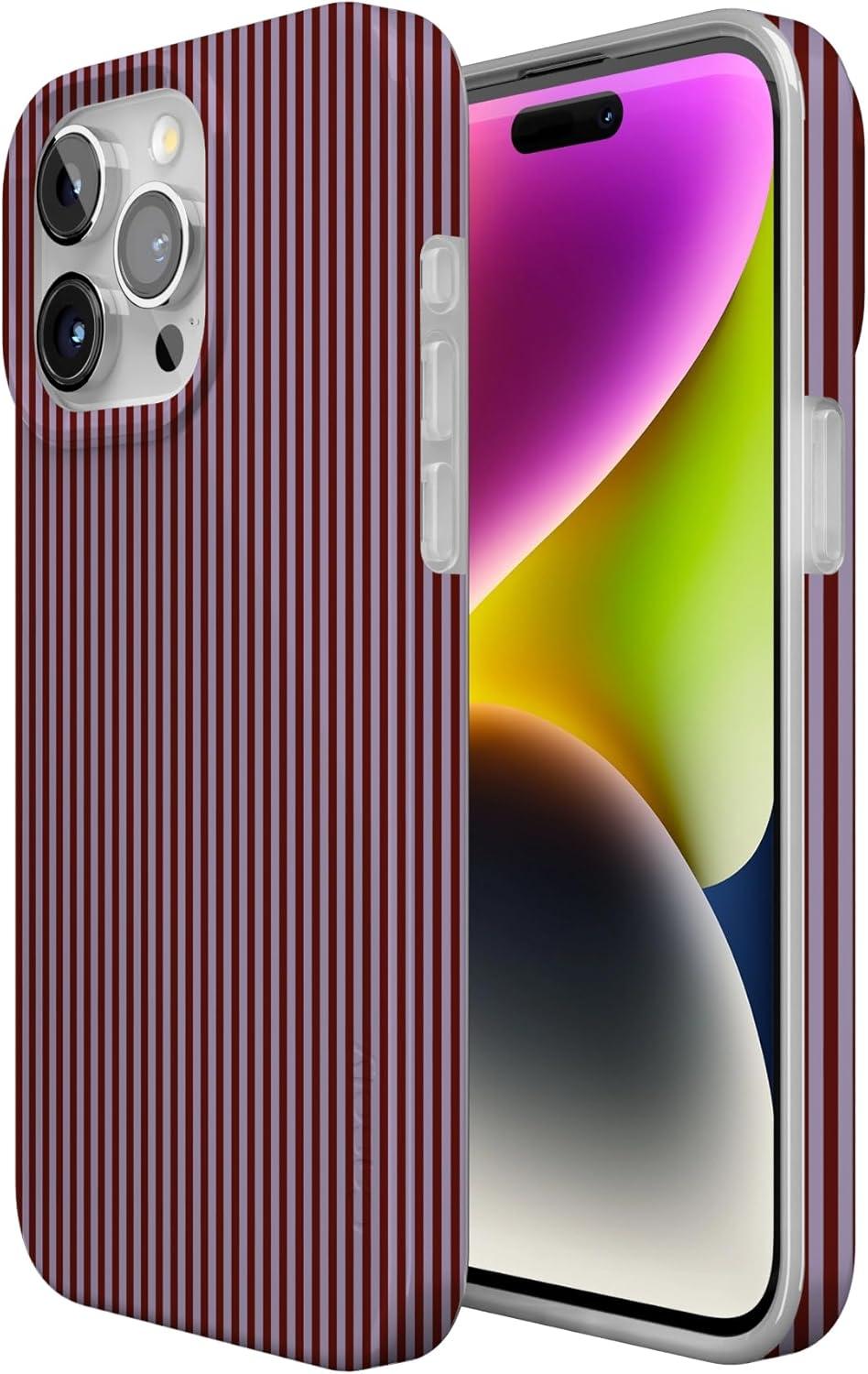 Casely iPhone 15 Pro Case | Mocha Ripple | Brown Waves | Compatible with MagSafe | Classic Ultra Slim Design(Stripes and the City | Tiny Pinstripe)