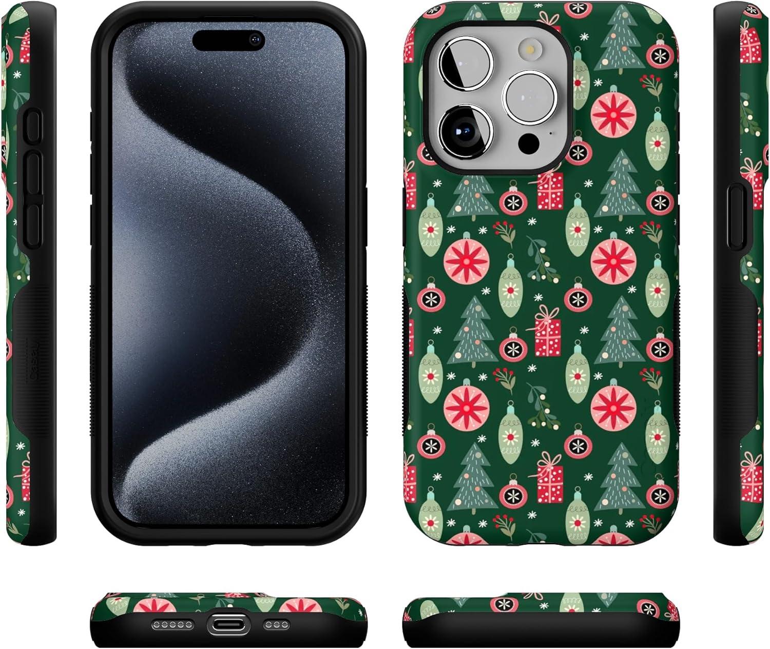 Casely iPhone 15 Pro Case | Tinsel Town | Christmas Ornament | Bold Protective Design | MagSafe Compatible Design