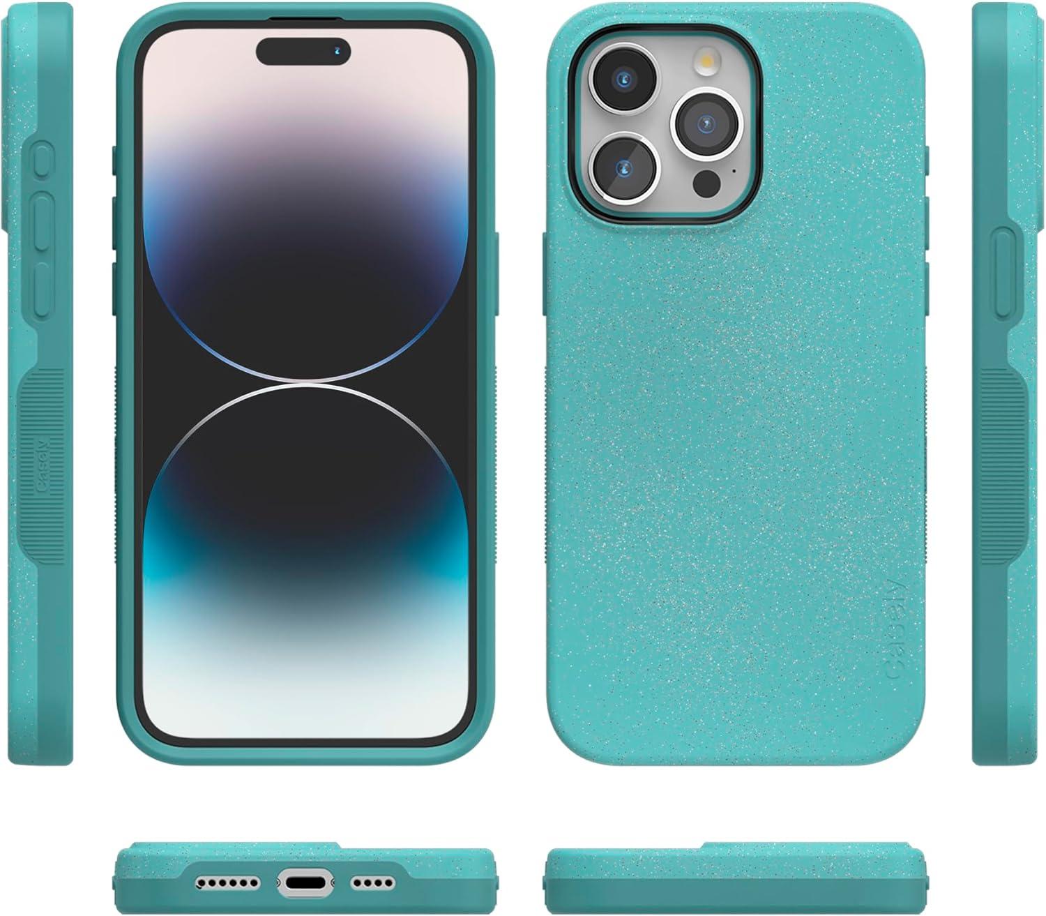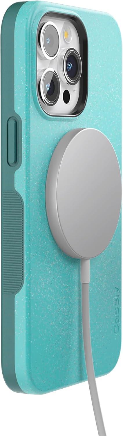 Casely iPhone 15 Pro Max Case | All The Fun Things | Fun on Weekdays | Bold Protective Design | Compatible with MagSafe(Aquamarine | Ocean Blue Shimmer Glitter)