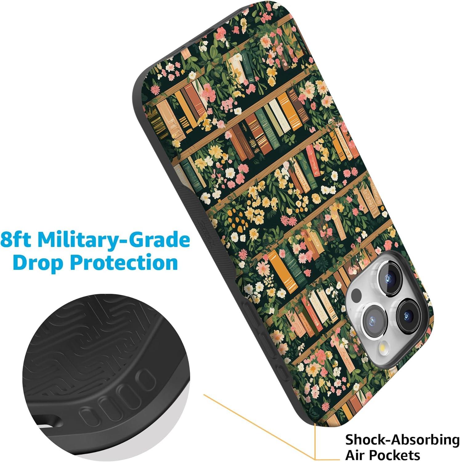 Casely iPhone 15 Pro Max Case | All The Fun Things | Fun on Weekdays | Bold Protective Design | Compatible with MagSafe(Book Nook | Floral Library)