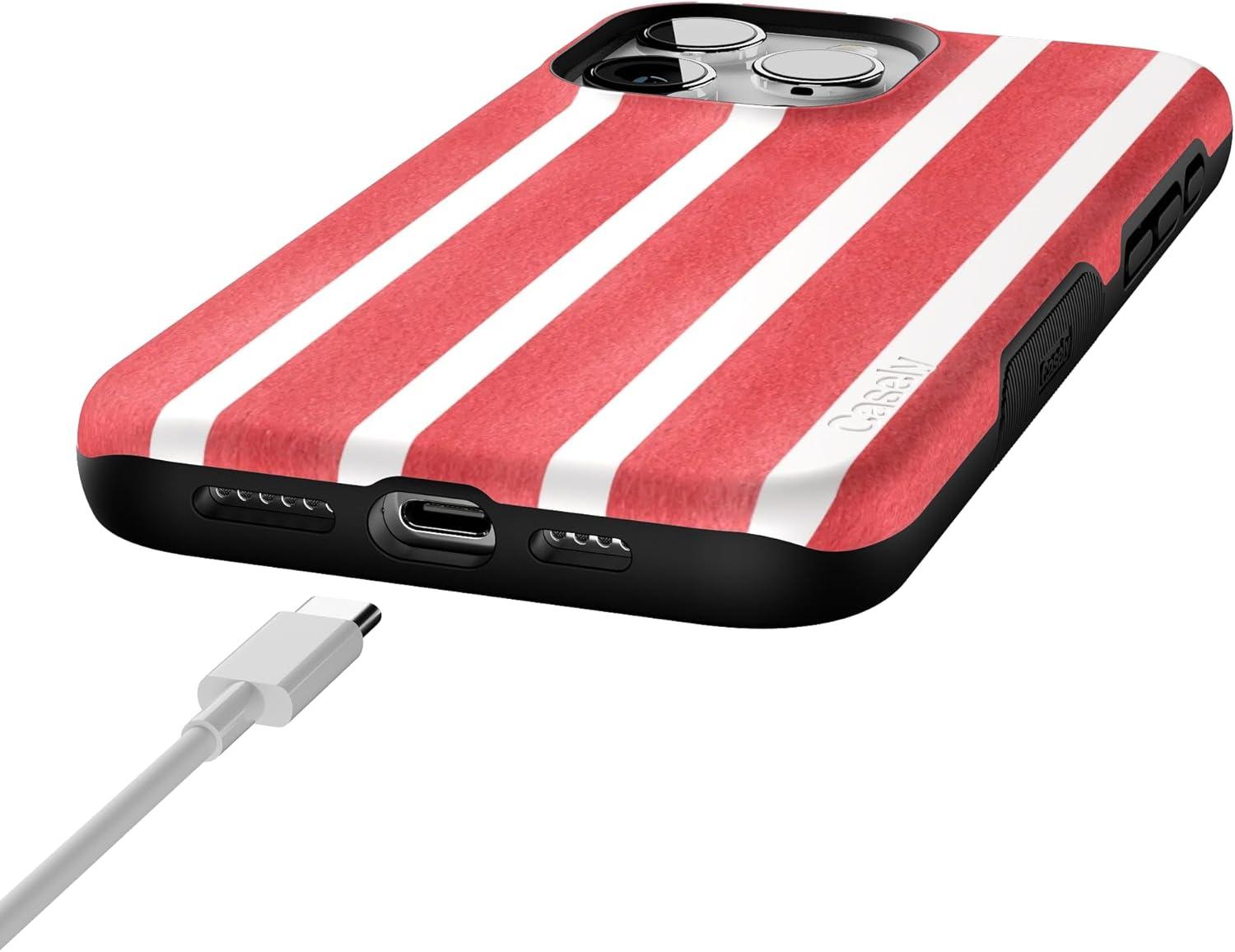 Casely iPhone 15 Pro Max Case | All The Fun Things | Fun on Weekdays | Bold Protective Design | Compatible with MagSafe(East Coast Summer | Red Stripes)