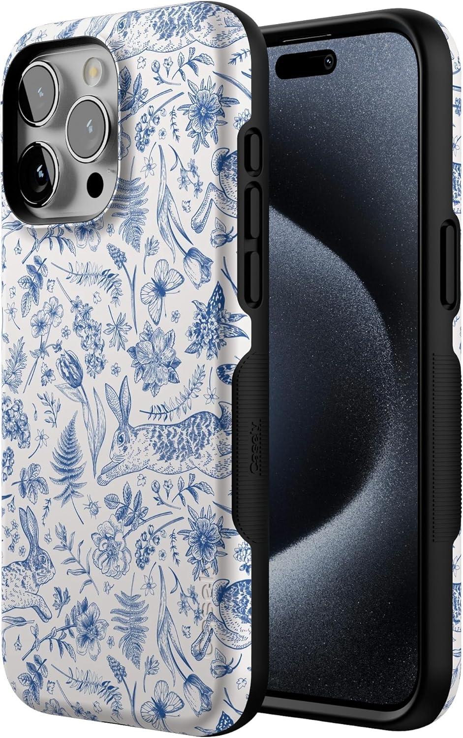 Casely iPhone 15 Pro Max Case | All The Fun Things | Fun on Weekdays | Bold Protective Design | Compatible with MagSafe(Hop & Bloom | Bunny Toile)